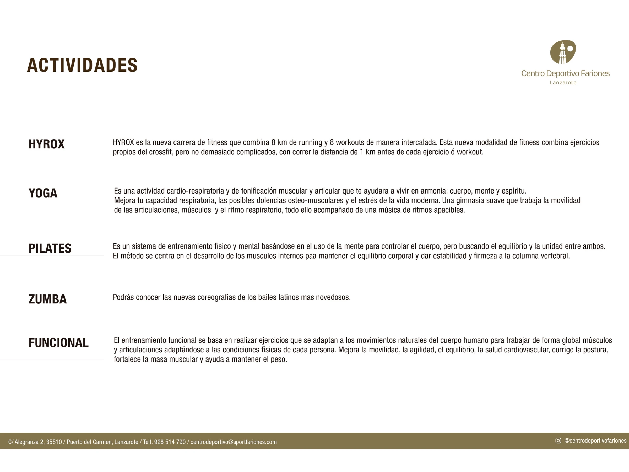 LE PRIX COMPREND L'ACCÈS AU CENTRE SPORTIF DES FARIONES AVEC PISCINE CHAUFFÉE, GYMNASE, SAUNA ET ACTIVITÉS SUPERVISÉES.