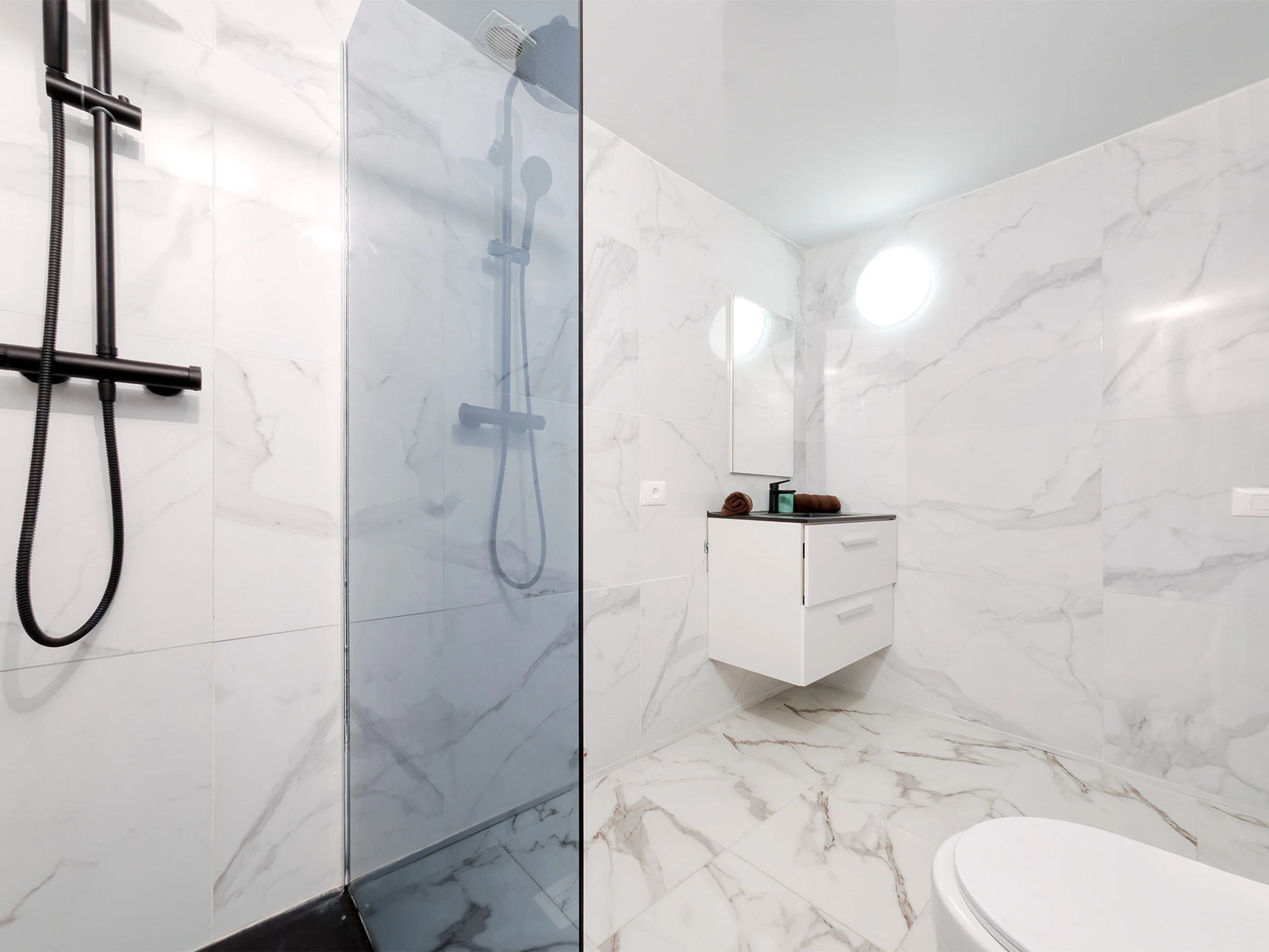 La maison dispose de trois chambres et deux salles de bains, parfaite pour accueillir jusqu'à six personnes. La chambre principale est équipée d'un lit double et d'une salle de bains privative avec une grande douche. La deuxième chambre dispose également d'un lit double et d'une grande armoire. La deuxième salle de bains, partagée, est équipée d'une douche, d'un lavabo et d'un sèche-cheveux.