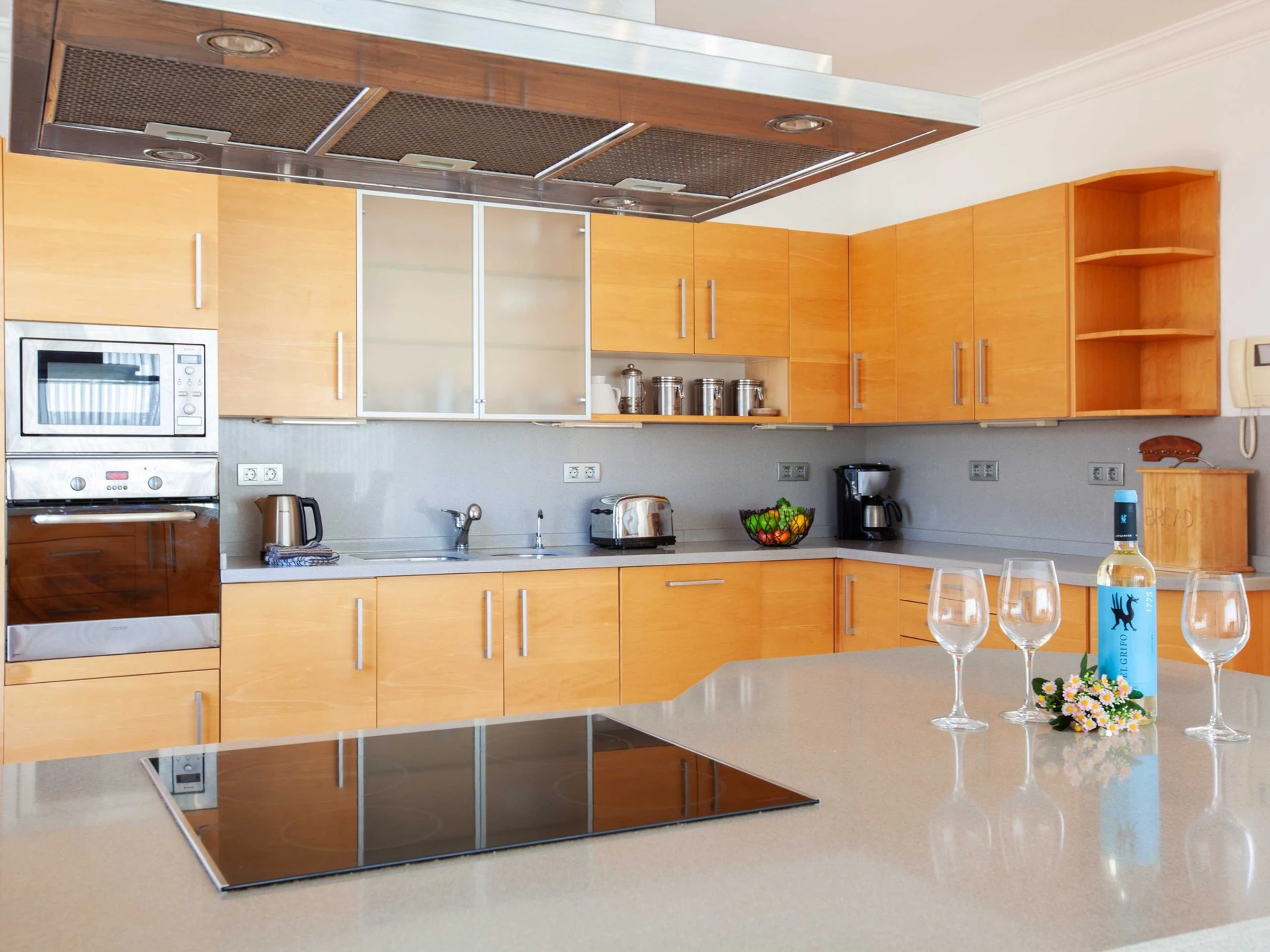 La cuisine, est équipée avec réfrigérateur, micro-ondes, four, lave-vaisselle, cafetière, grille pain et bouilloire.
