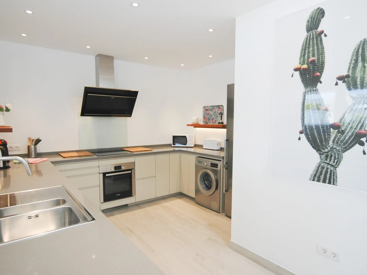 La cuisine, est équipée avec réfrigérateur, micro-ondes, four, congélateur, lave-vaisselle et grille pain.