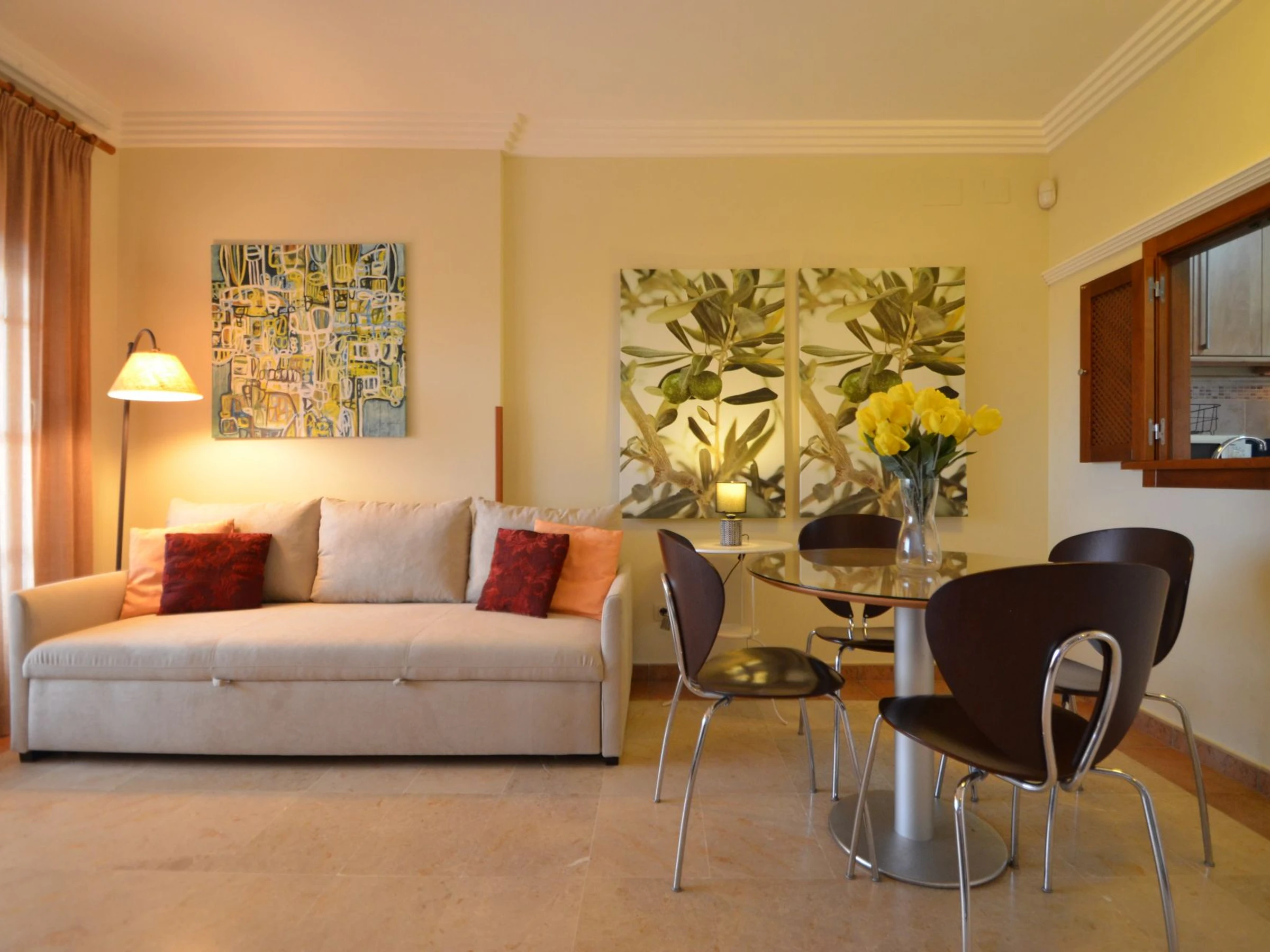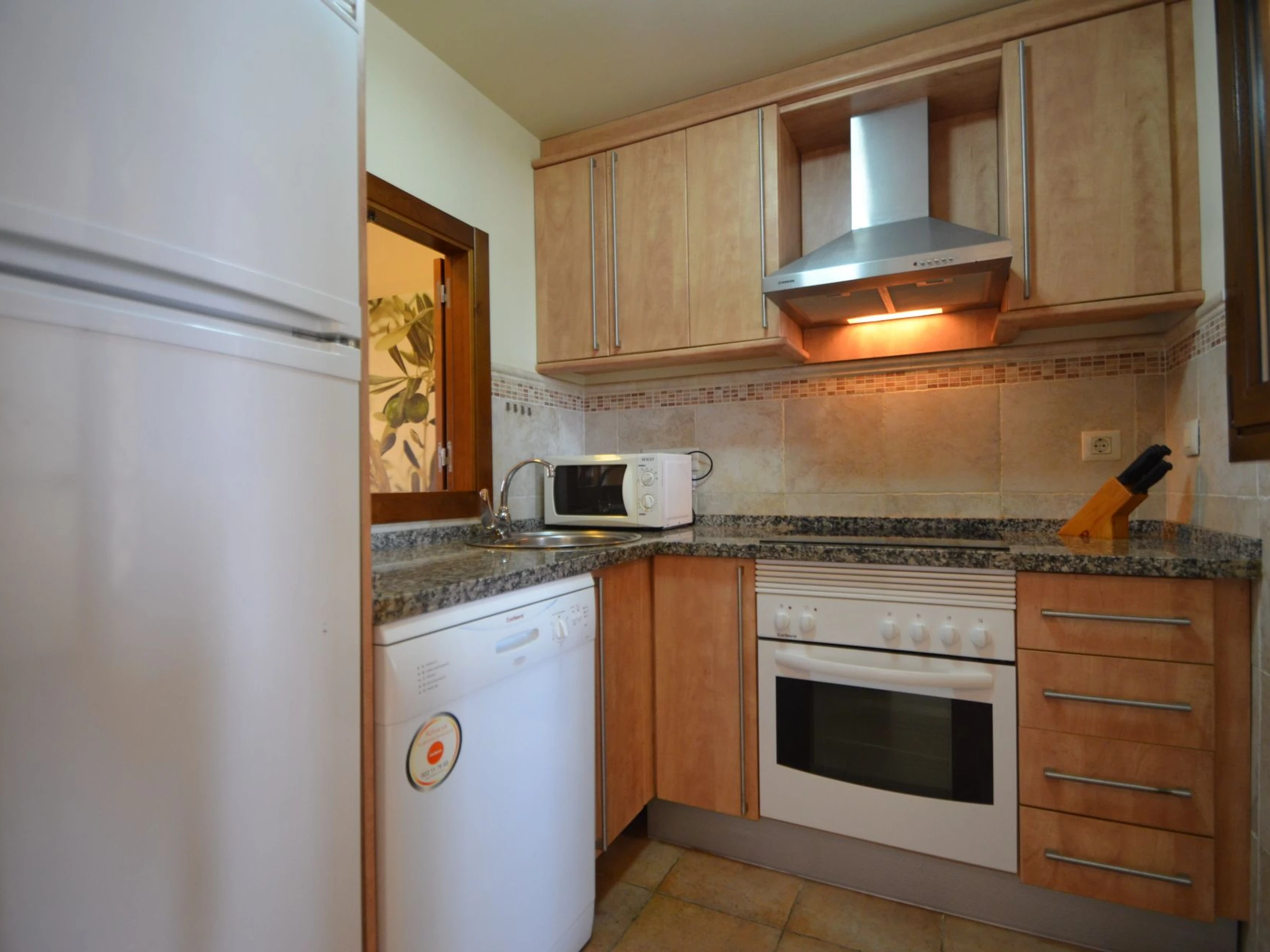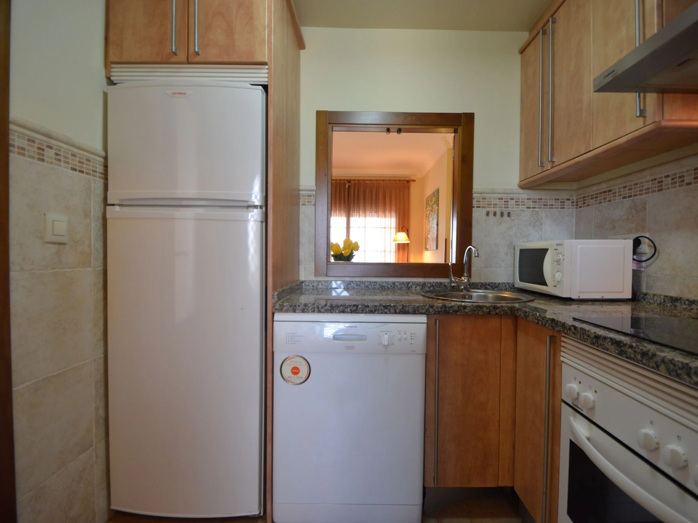 La cuisine, est équipée avec réfrigérateur, micro-ondes, congélateur, lave-vaisselle et grille pain.