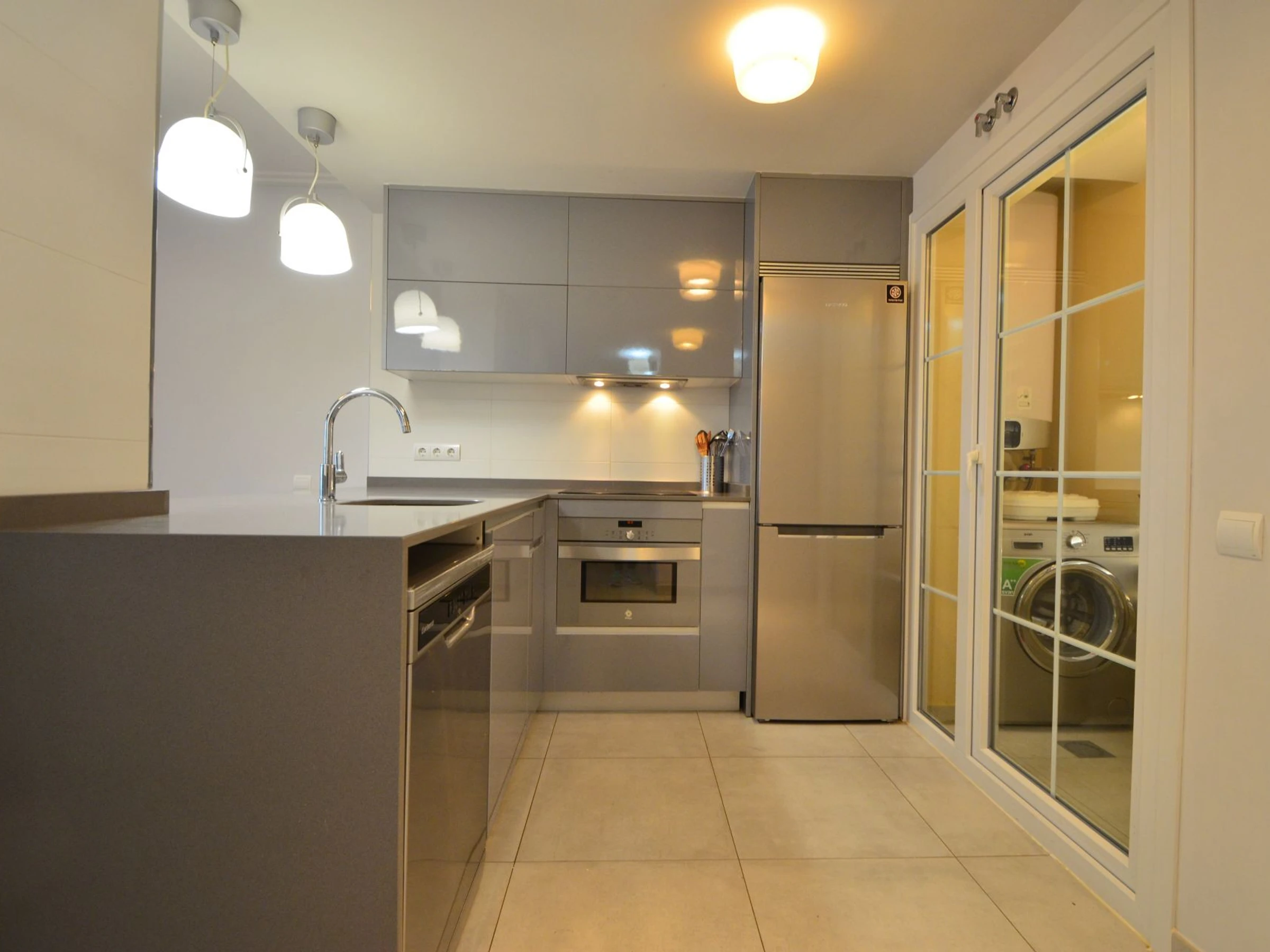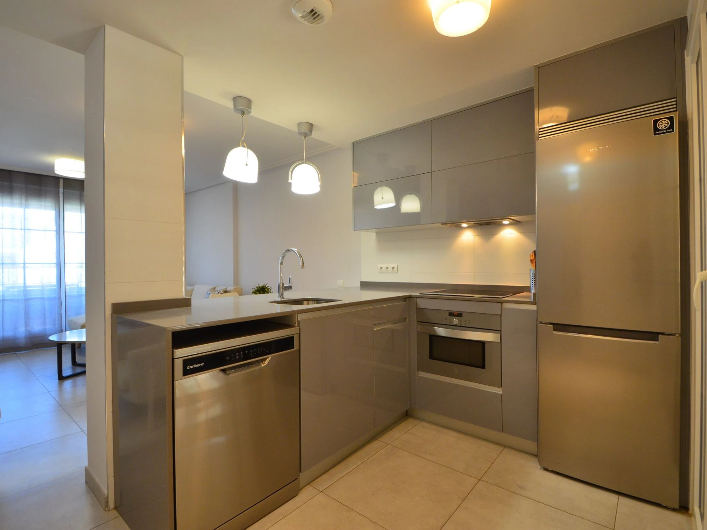 La cuisine, est équipée avec réfrigérateur, micro-ondes, congélateur, lave-vaisselle et grille pain.
