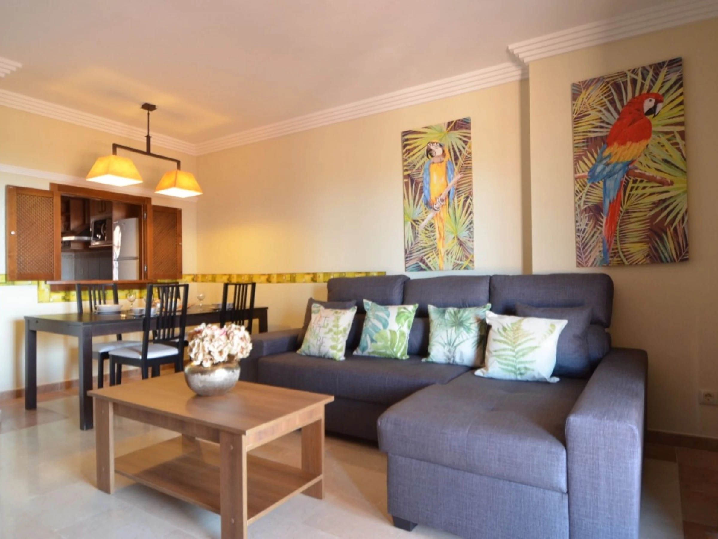 La cuisine, est équipée avec réfrigérateur, micro-ondes, congélateur, lave-vaisselle et grille pain.