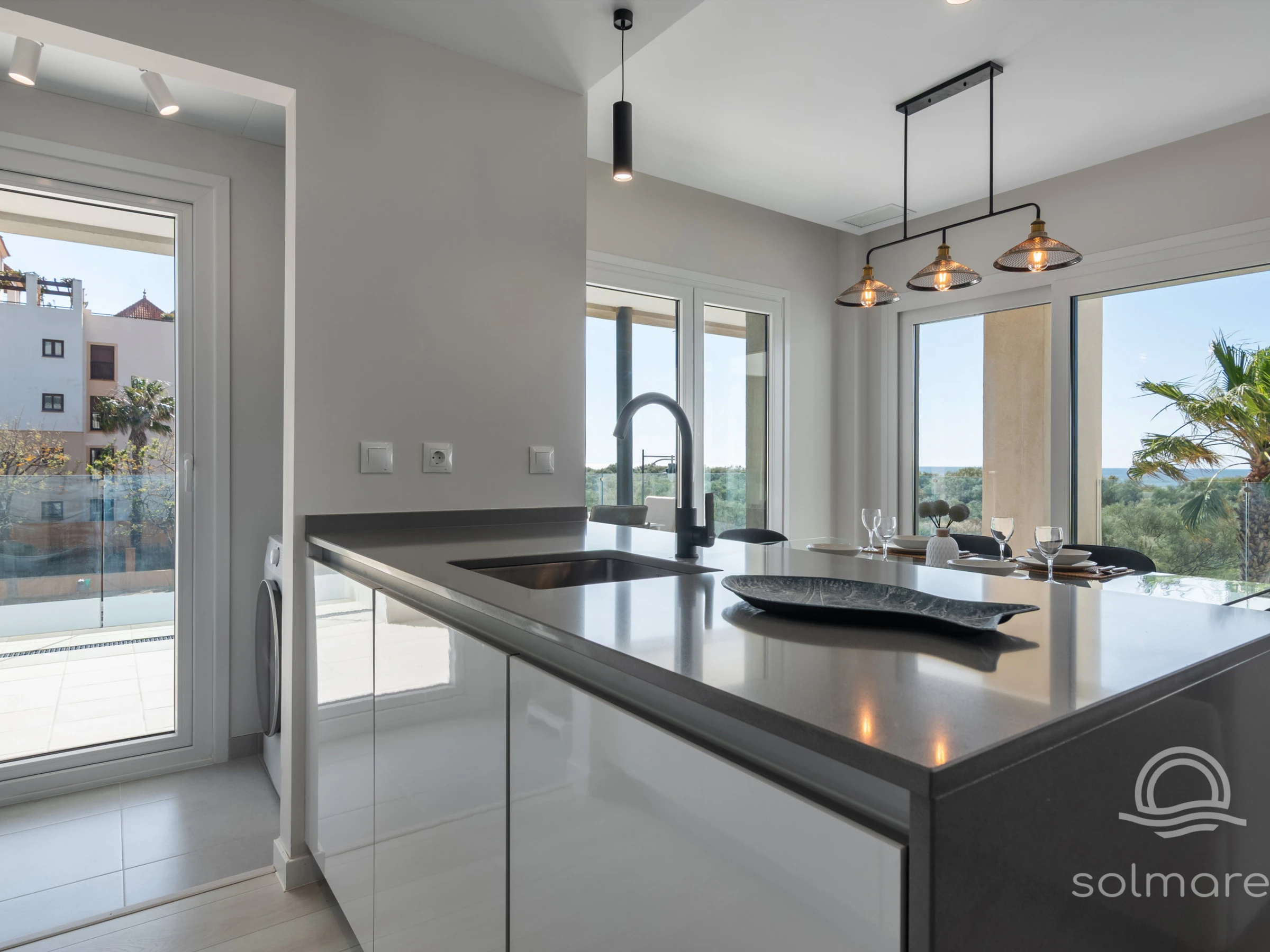 La cuisine, est équipée avec réfrigérateur, micro-ondes, congélateur, lave-vaisselle et grille pain.