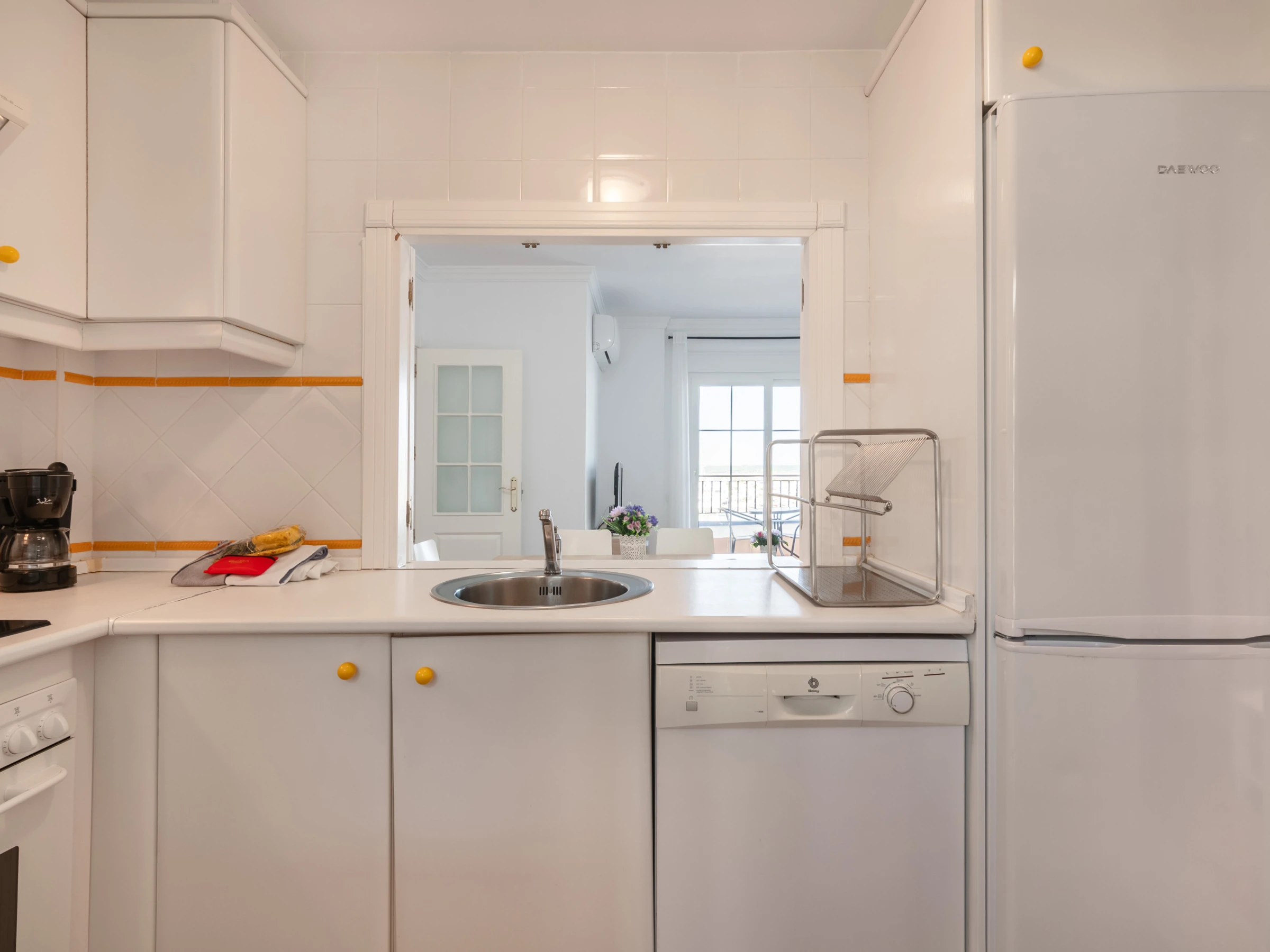 La cuisine indépendante, à vitrocéramique, est équipée avec réfrigérateur, micro-ondes, four, congélateur, lave-vaisselle, vaisselle/couverts, ustensiles/cuisine, cafetière, grille pain et presse-agrumes.