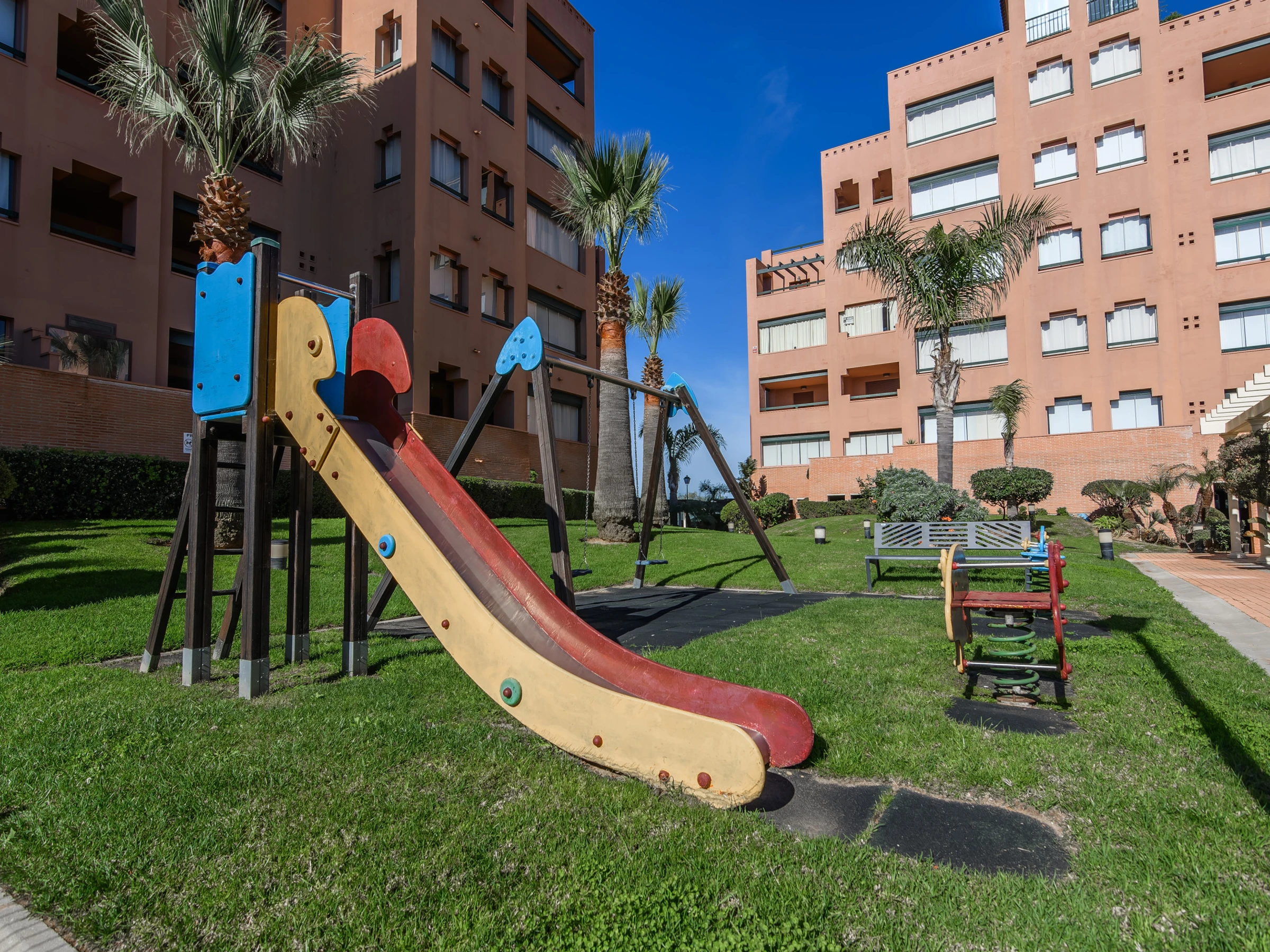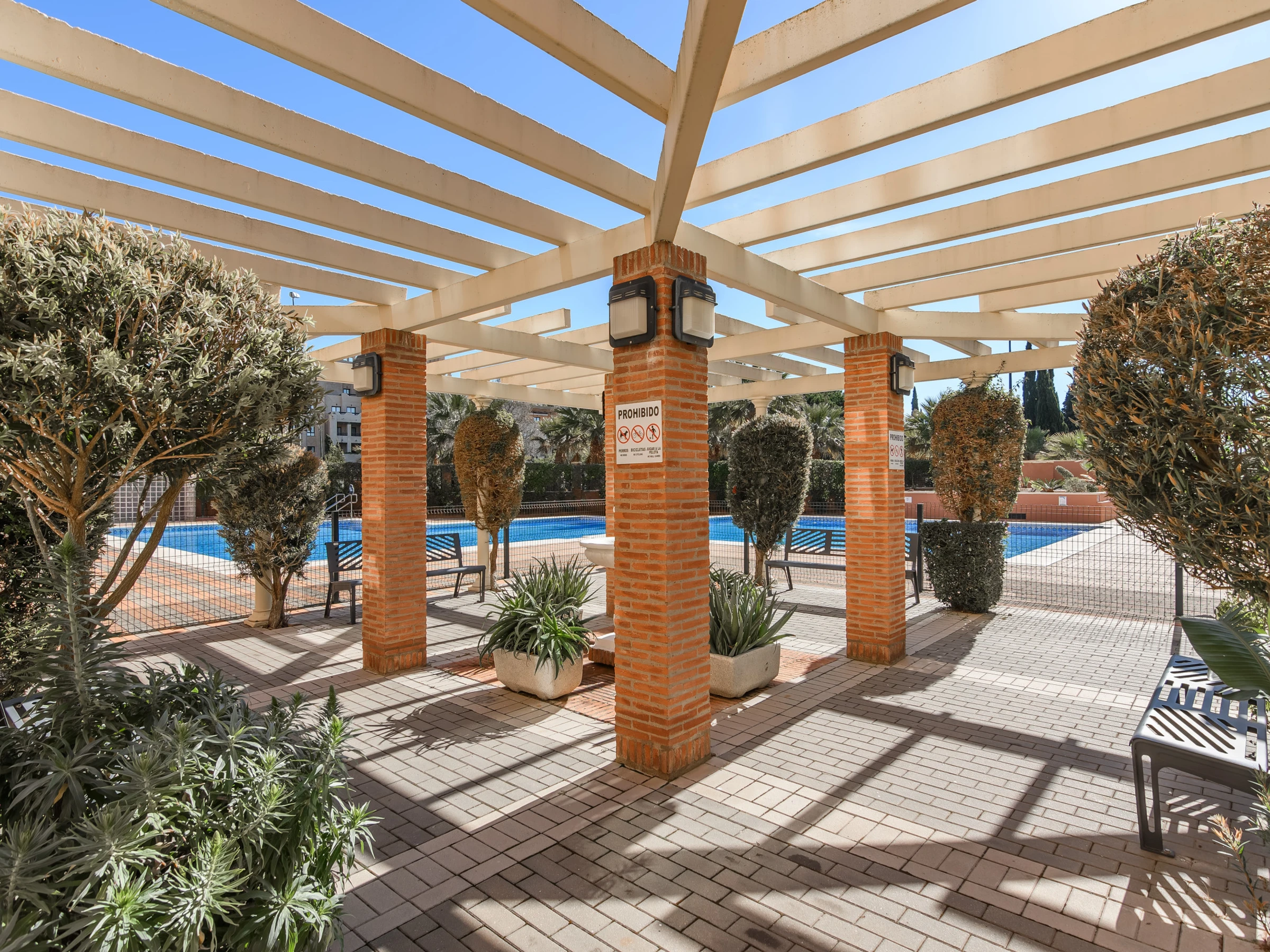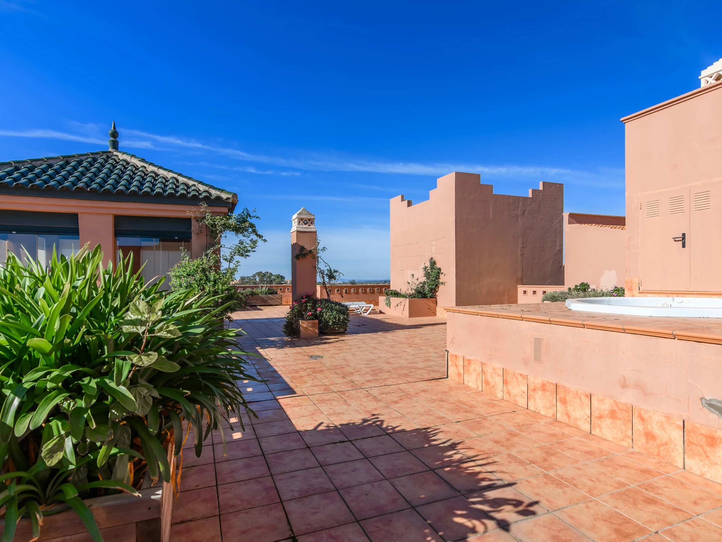 Elle dispose de ascenseur, jardin, mobilier de jardin, clôture, 200 m² de terrasse, lave-linge, fer à repasser, accès internet (wifi), sèche-cheveux, zone pour les enfants, piste de paddle, chauffage pompe à chaleur, climatisation dans tout le logement, piscine collective+infantile, parking couvert même bâtiment, 1 Télévision.