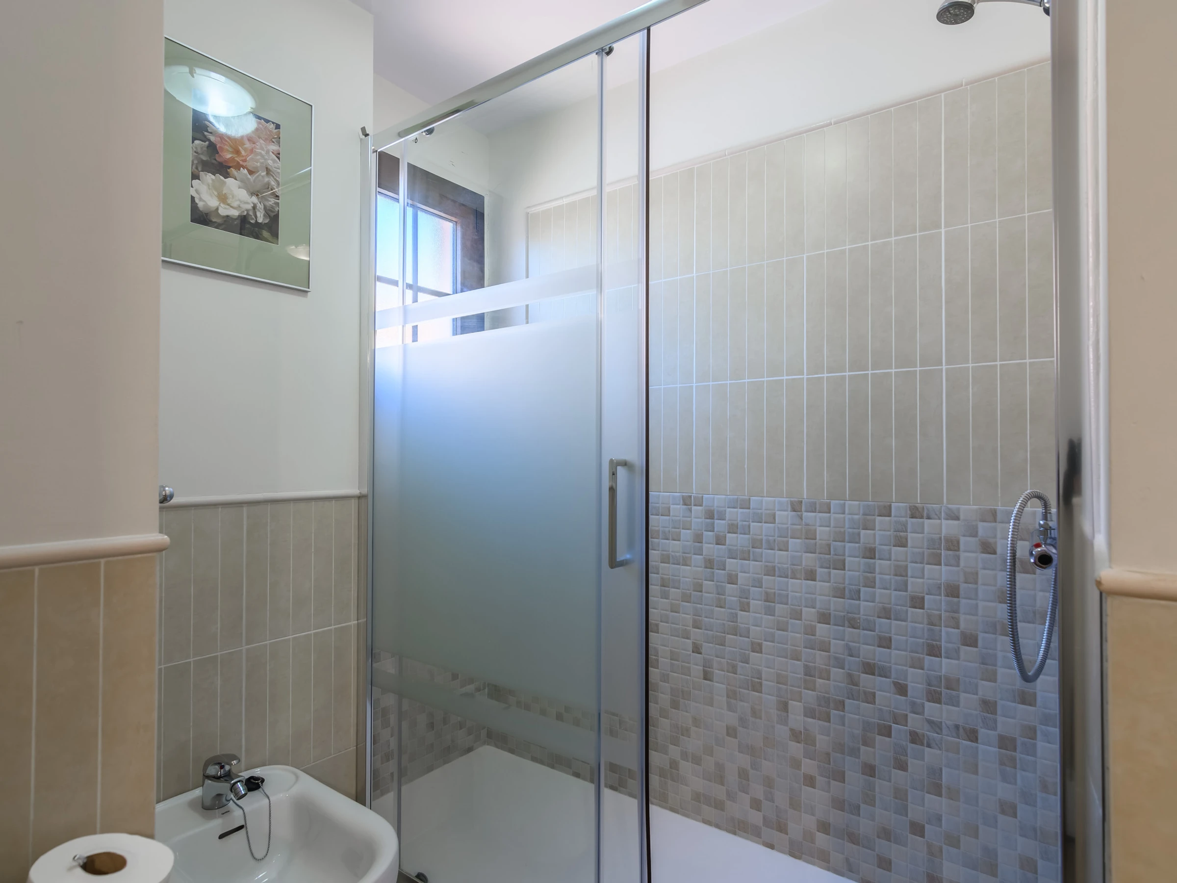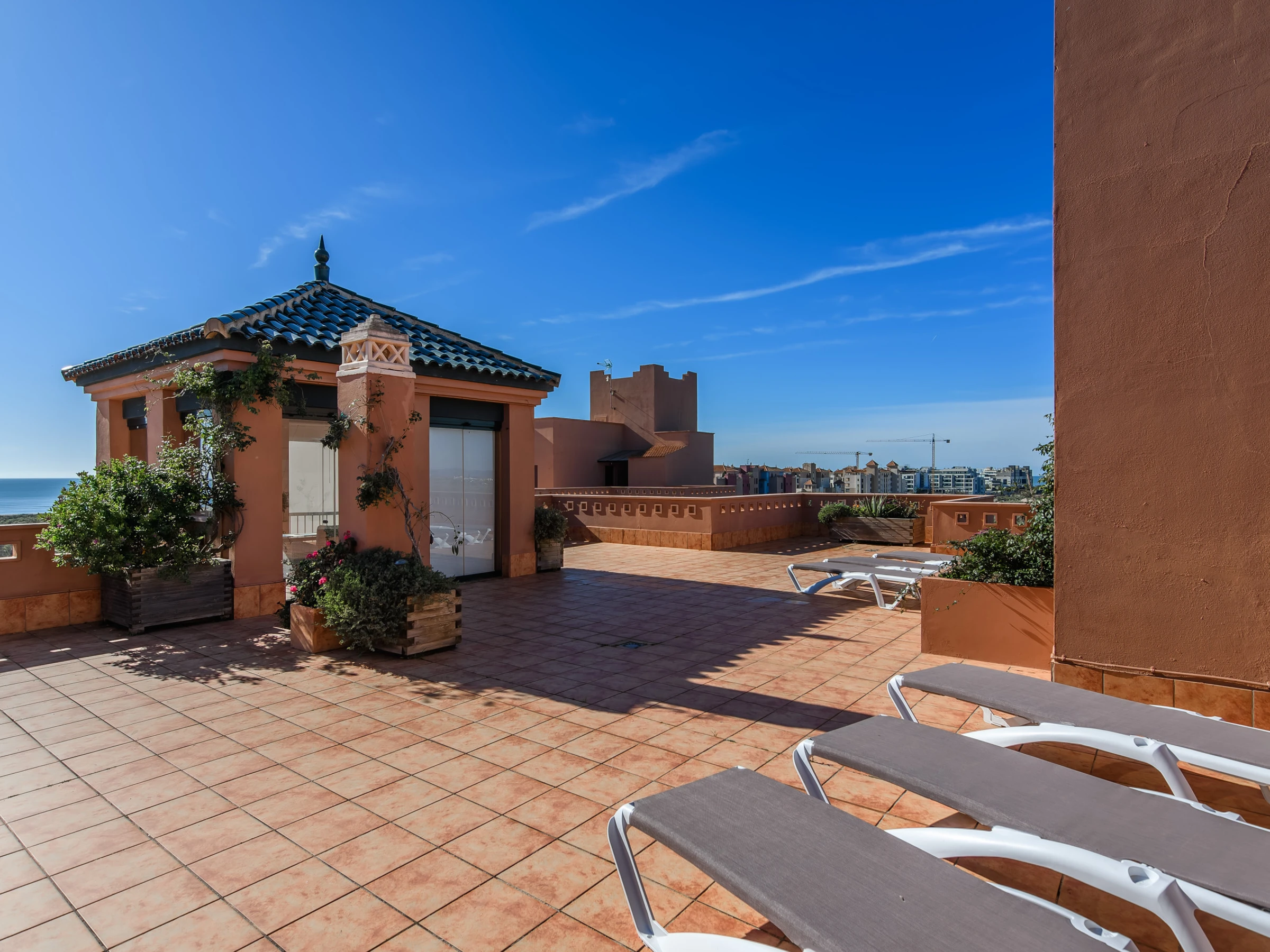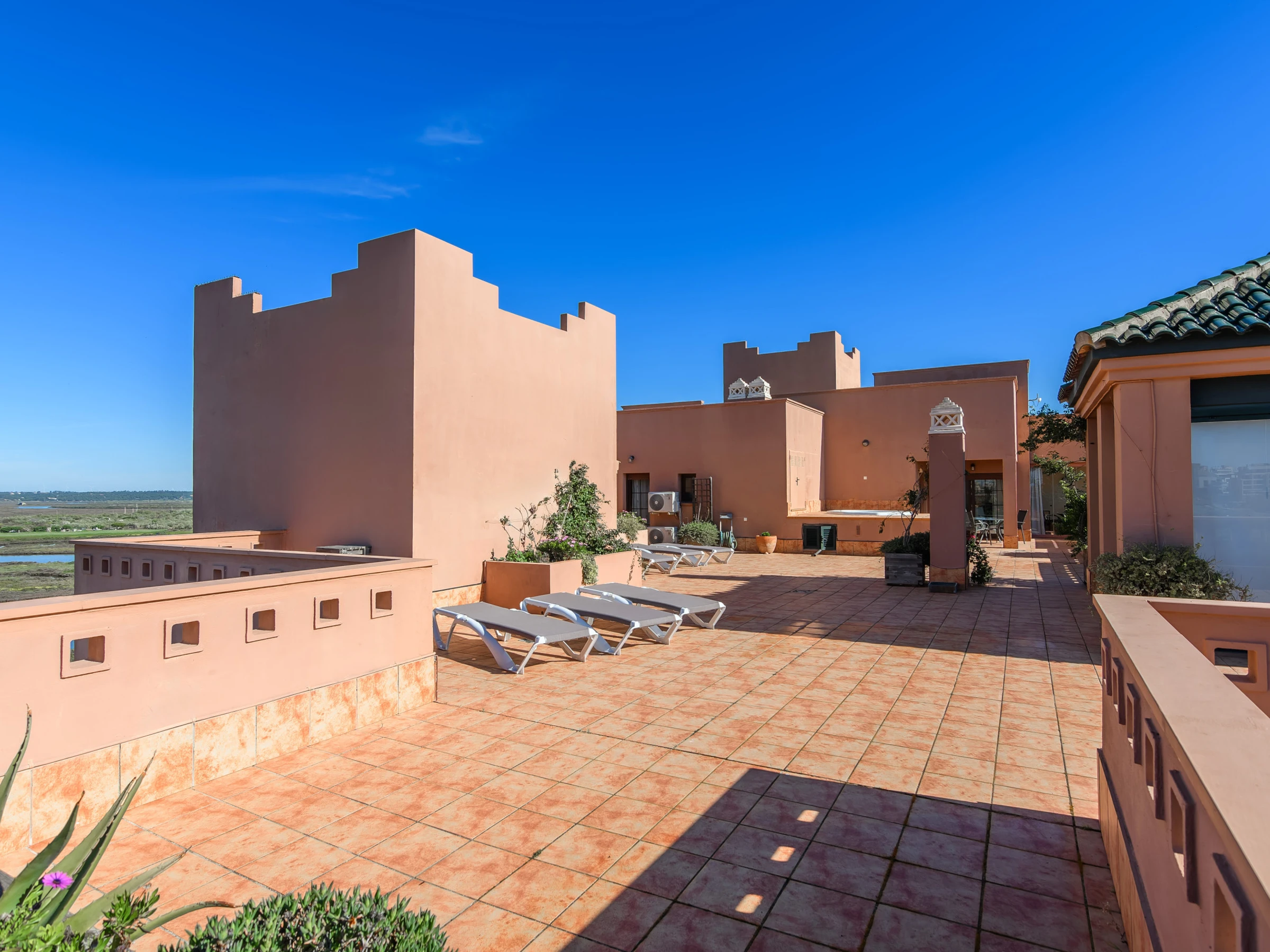 Elle dispose de ascenseur, jardin, mobilier de jardin, clôture, 200 m² de terrasse, lave-linge, fer à repasser, accès internet (wifi), sèche-cheveux, zone pour les enfants, piste de paddle, chauffage pompe à chaleur, climatisation dans tout le logement, piscine collective+infantile, parking couvert même bâtiment, 1 Télévision.
