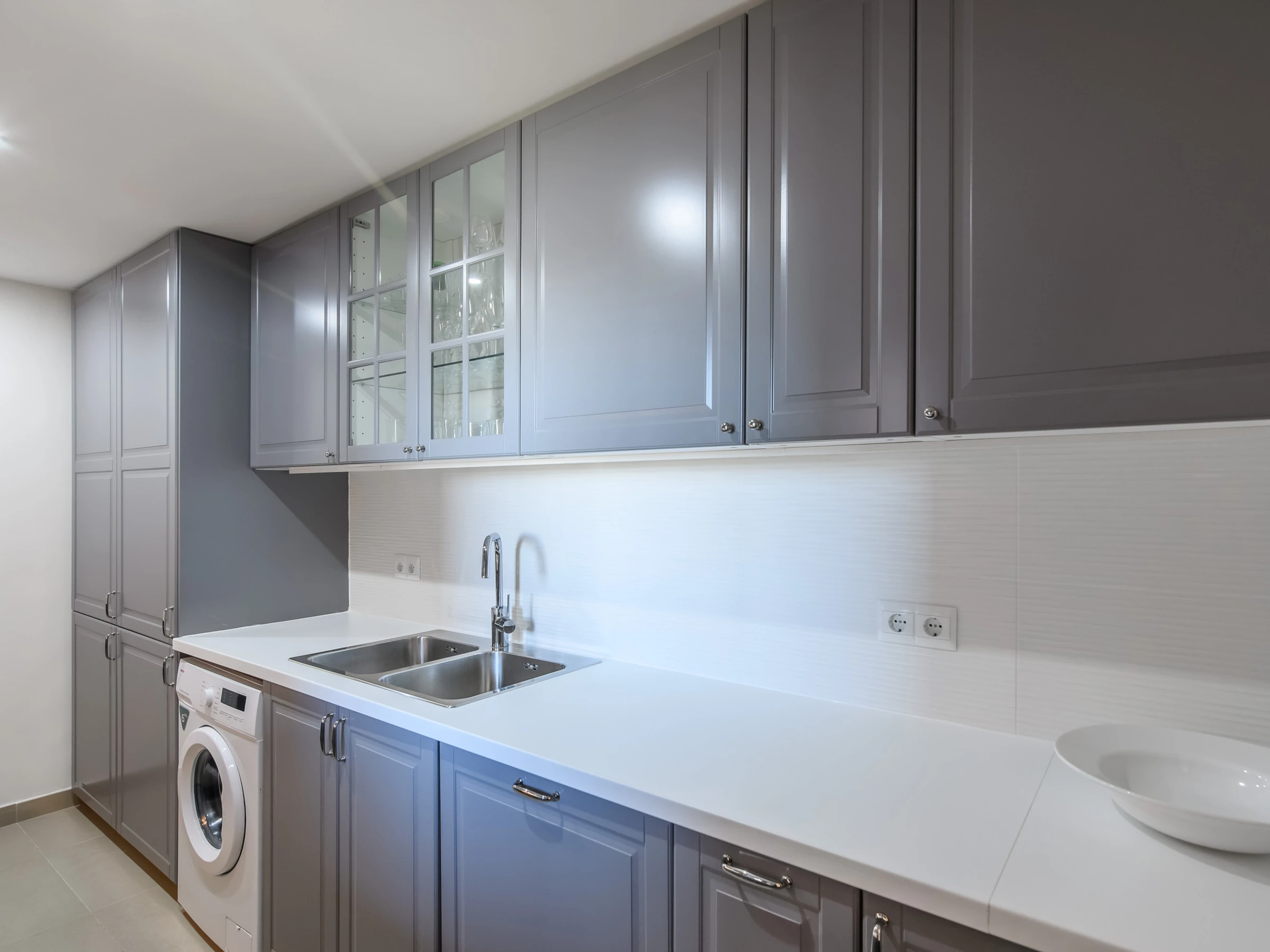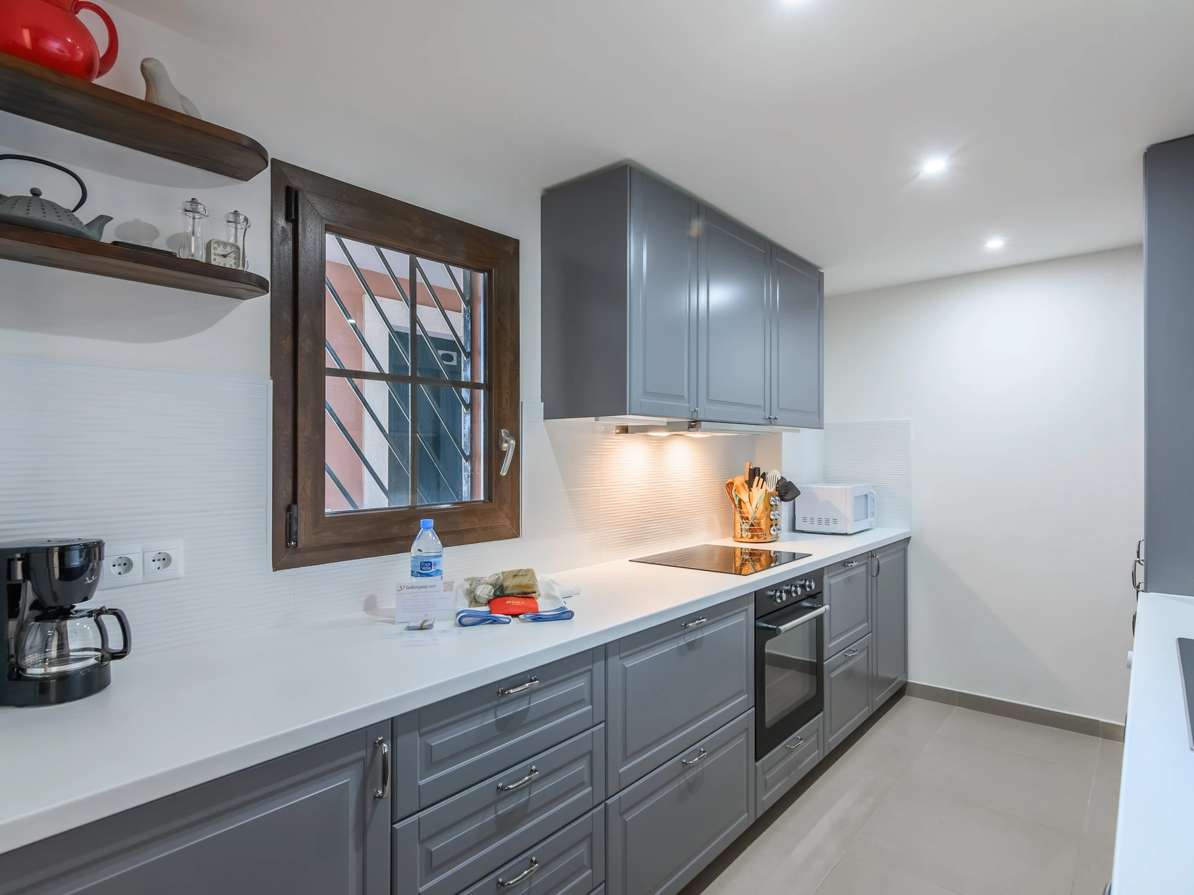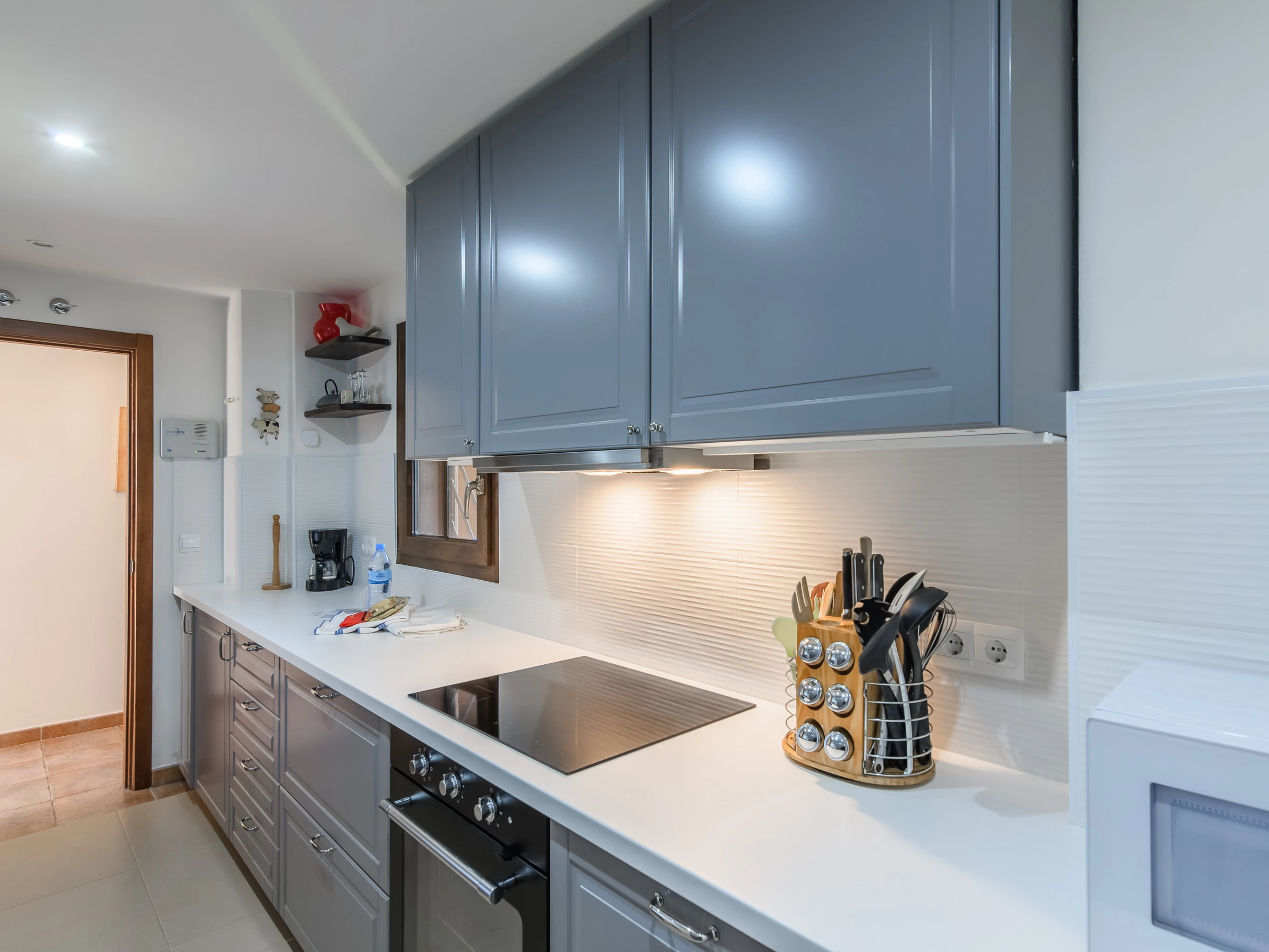 La cuisine indépendante, à vitrocéramique, est équipée avec réfrigérateur, micro-ondes, four, congélateur, lave-vaisselle, vaisselle/couverts, ustensiles/cuisine, cafetière, grille pain, bouilloire et presse-agrumes.