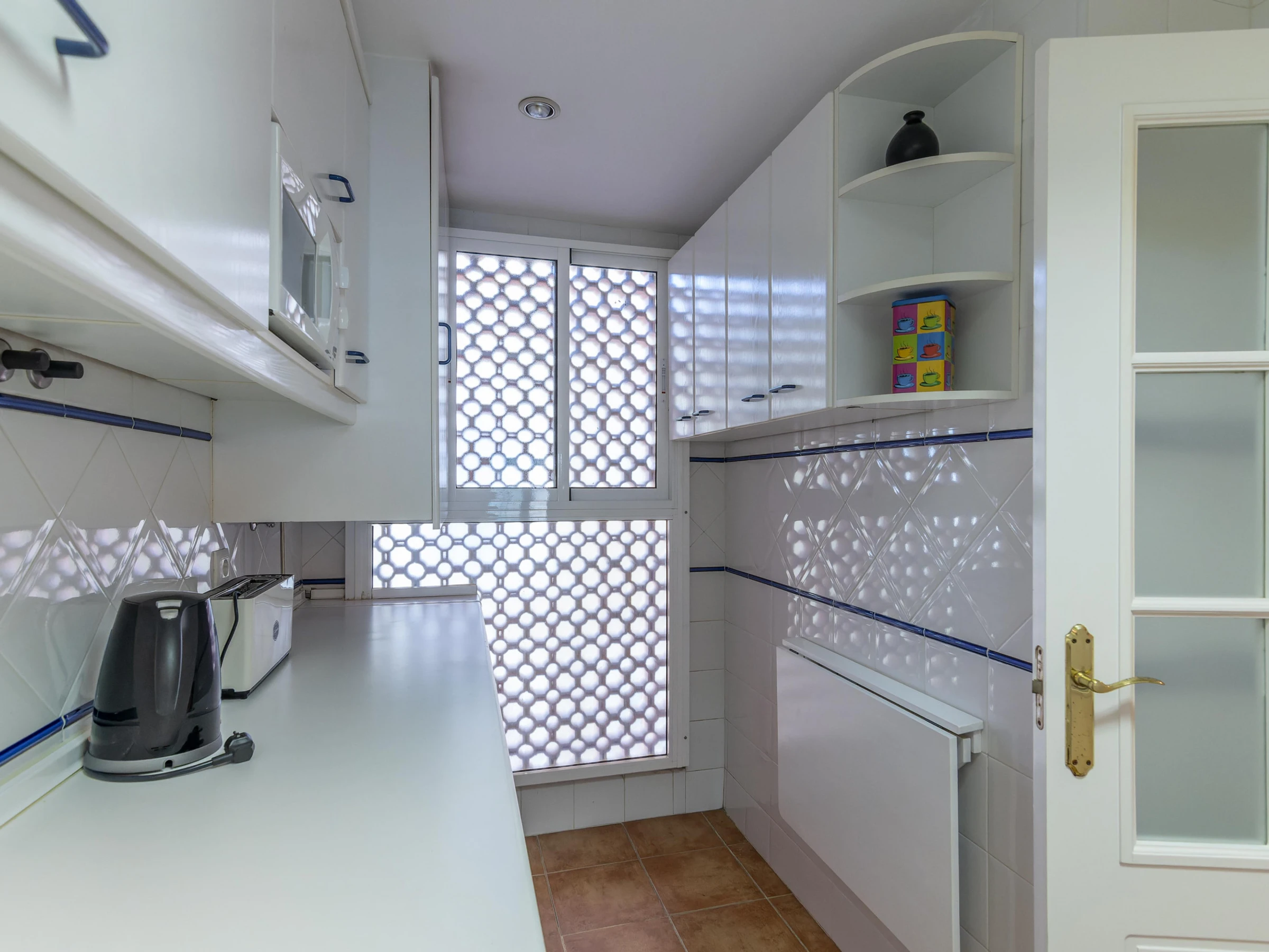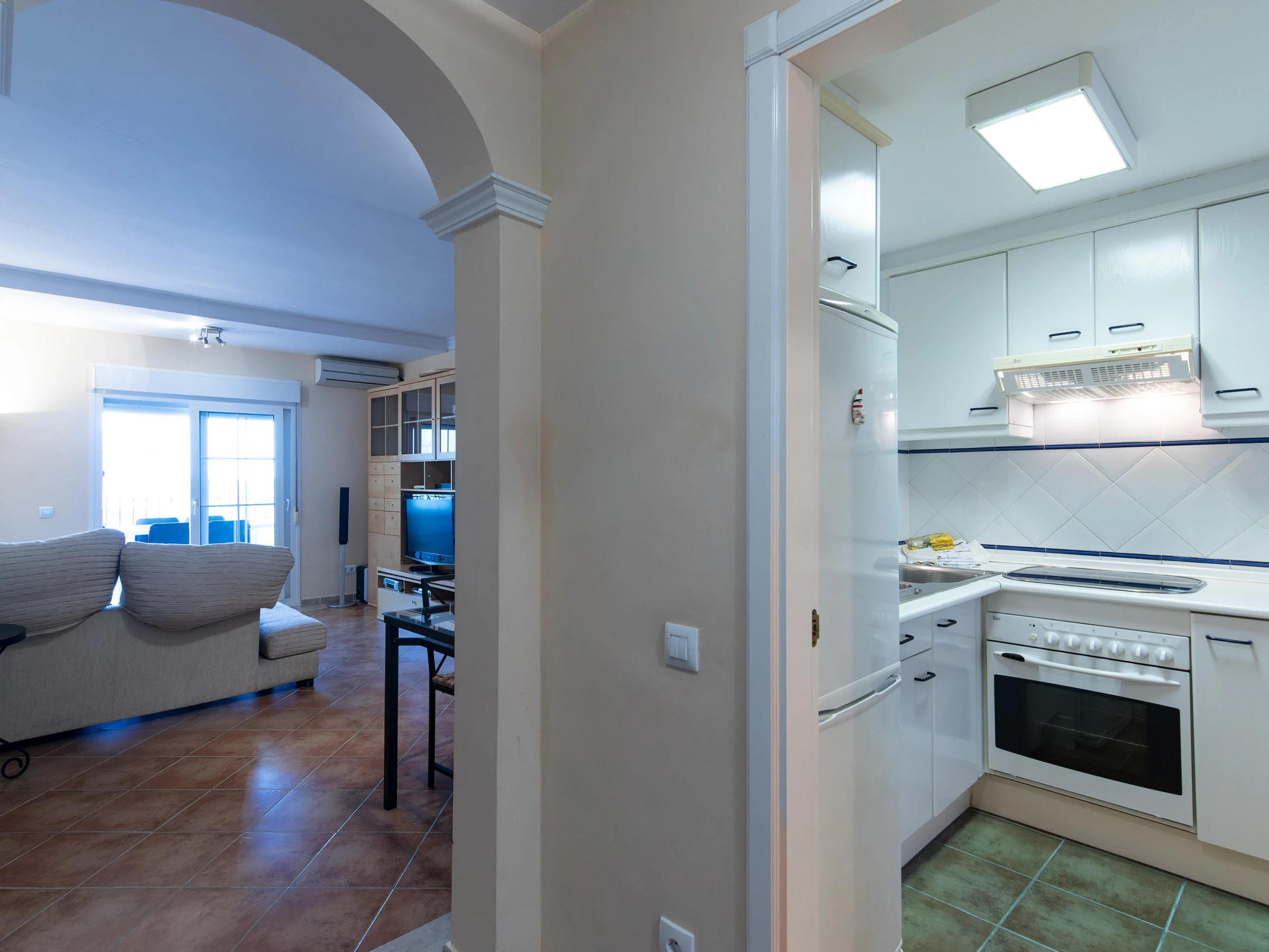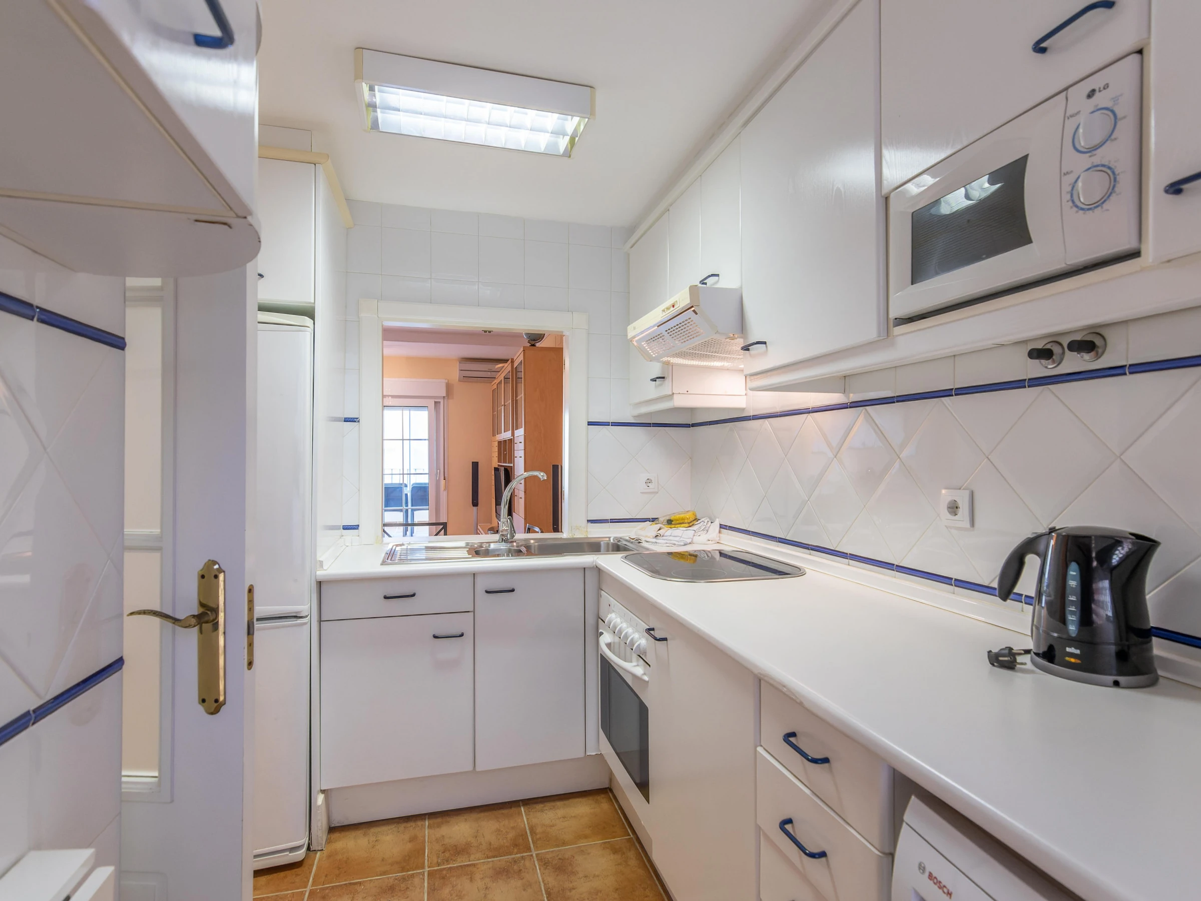La cuisine indépendante, à vitrocéramique, est équipée avec réfrigérateur, micro-ondes, four, congélateur, vaisselle/couverts, ustensiles/cuisine, cafetière, grille pain et presse-agrumes.