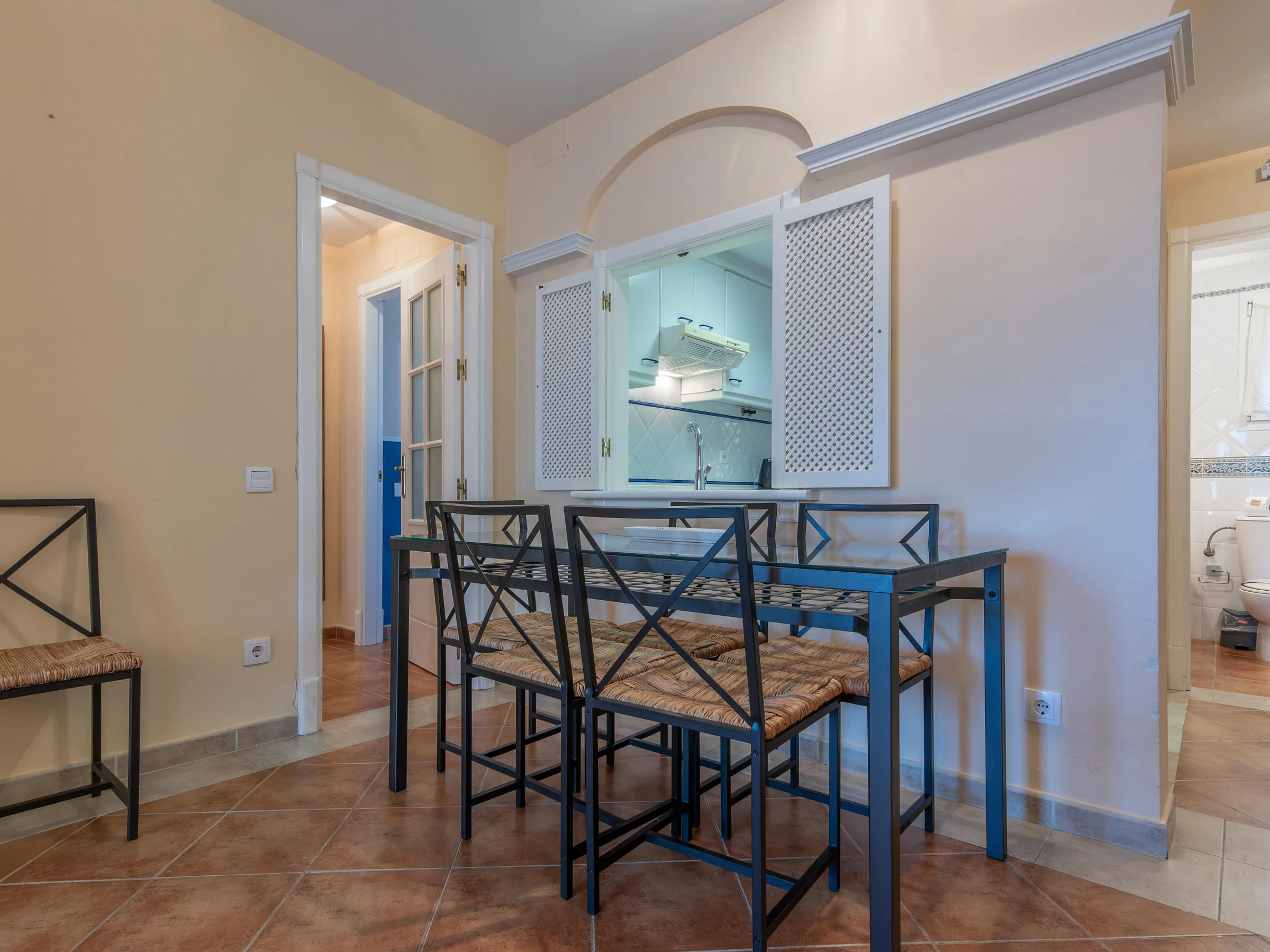 Elle dispose de ascenseur, mobilier de jardin, clôture, 10 m² de terrasse, lave-linge, fer à repasser, accès internet (wifi), sèche-cheveux, chauffage pompe à chaleur, climatisation dans tout le logement, piscine collective, parking couvert même bâtiment, 1 Télévision.