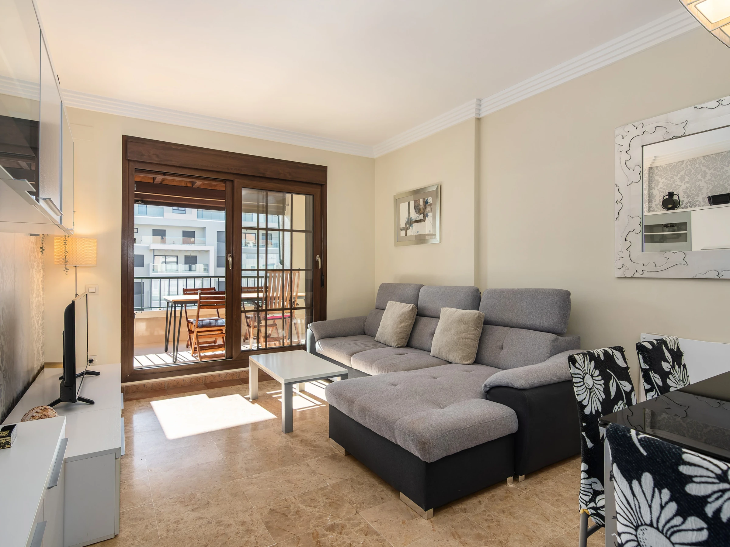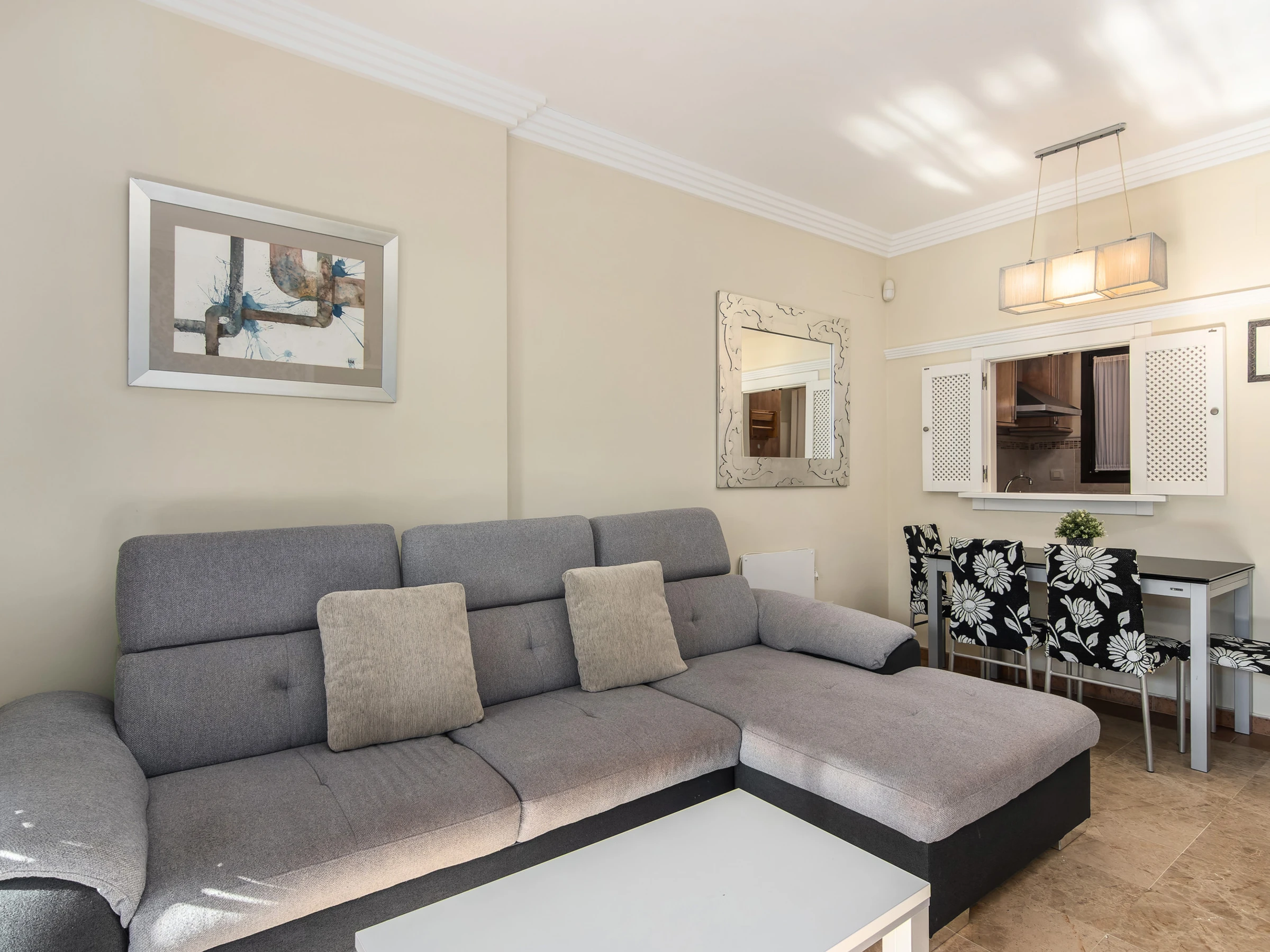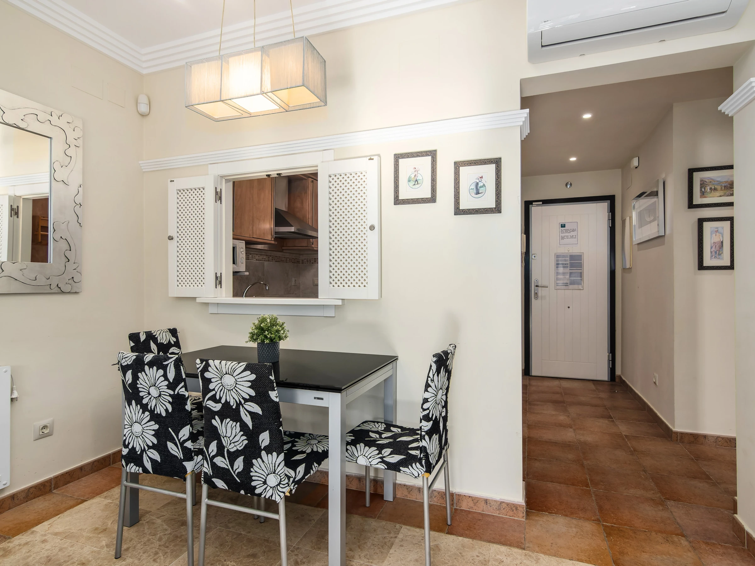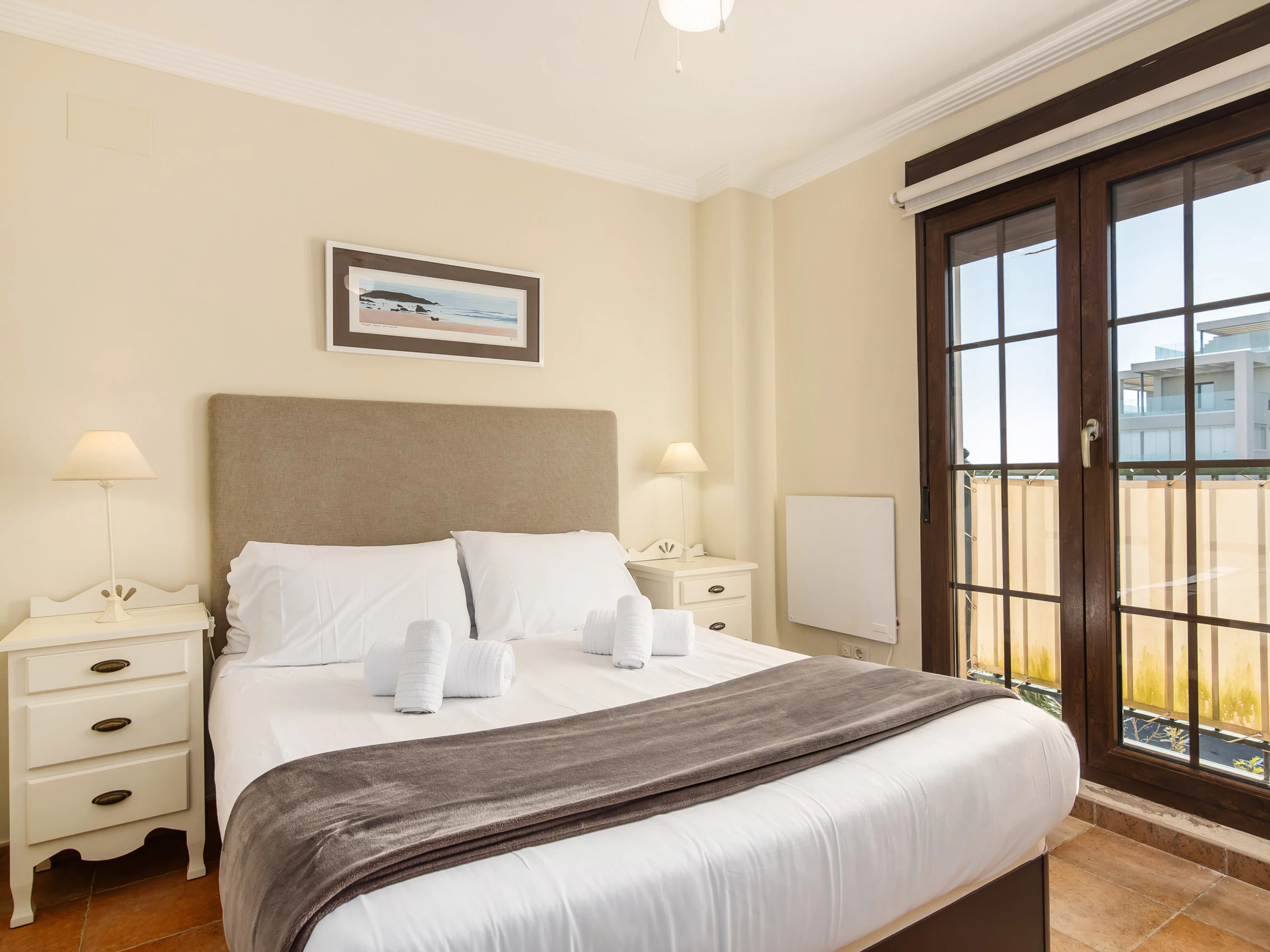 Elle dispose de ascenseur, jardin, mobilier de jardin, clôture, 9 m² de terrasse, lave-linge, fer à repasser, accès internet (wifi), sèche-cheveux, zone pour les enfants, piste de paddle, chauffage pompe à chaleur, climatisation dans tout le logement, piscine collective+infantile, parking couvert même bâtiment, 1 Télévision.