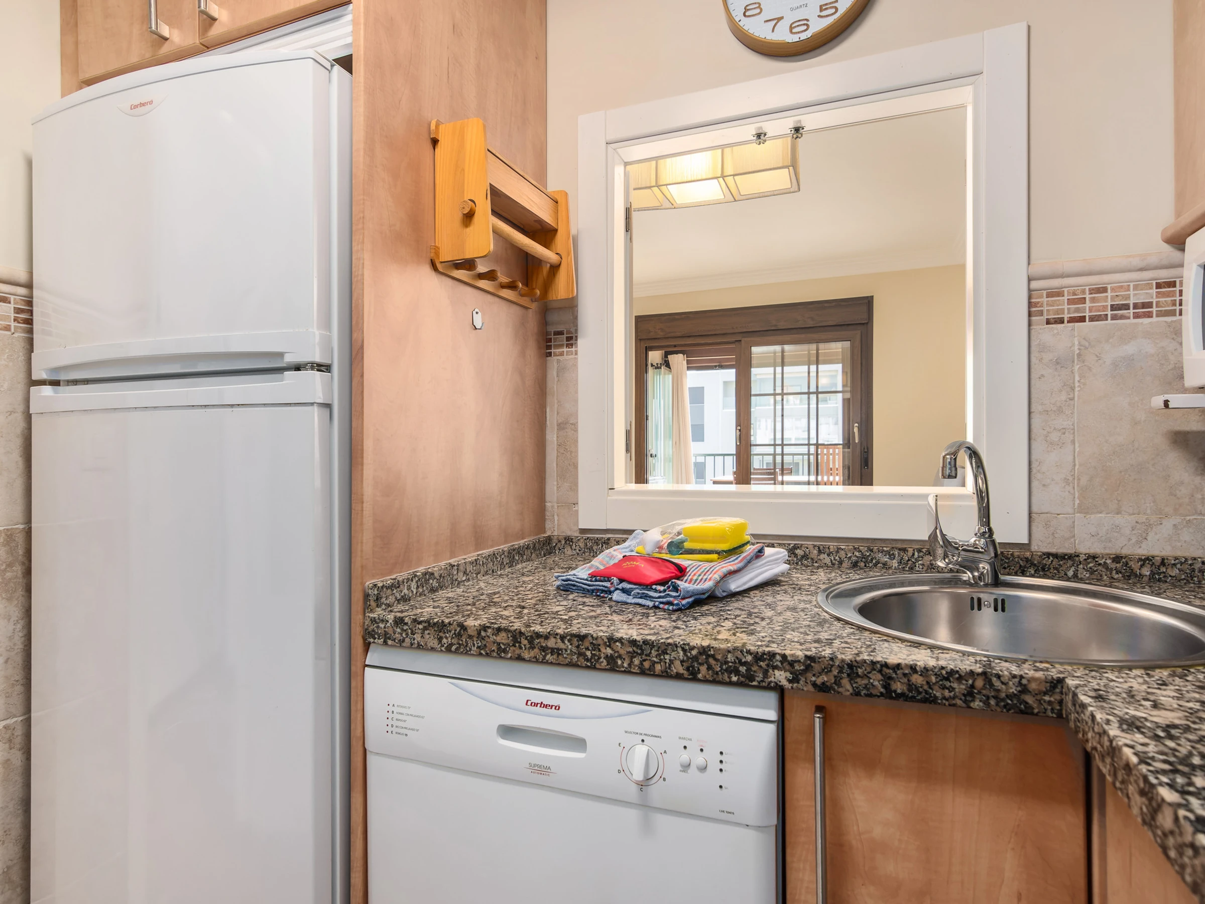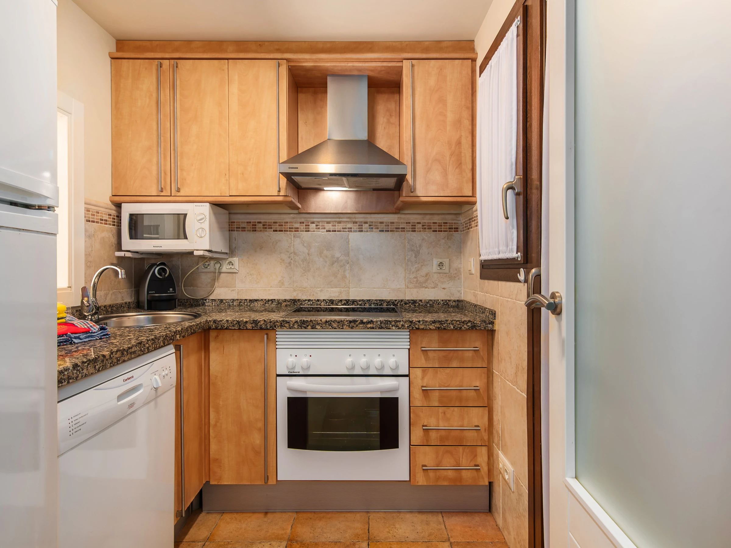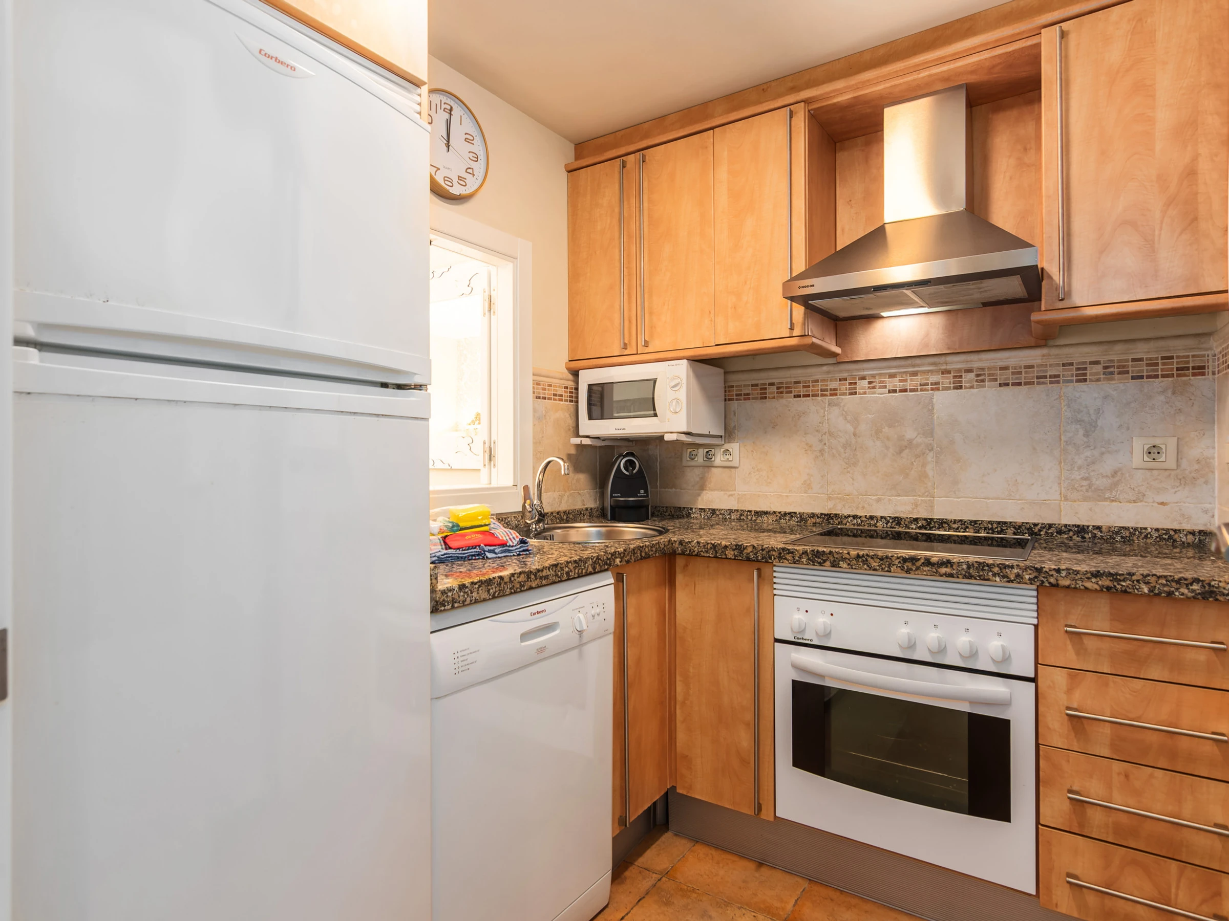 La cuisine indépendante, à vitrocéramique, est équipée avec réfrigérateur, micro-ondes, four, congélateur, lave-vaisselle, vaisselle/couverts, ustensiles/cuisine, cafetière, grille pain et presse-agrumes.