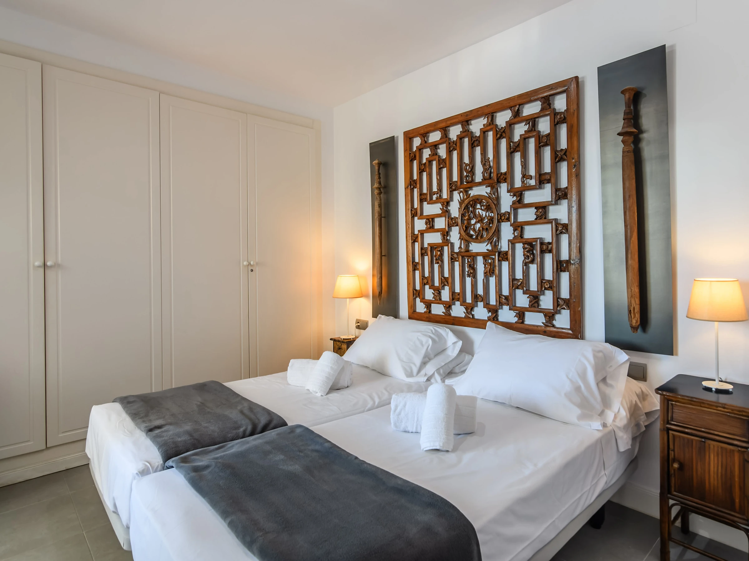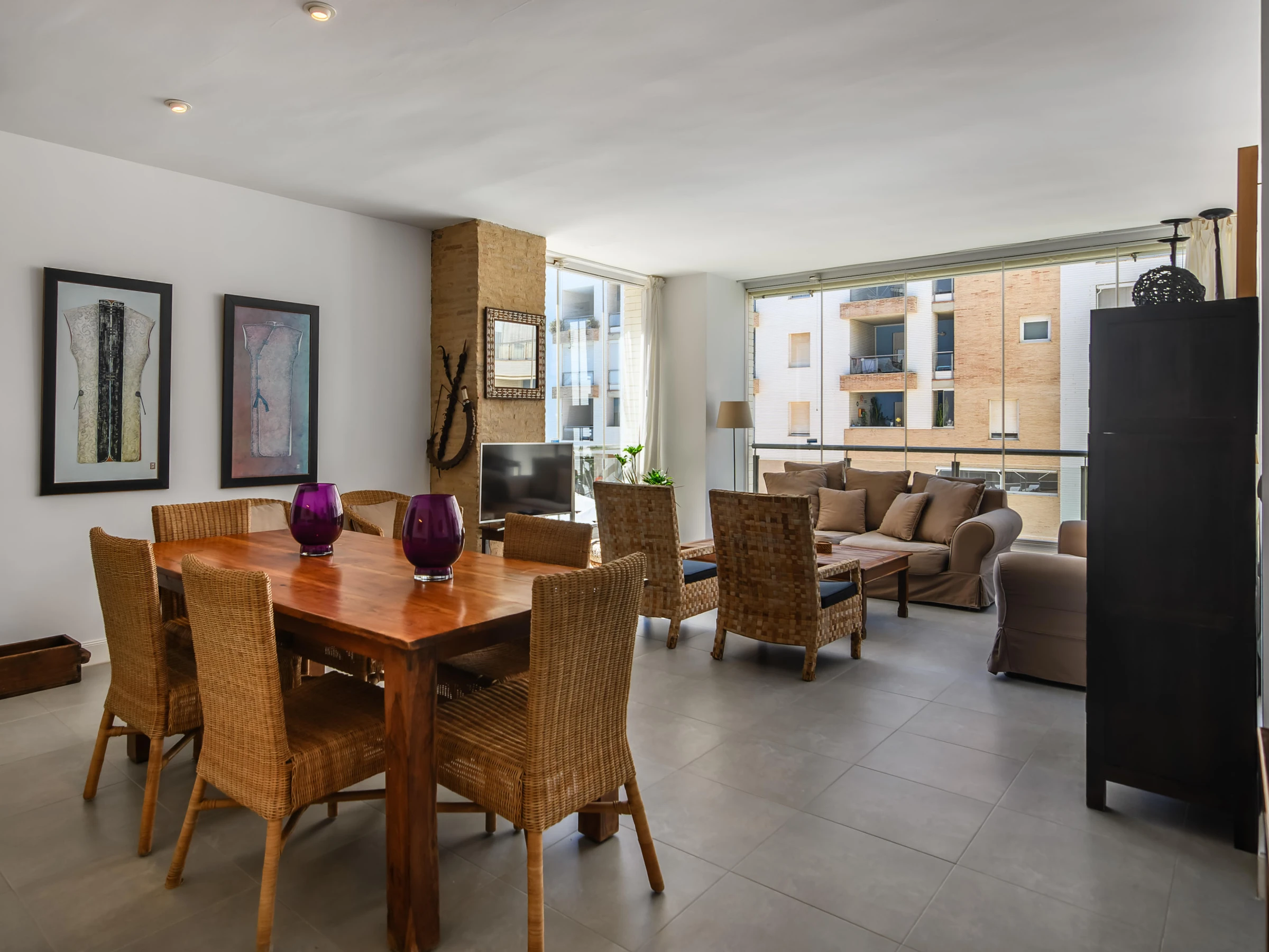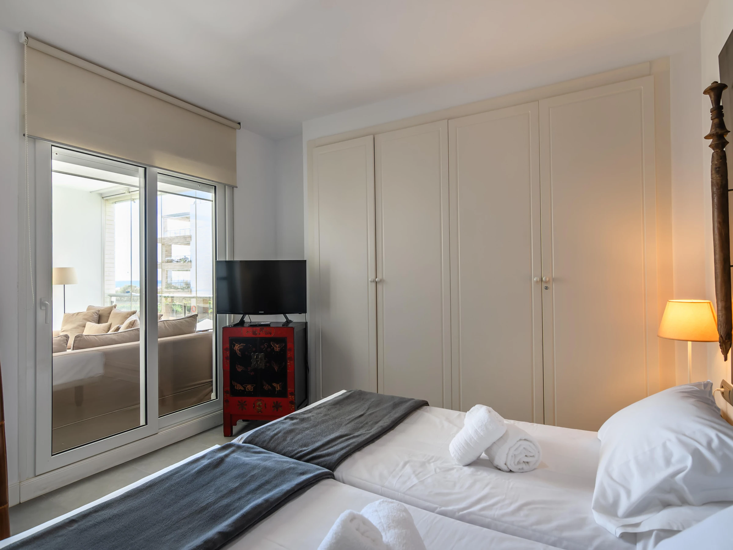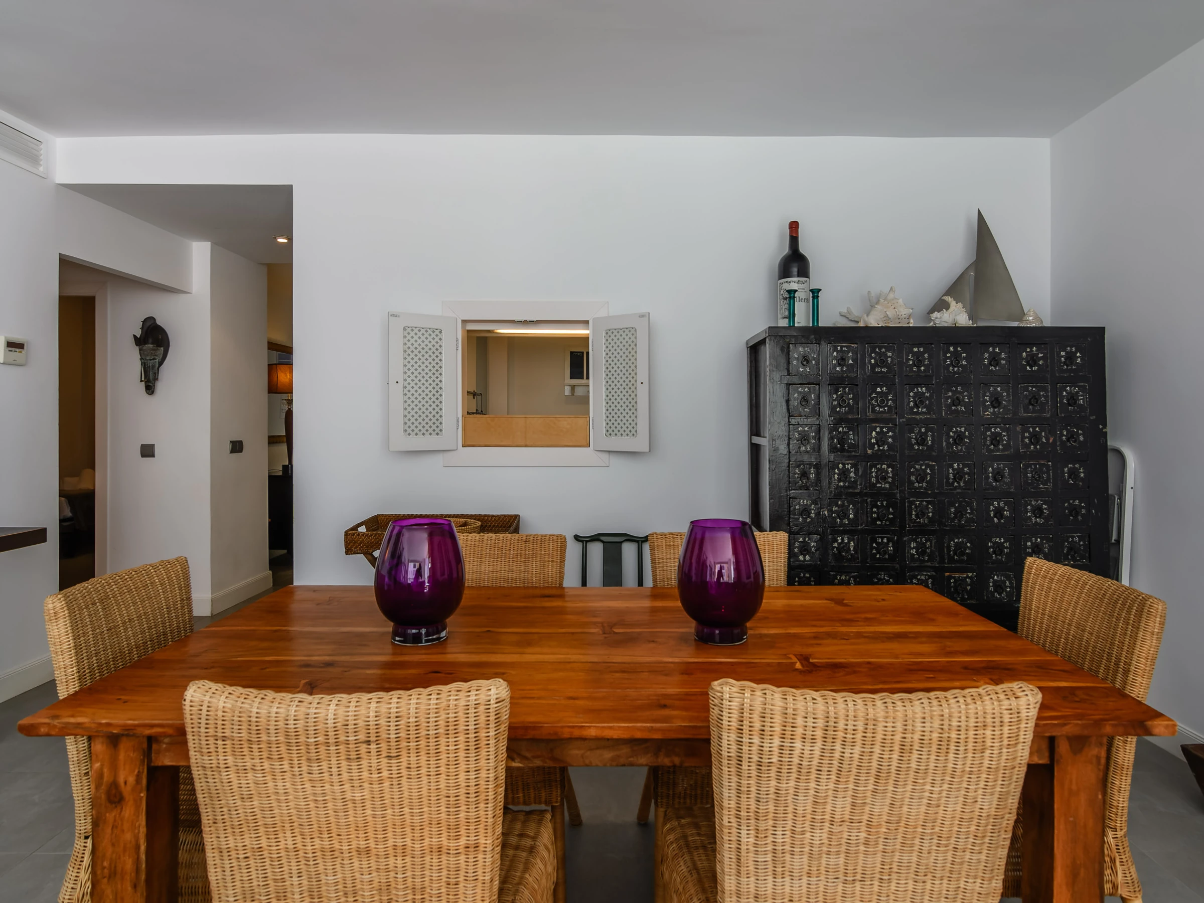 Logement de 80 m² meublé avec goût et vaste, situé en front de plage, avec vue sur la mer et la piscine.