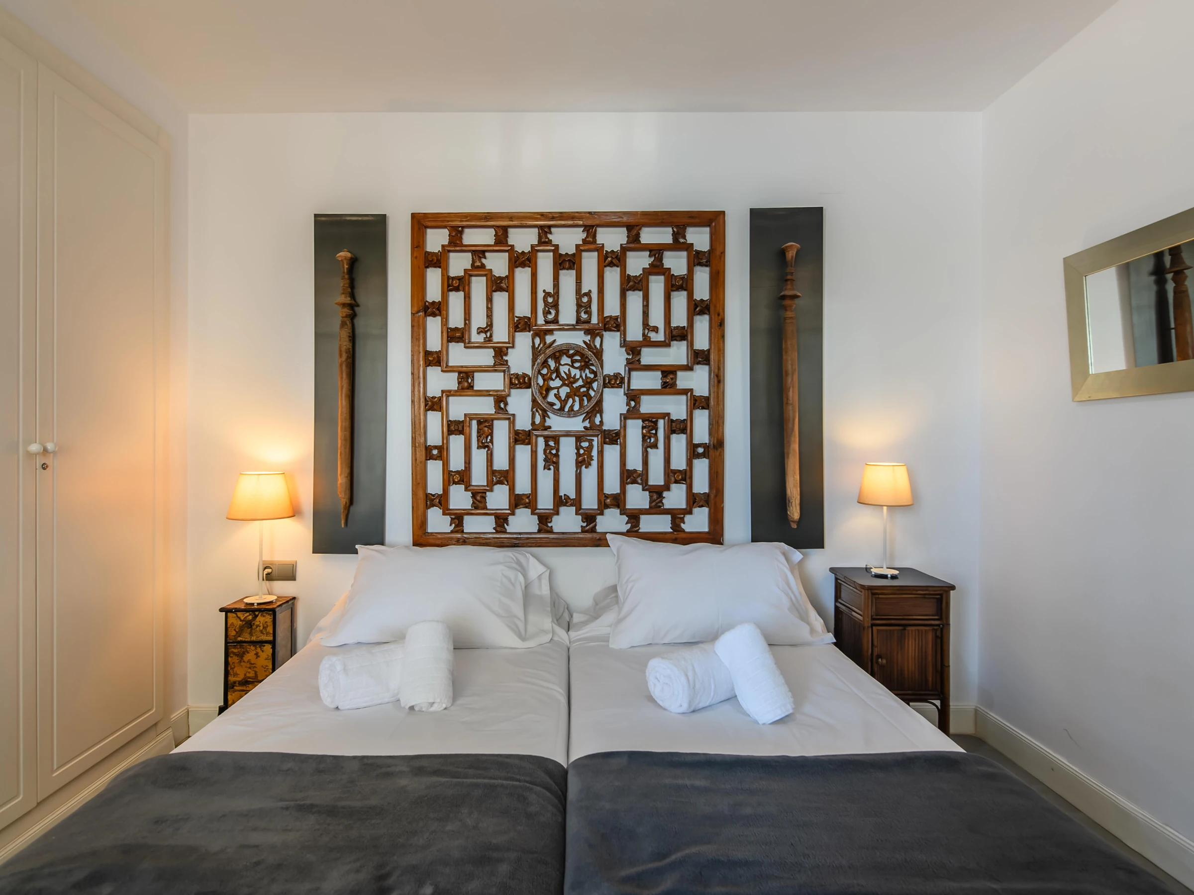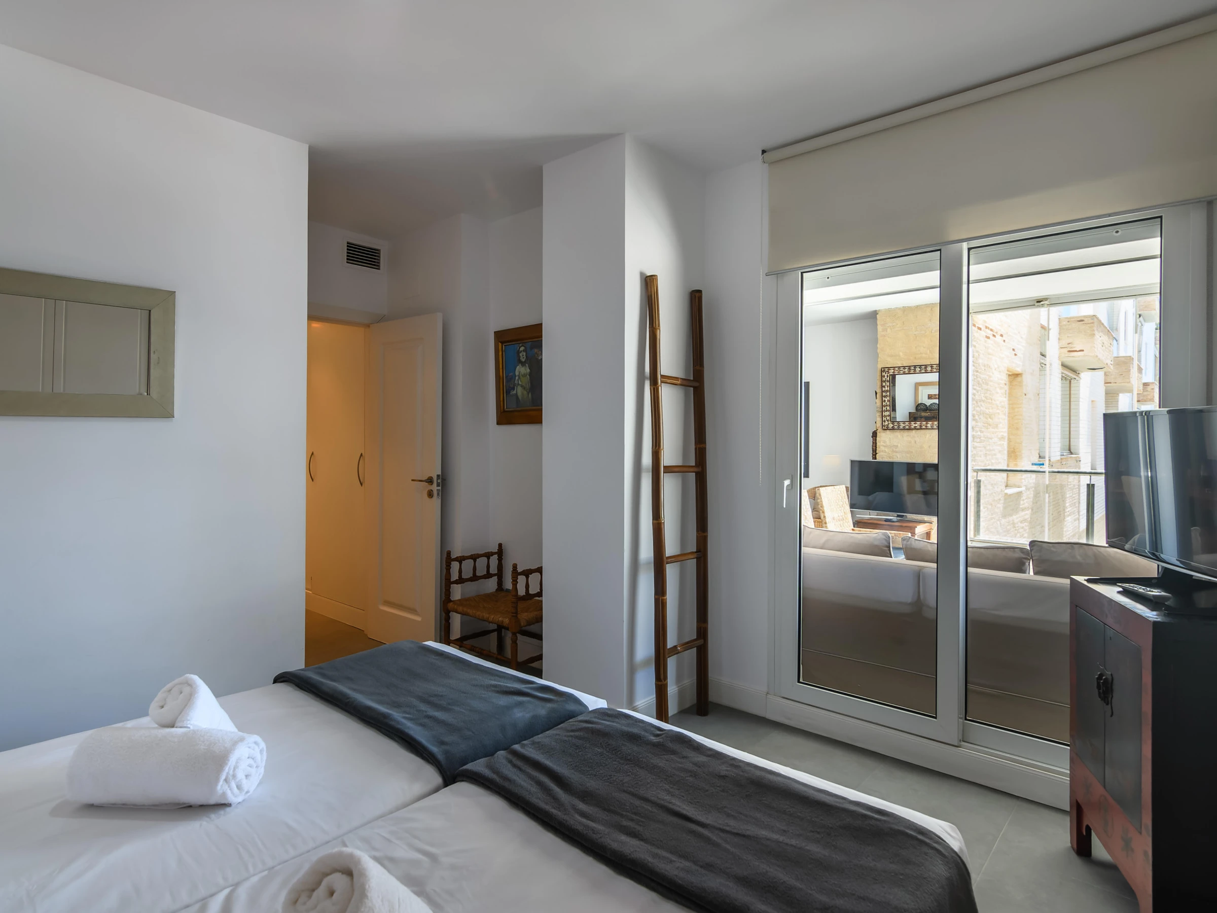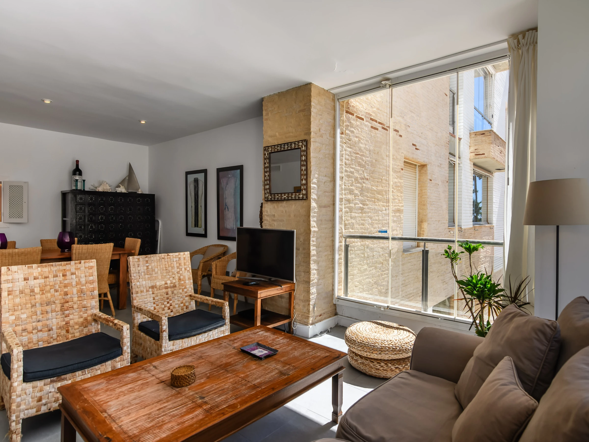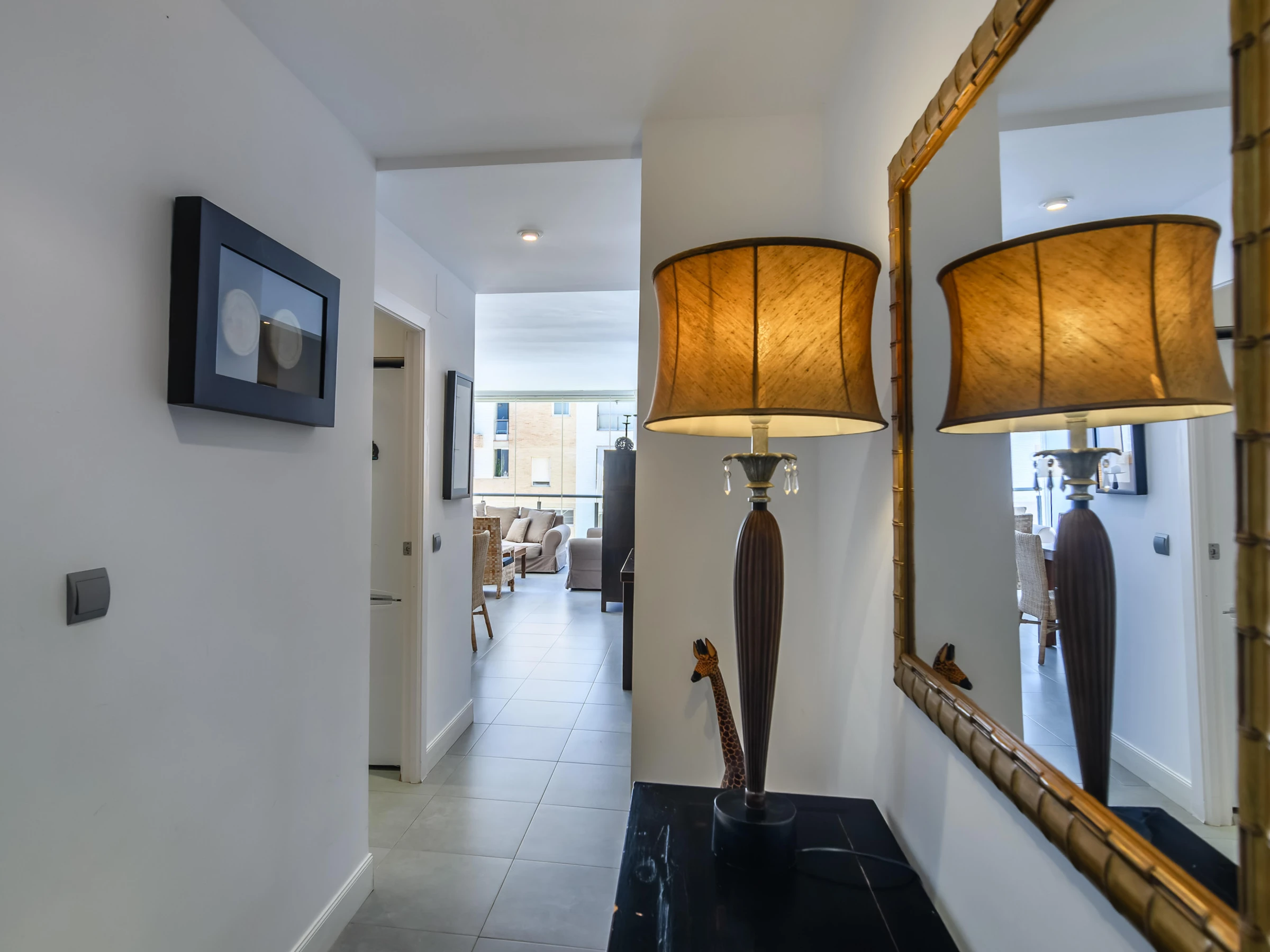 Logement de 80 m² meublé avec goût et vaste, situé en front de plage, avec vue sur la mer et la piscine.