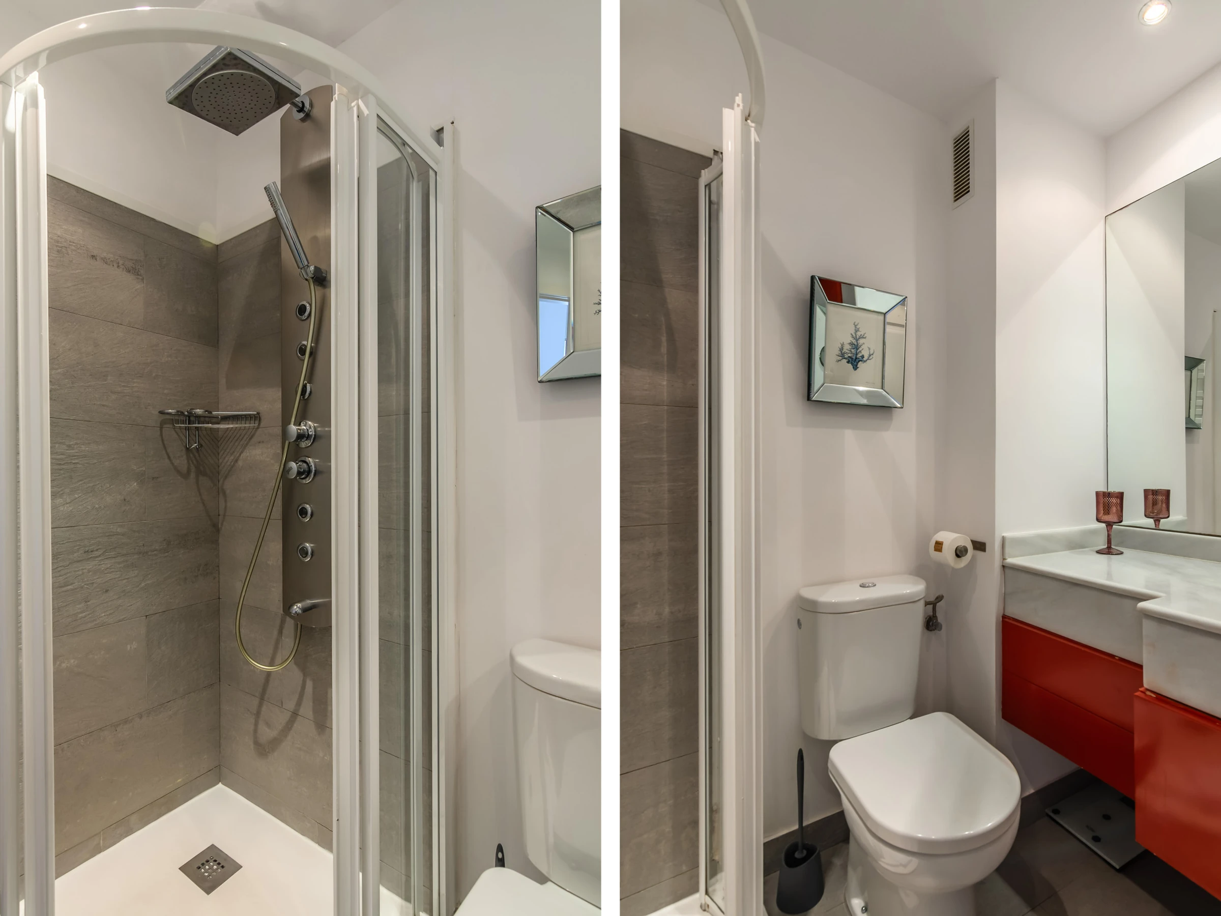 Elle dispose de ascenseur, clôture, lave-linge, sèche-linge, fer à repasser, accès internet (wifi), sèche-cheveux, piste de paddle, chauffage pompe à chaleur, climatisation dans tout le logement, piscine collective+infantile, parking couvert même bâtiment, 1 Télévision.
