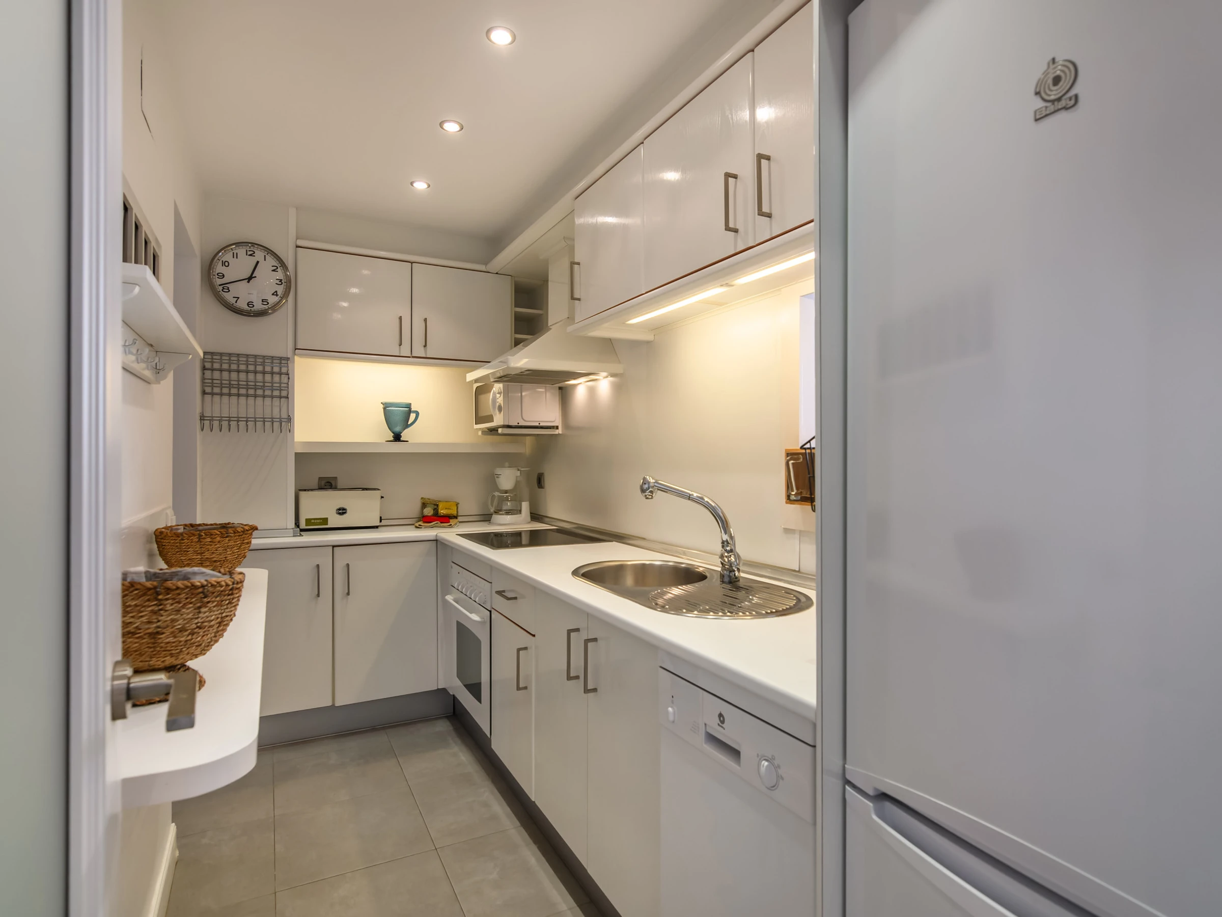 La cuisine indépendante, à vitrocéramique, est équipée avec réfrigérateur, micro-ondes, four, congélateur, lave-vaisselle, vaisselle/couverts, ustensiles/cuisine, cafetière, grille pain et presse-agrumes.