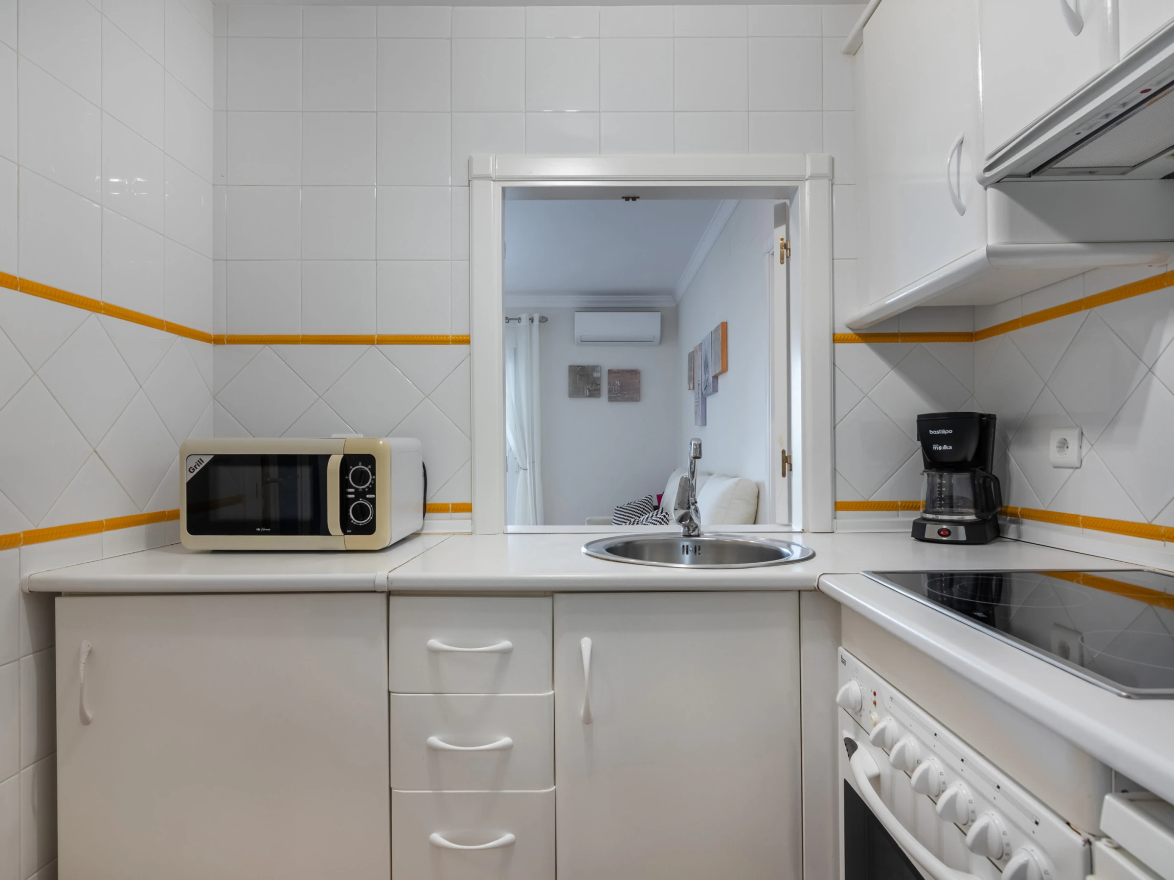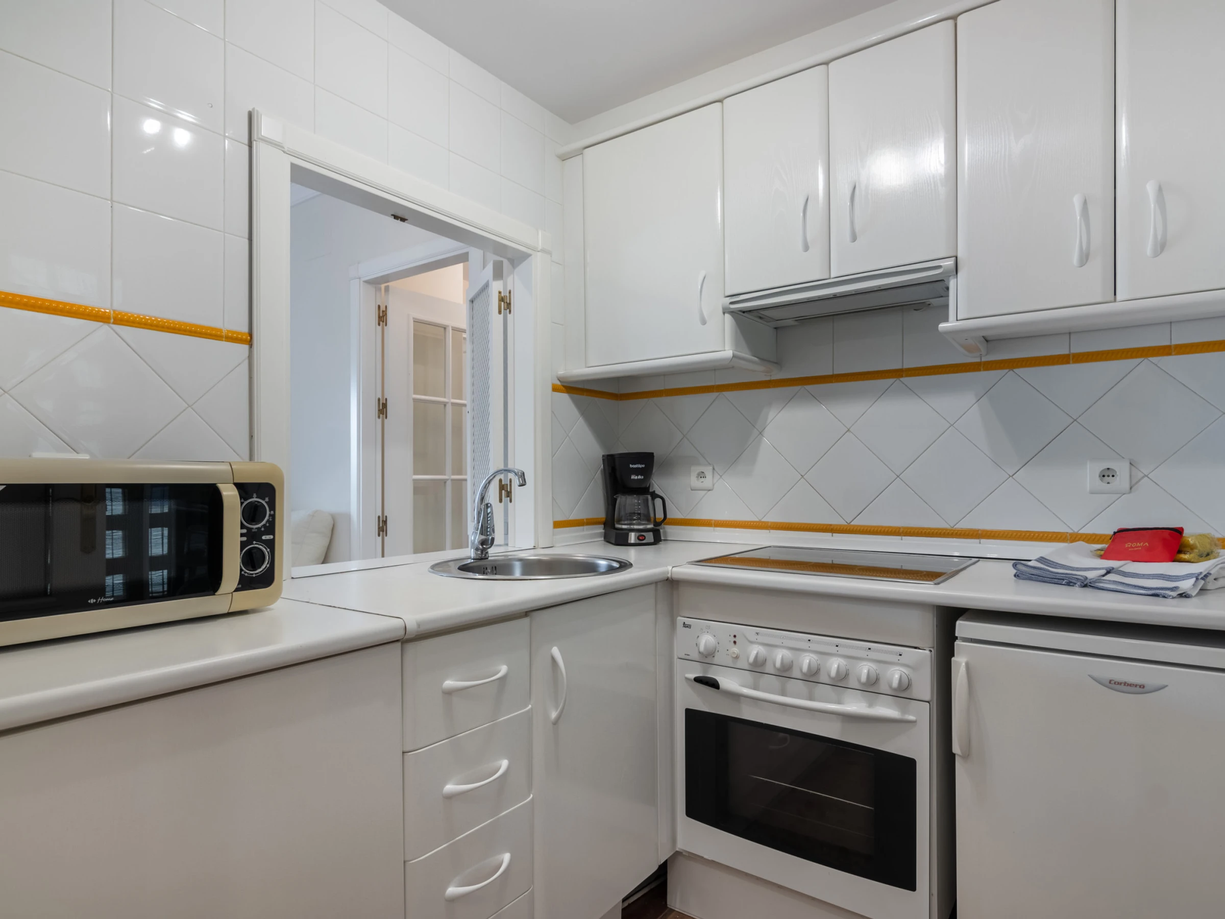 La cuisine indépendante, à vitrocéramique, est équipée avec réfrigérateur, micro-ondes, four, congélateur, vaisselle/couverts, ustensiles/cuisine, cafetière, grille pain, bouilloire et presse-agrumes.