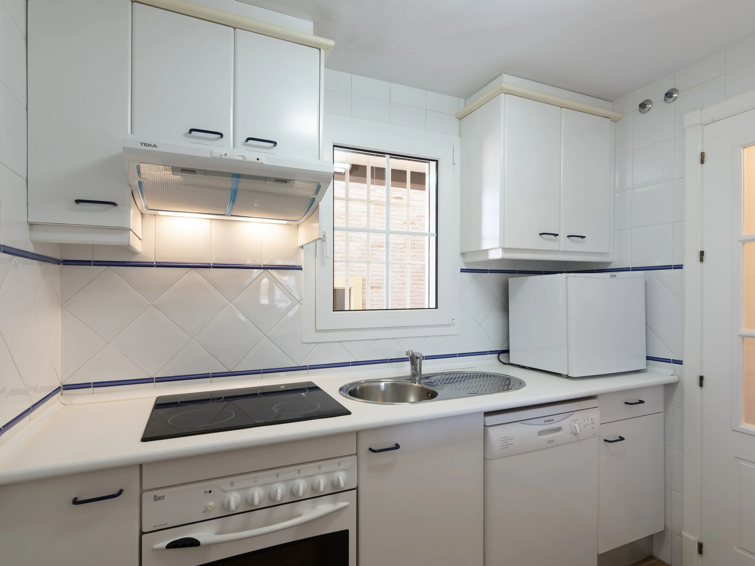 La cuisine indépendante, à vitrocéramique, est équipée avec réfrigérateur, micro-ondes, four, congélateur, lave-vaisselle, vaisselle/couverts, ustensiles/cuisine, cafetière, grille pain, bouilloire et presse-agrumes.