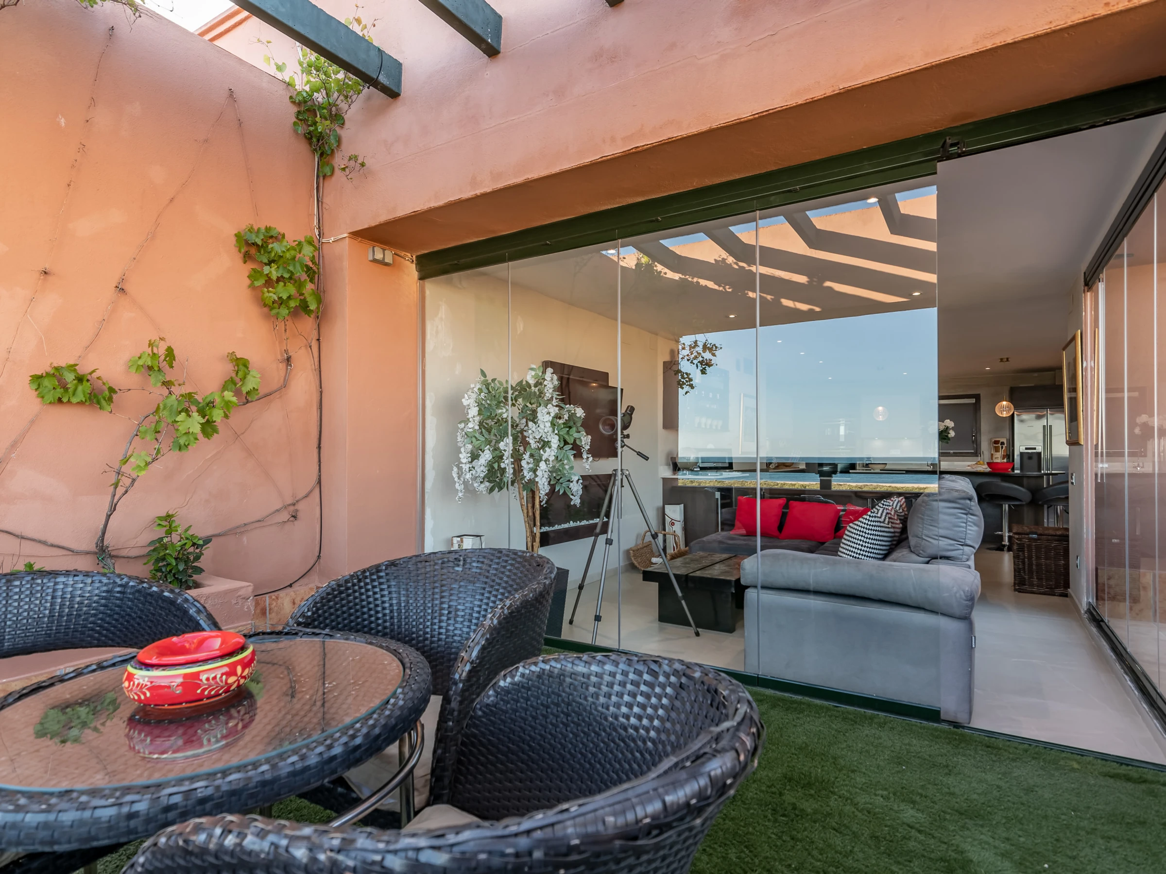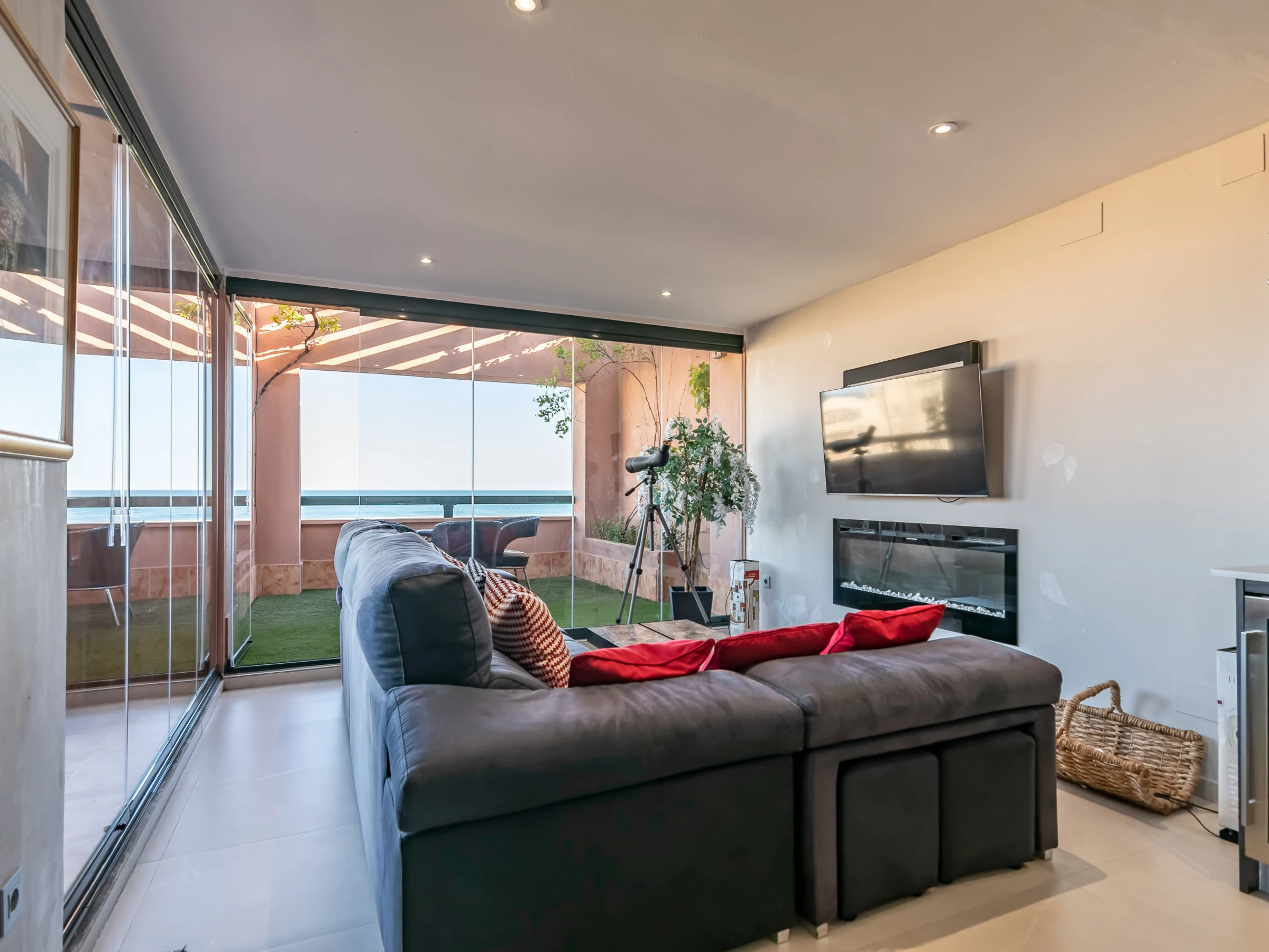 Logement de 110 m² joli et grand, situé en front de plage, avec vue sur la mer et le jardin.