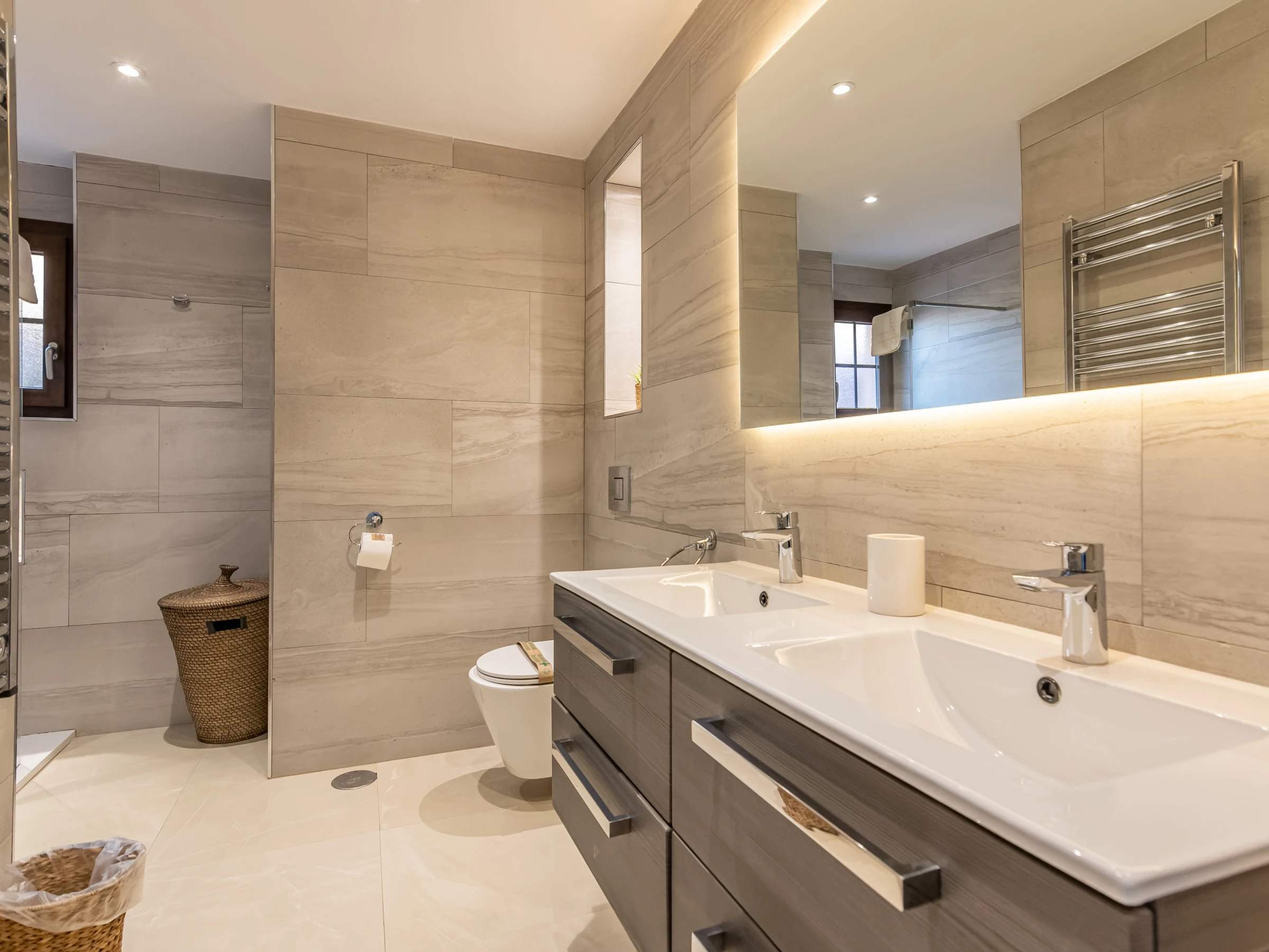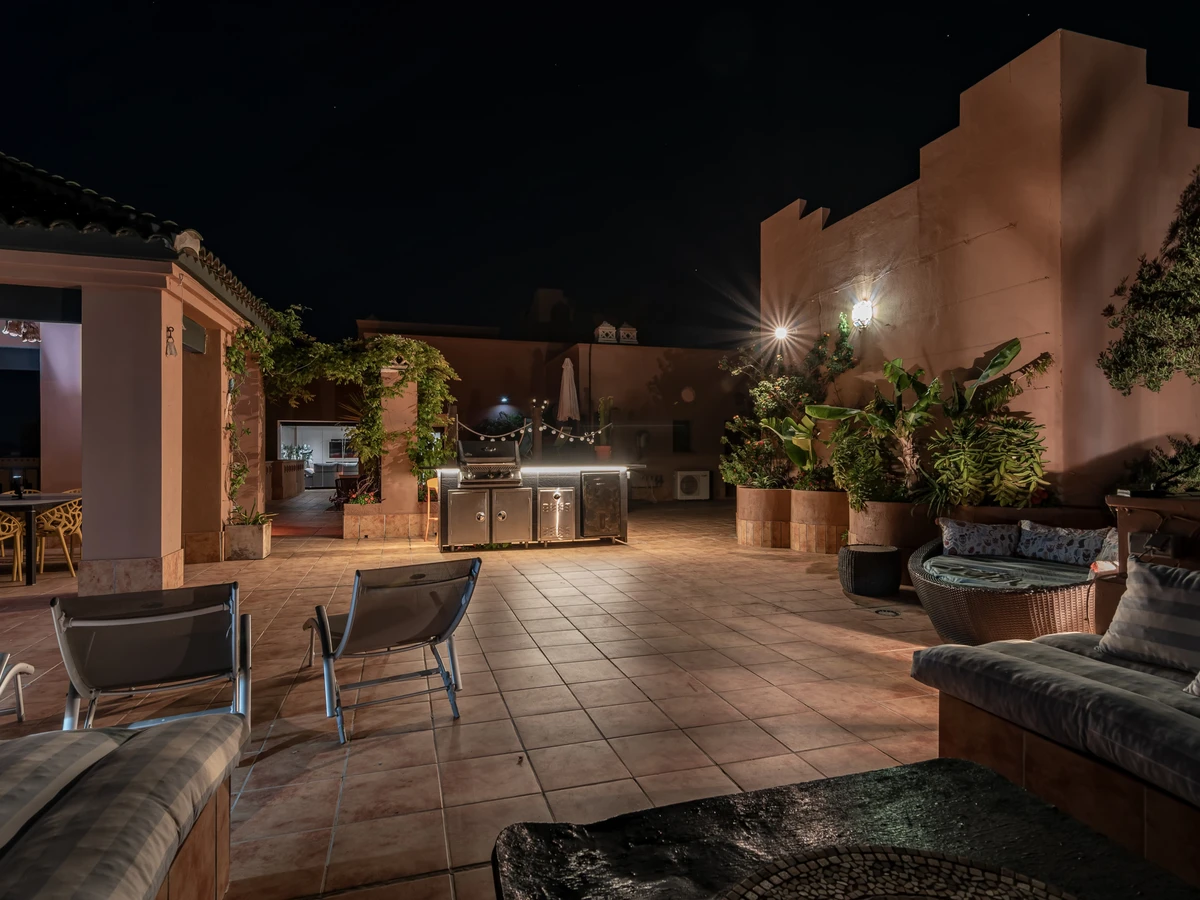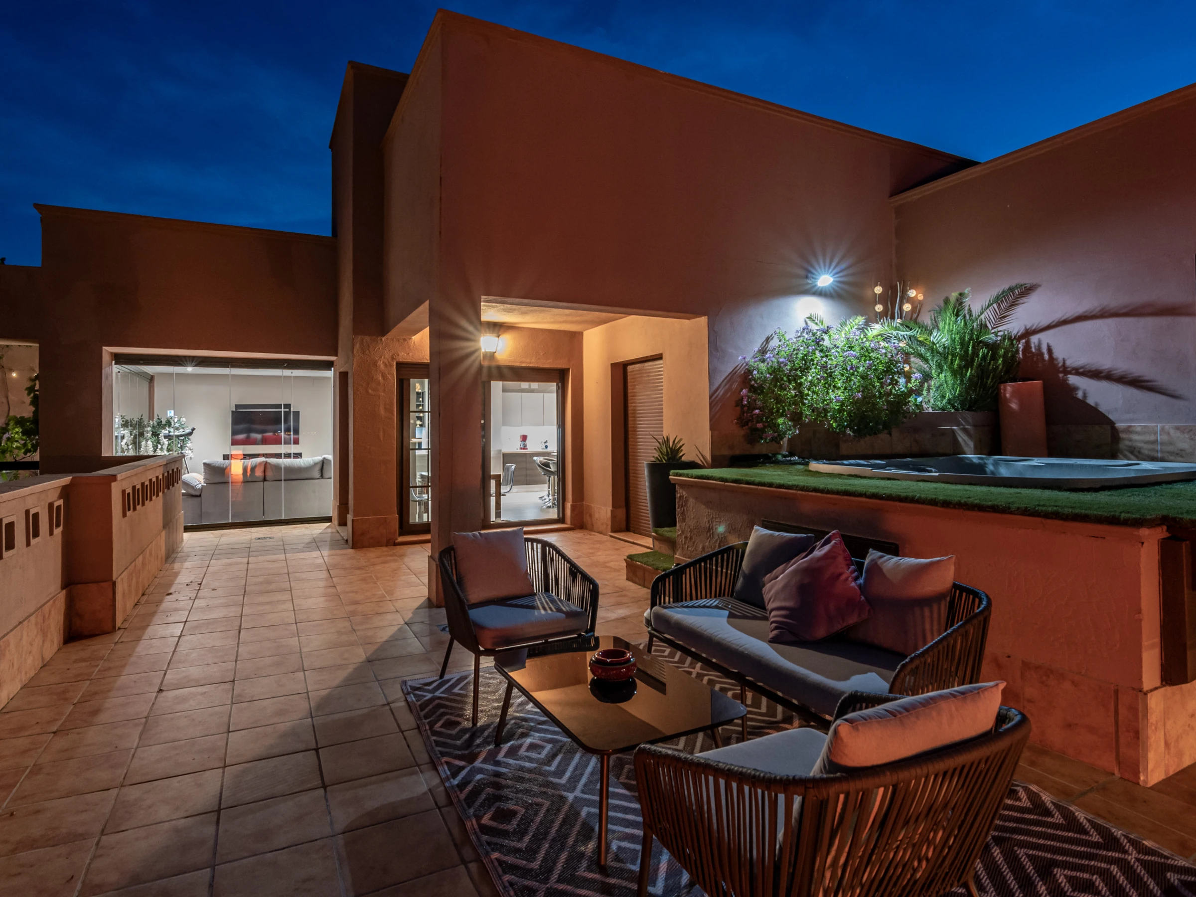 Elle dispose de ascenseur, jardin, mobilier de jardin, clôture, 200 m² de terrasse, lave-linge, barbecue, fer à repasser, accès internet (wifi), sèche-cheveux, zone pour les enfants, piste de paddle, chauffage pompe à chaleur, climatisation dans tout le logement, piscine collective+infantile, parking couvert même bâtiment, 1 Télévision.
