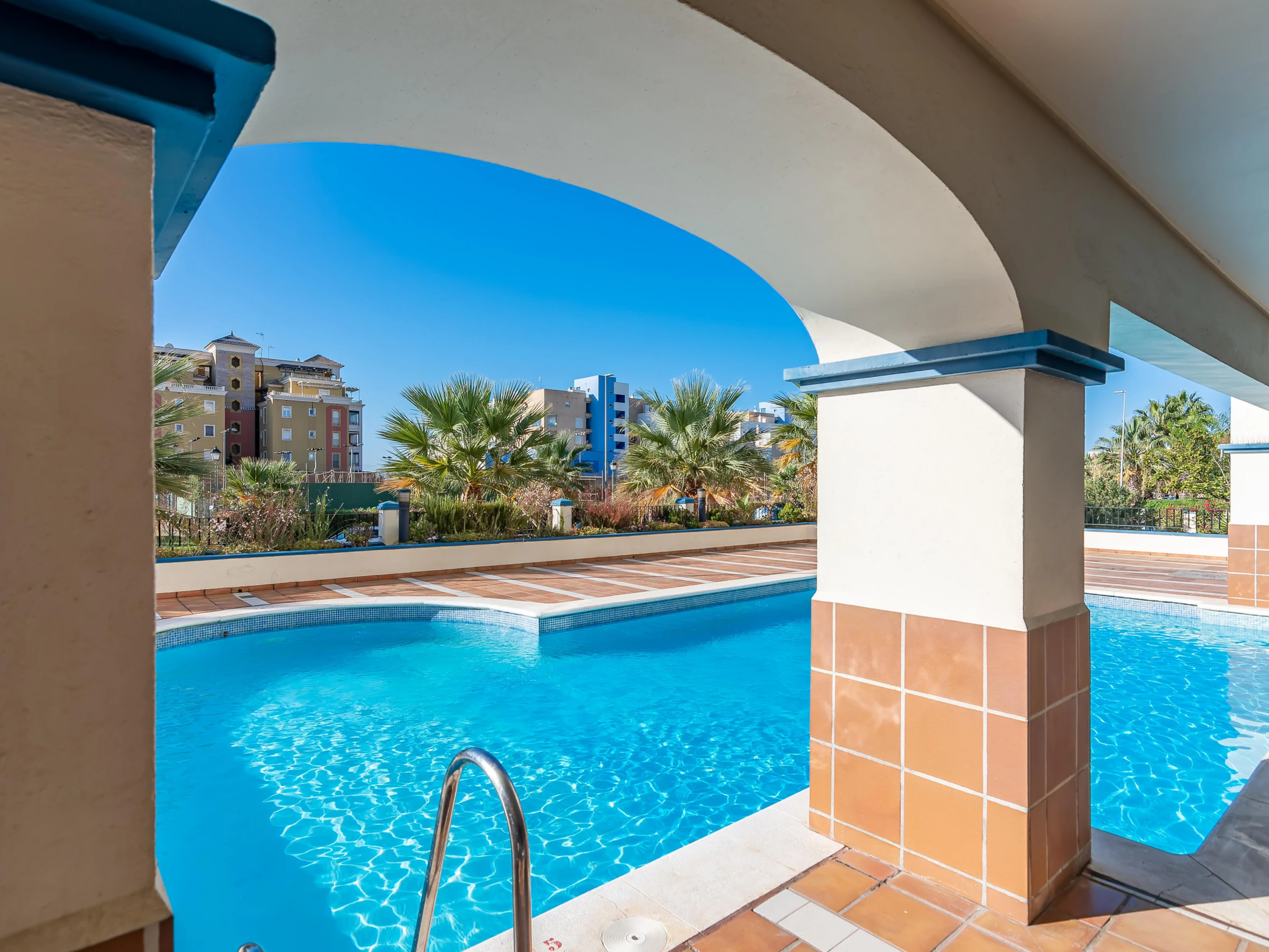Elle dispose de ascenseur, mobilier de jardin, clôture, 35 m² de terrasse, lave-linge, sèche-linge, fer à repasser, accès internet (wifi), sèche-cheveux, balcon, chauffage pompe à chaleur, climatisation dans tout le logement, piscine collective, parking couvert même bâtiment, moustiquaires dans tout le logement, 1 Télévision.