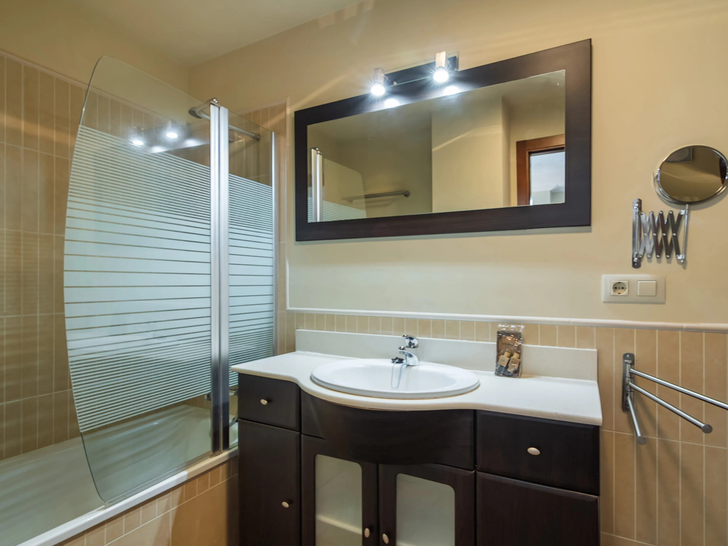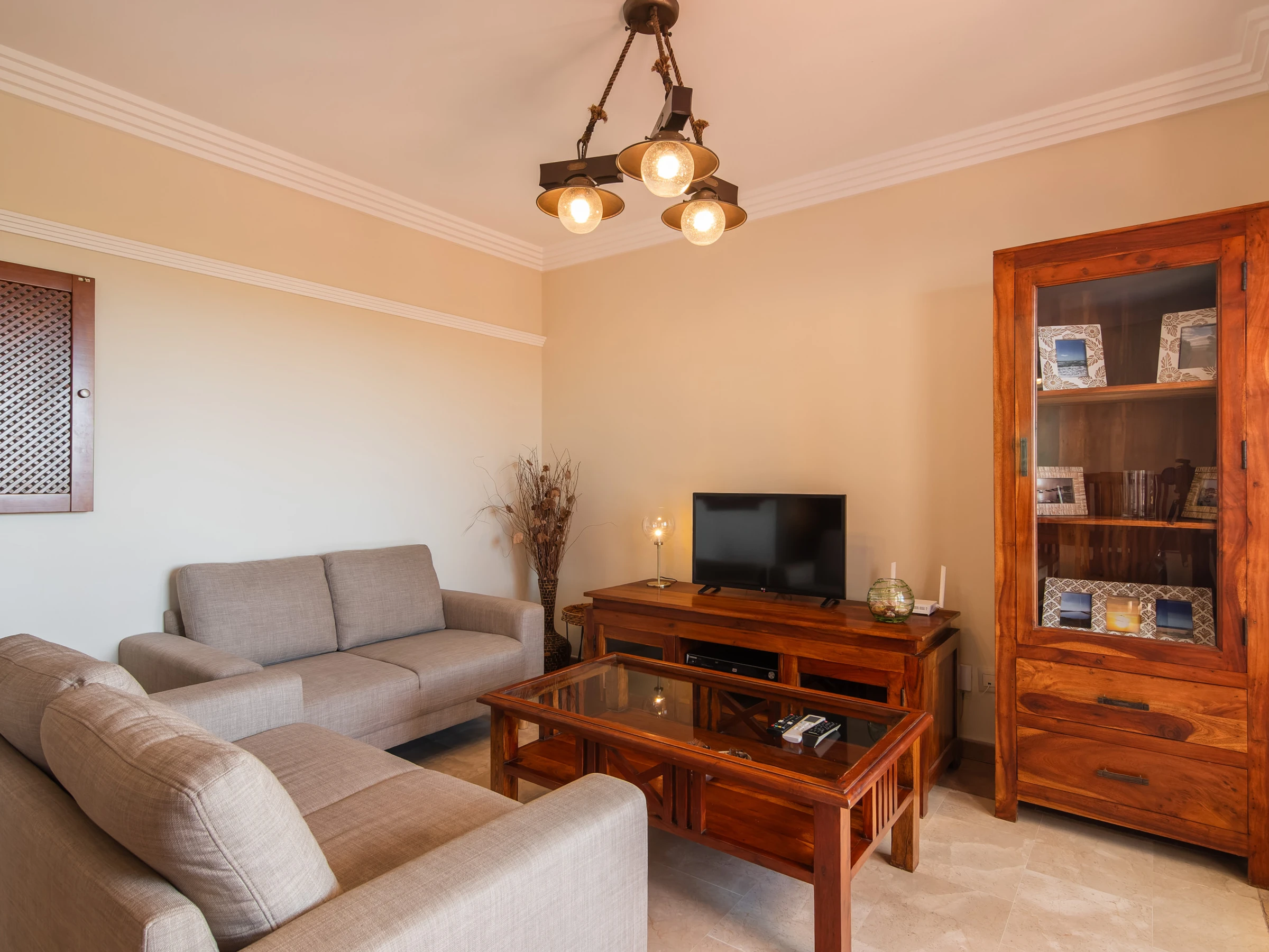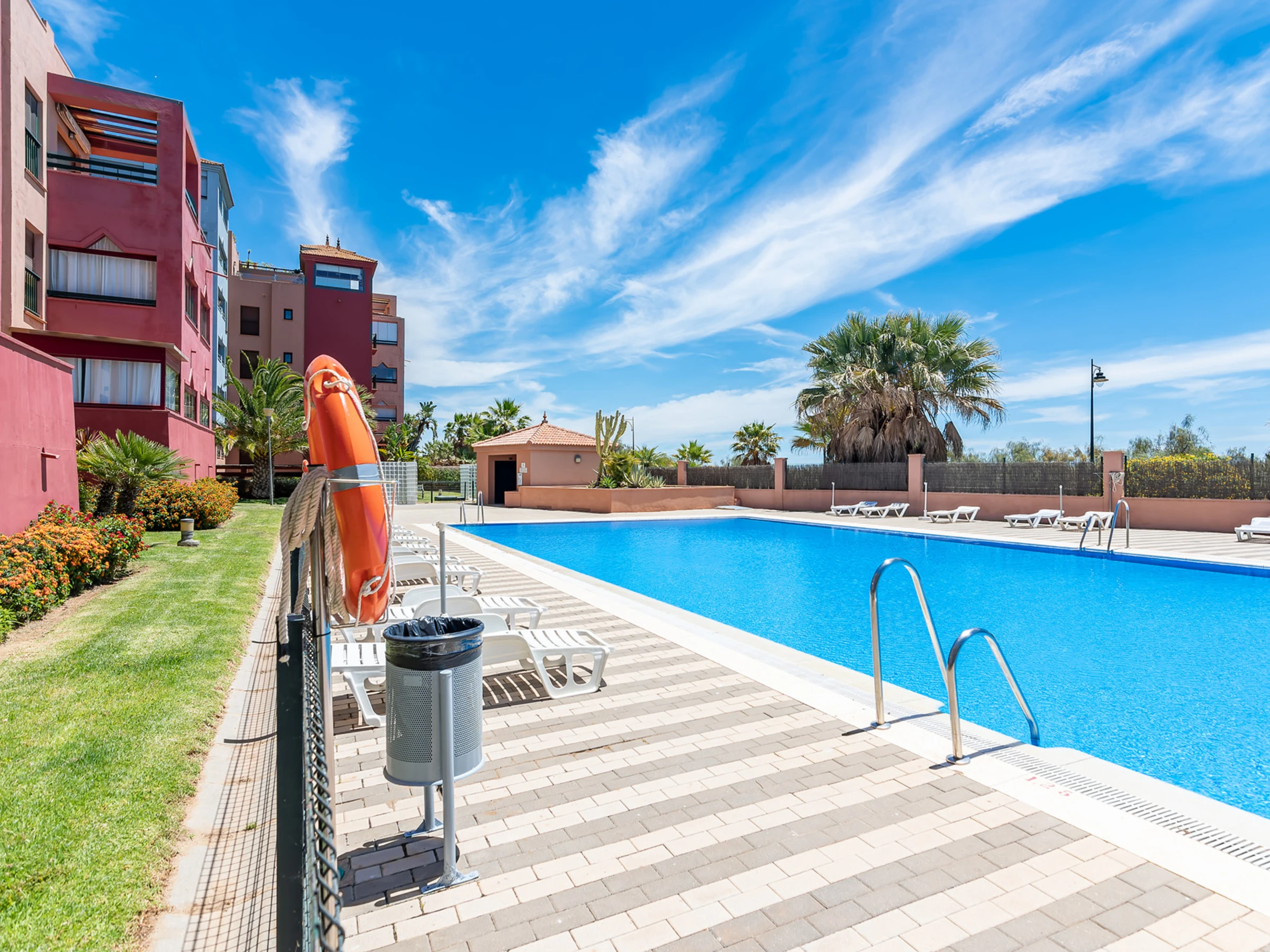 Elle dispose de ascenseur, jardin, mobilier de jardin, clôture, 25 m² de terrasse, lave-linge, fer à repasser, accès internet (wifi), sèche-cheveux, chauffage pompe à chaleur, climatisation dans tout le logement, piscine collective+infantile, parking couvert même bâtiment, moustiquaires dans tout le logement, 2 Télévisions, DVD.