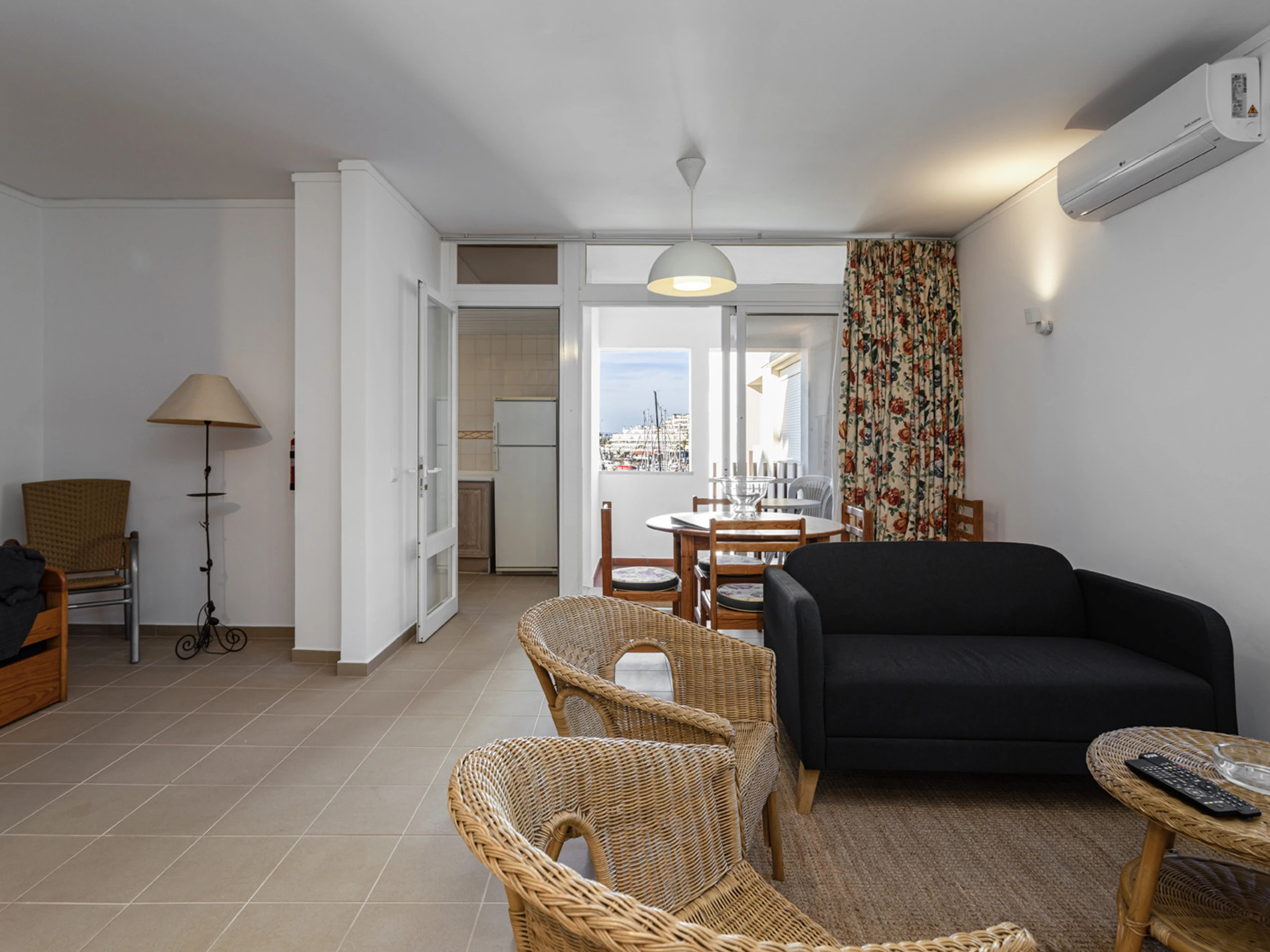 Cet appartement dispose d'une chambre, d'une salle de bains complète, d'une cuisine entièrement équipée et d'un salon avec un canapé convertible en 2 lits individuels (les lits sont joints, mais sur deux niveaux différents). Enfin, vous disposez d'un balcon avec une table et des chaises où vous pourrez profiter de la vue sur la Marina de Vilamoura. Pour accéder à cet appartement, il faut prendre les escaliers, car il n'y a pas d'ascenseur.