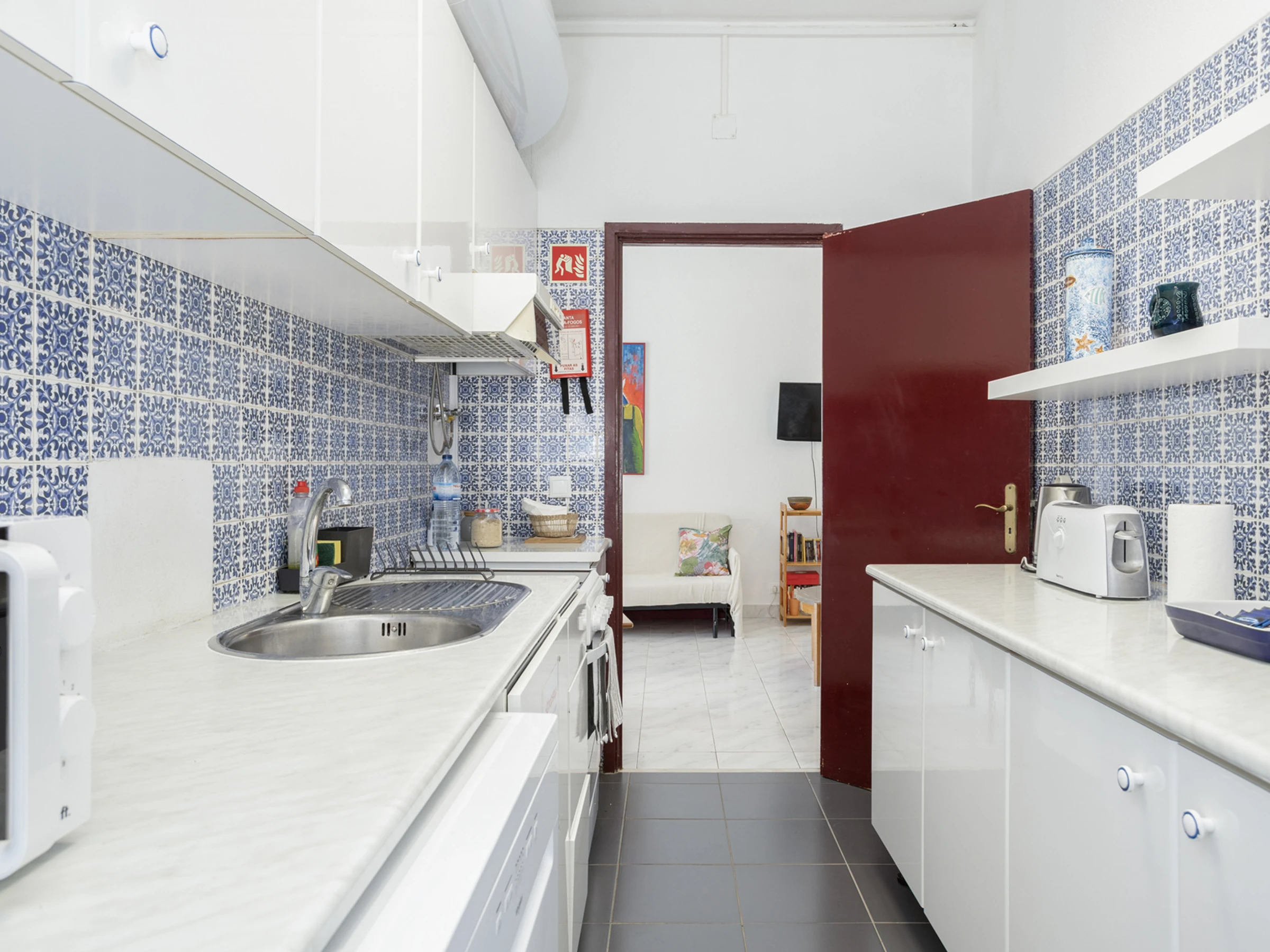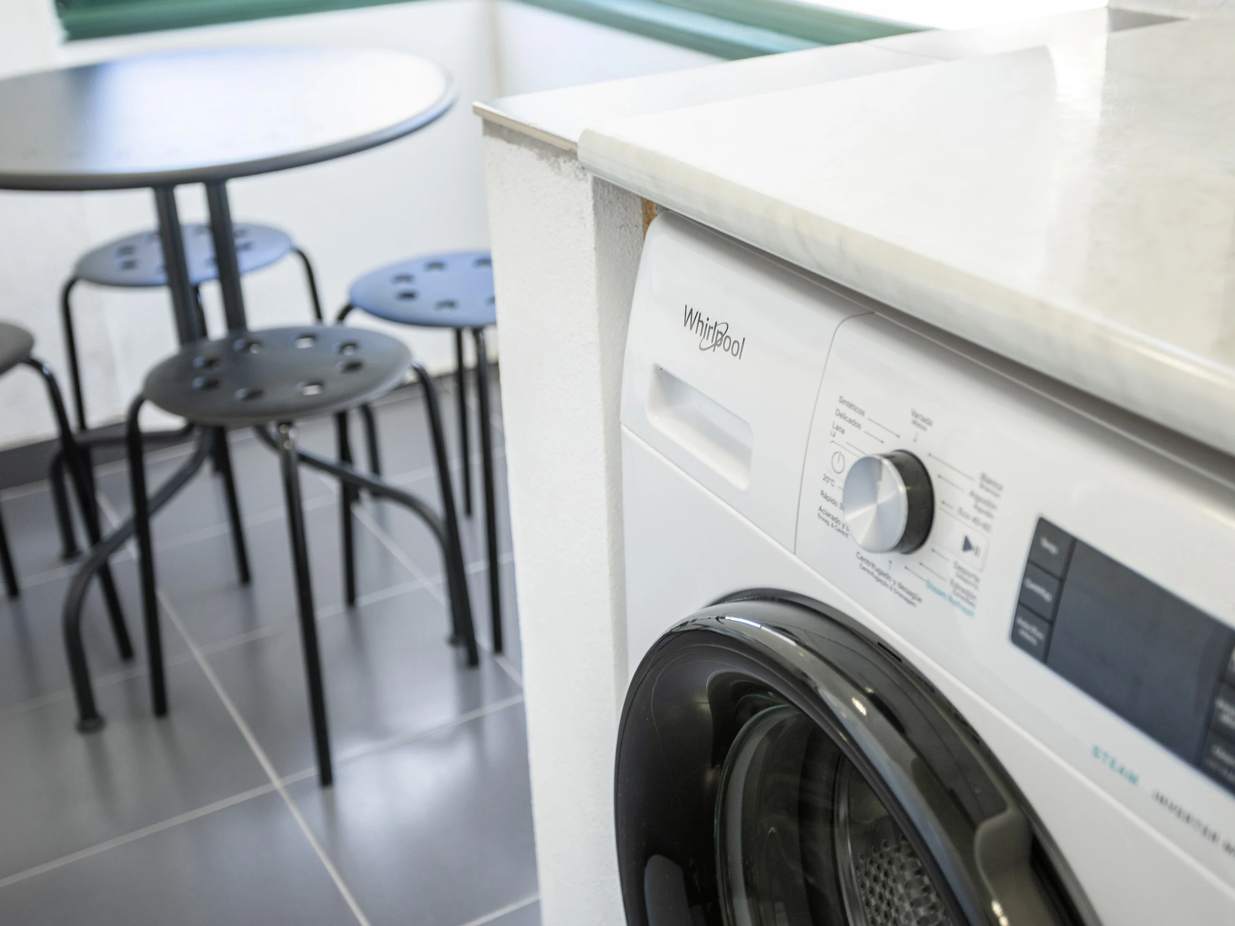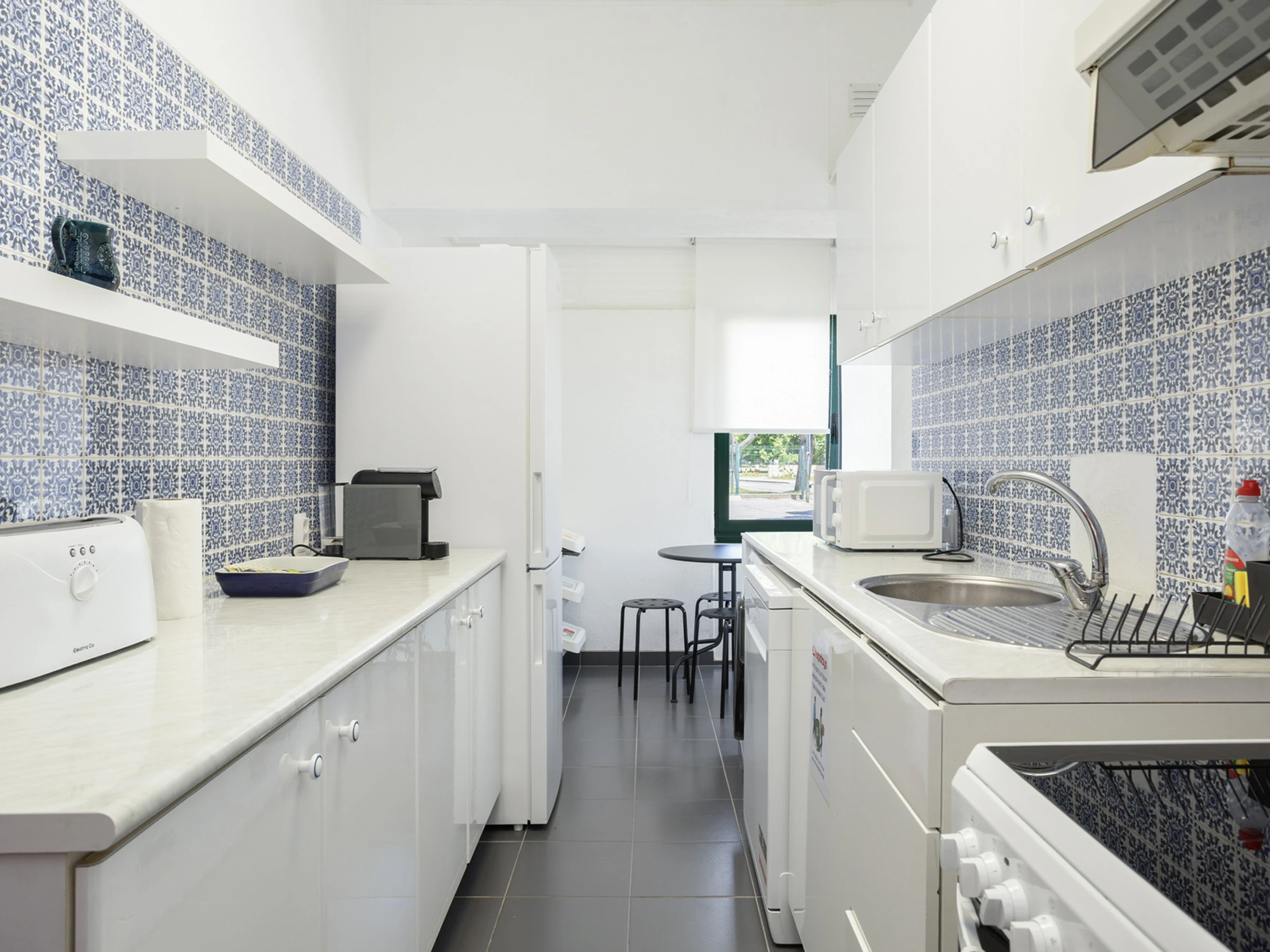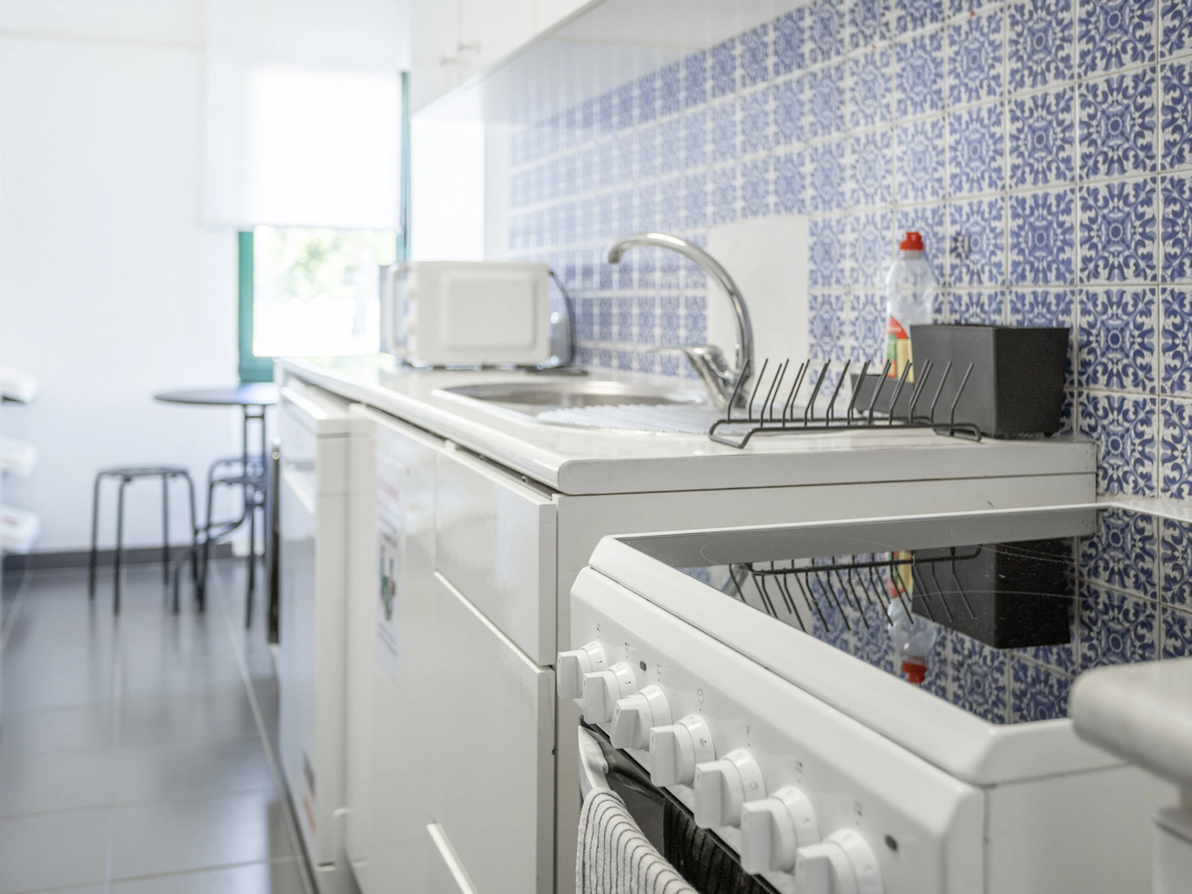Réfrigérateur, lave-vaisselle, congélateur, vaisselle, machine à café, four, bouilloire électrique, mini-friteuse, micro-ondes, presse-agrumes, grille-pain, machine à laver et sèche-cheveux.