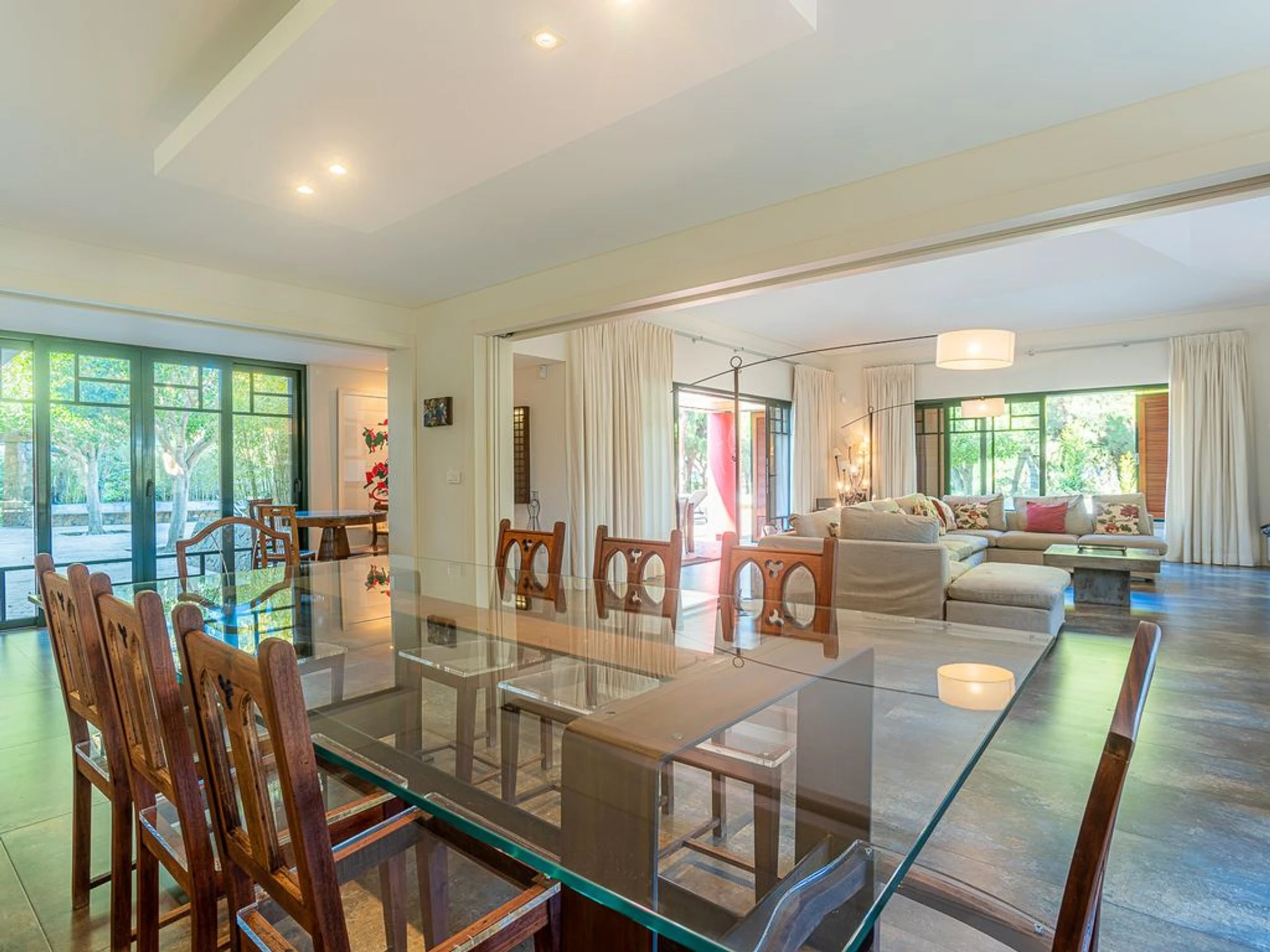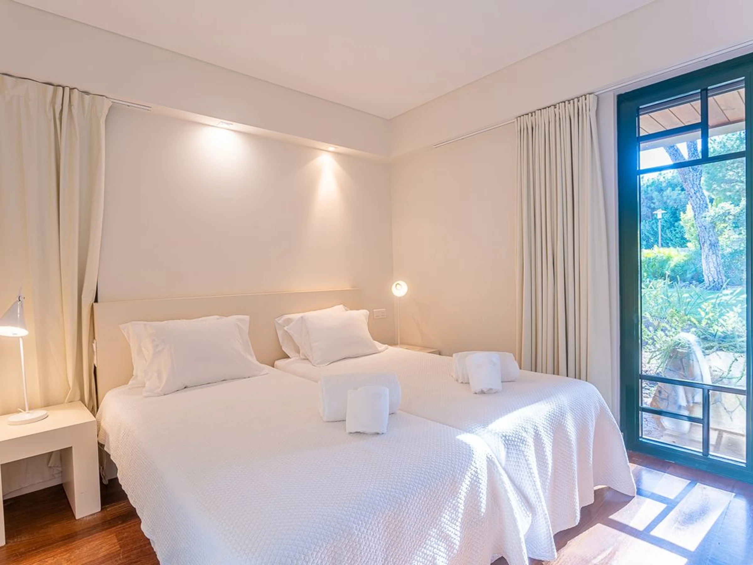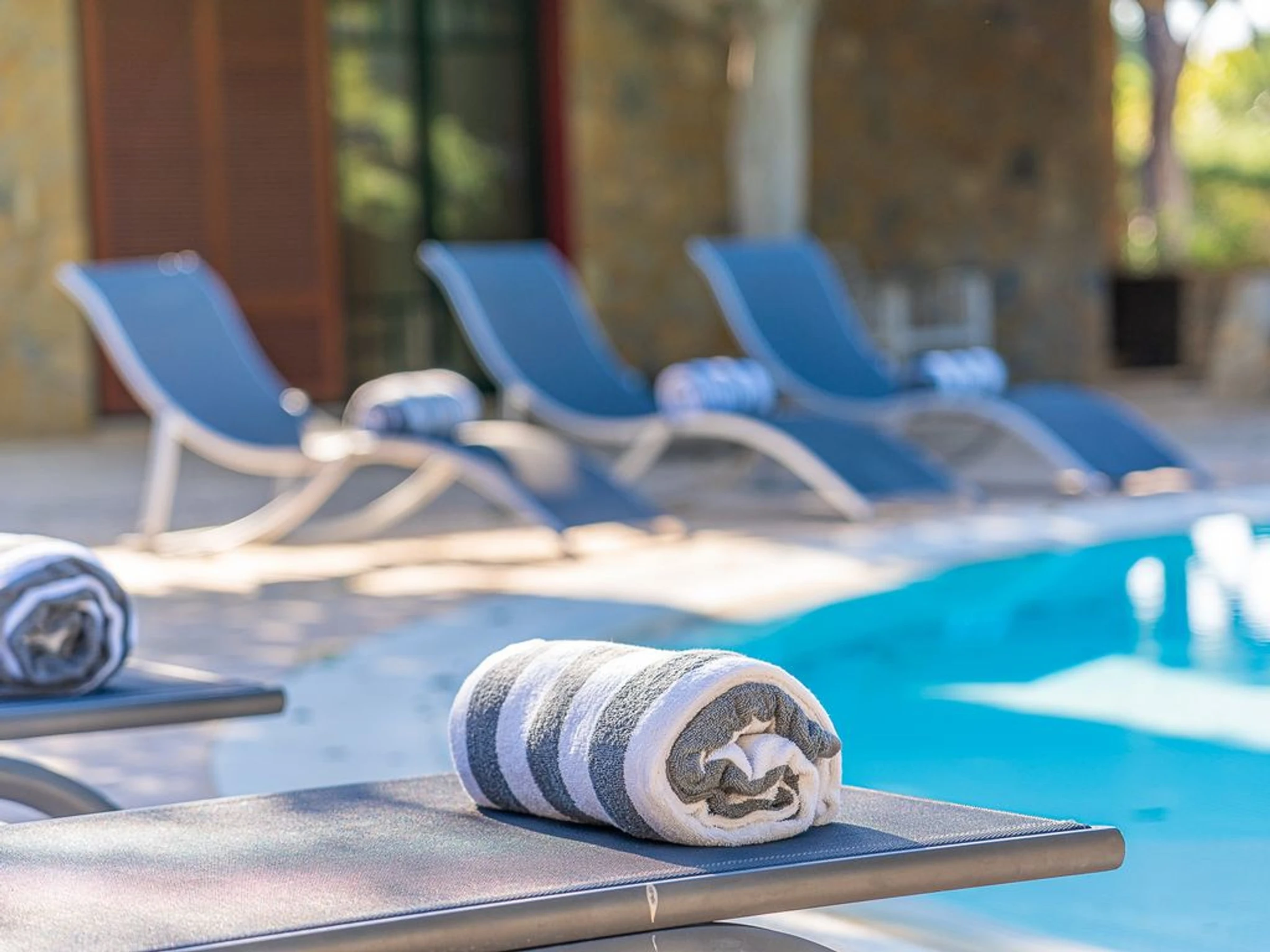 Elle dispose de lave-linge, sèche-linge, barbecue, cheminée, fer à repasser, coffre-fort, accès internet, balcon, chauffage central, climatisation, piscine collective, piscine chauffée privée, 1 Télévision.