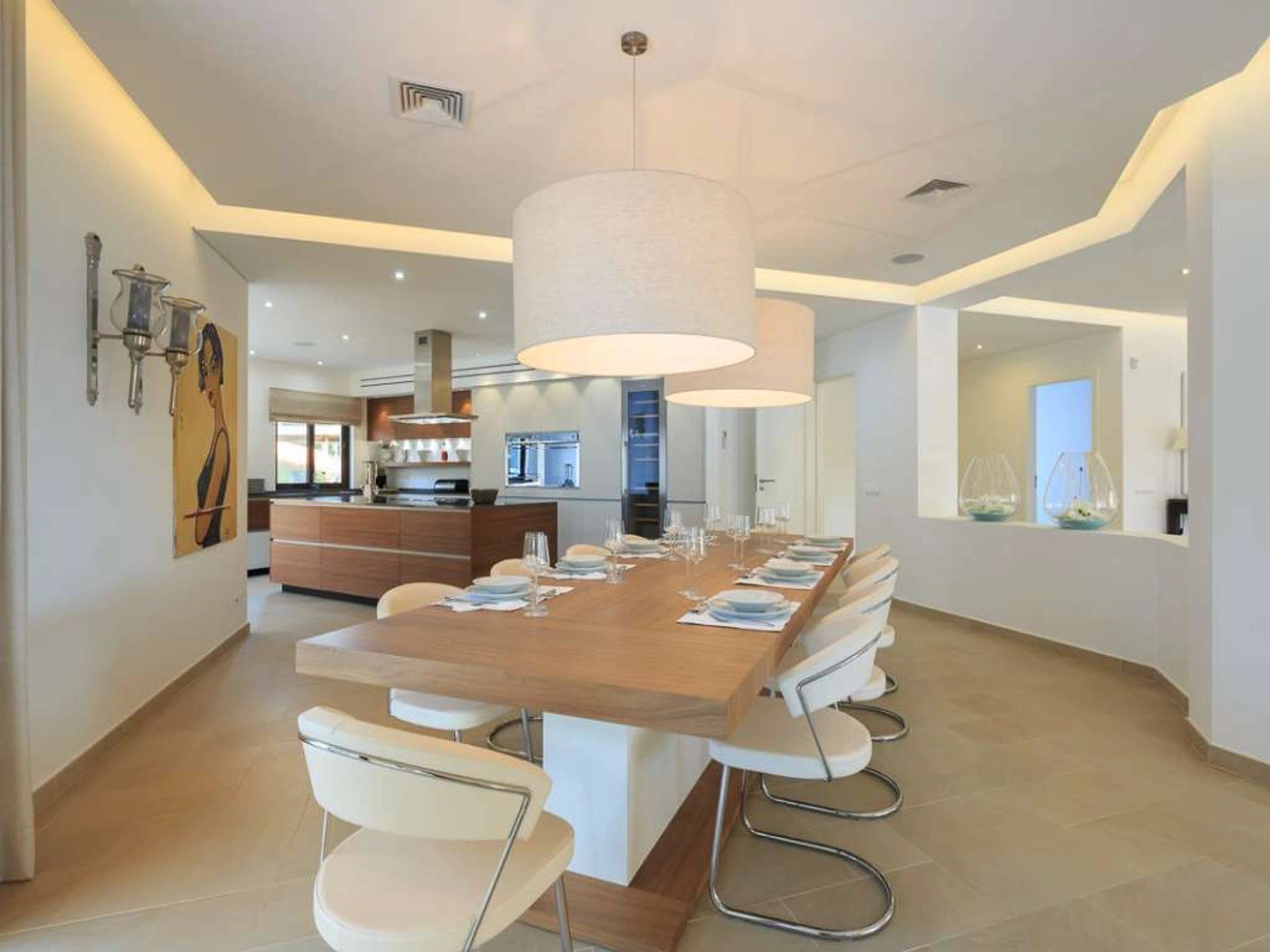 Elle dispose de lave-linge, sèche-linge, barbecue, fer à repasser, coffre-fort, accès internet, climatisation, piscine collective, piscine chauffée privée, 1 Télévision.