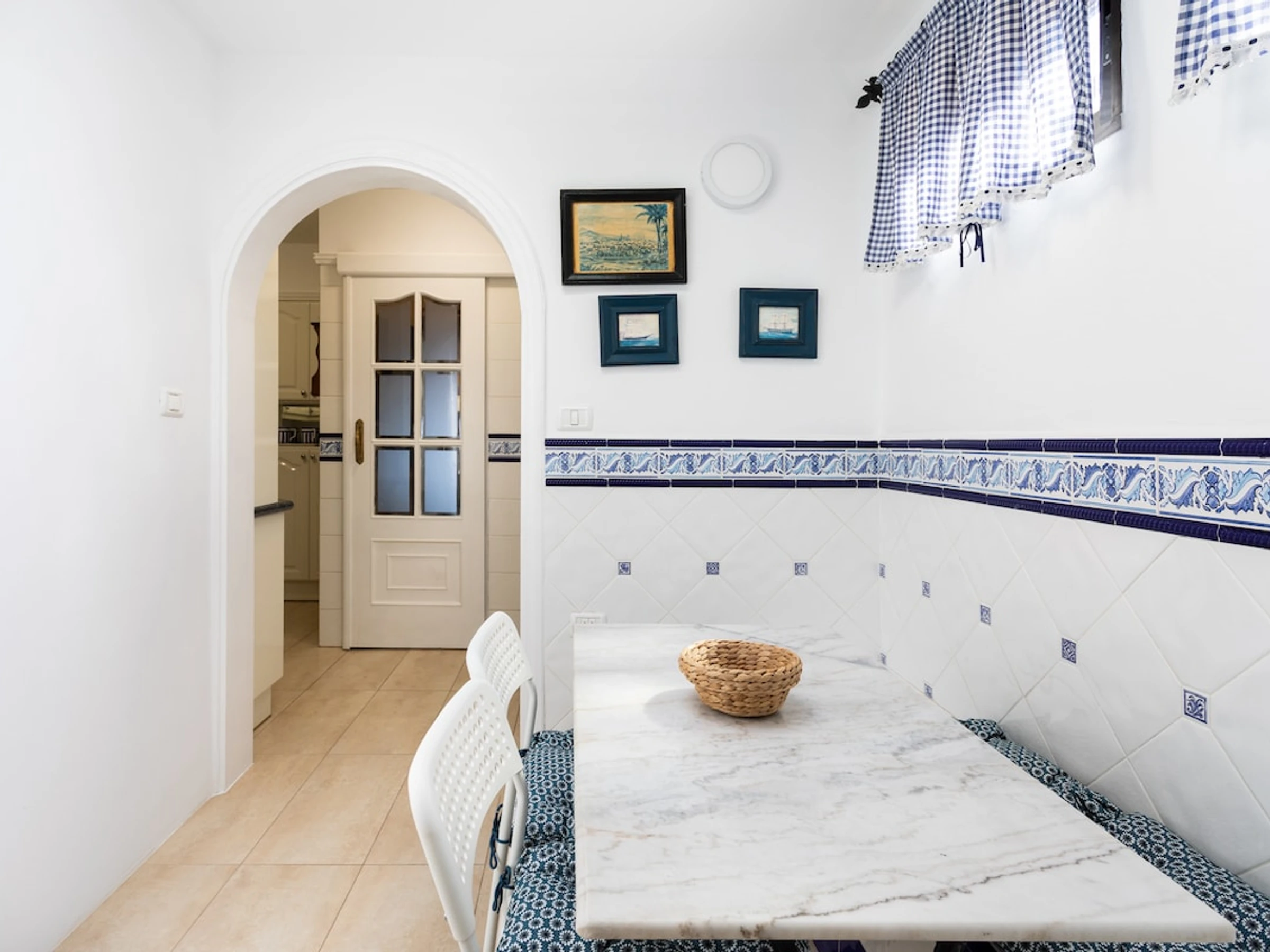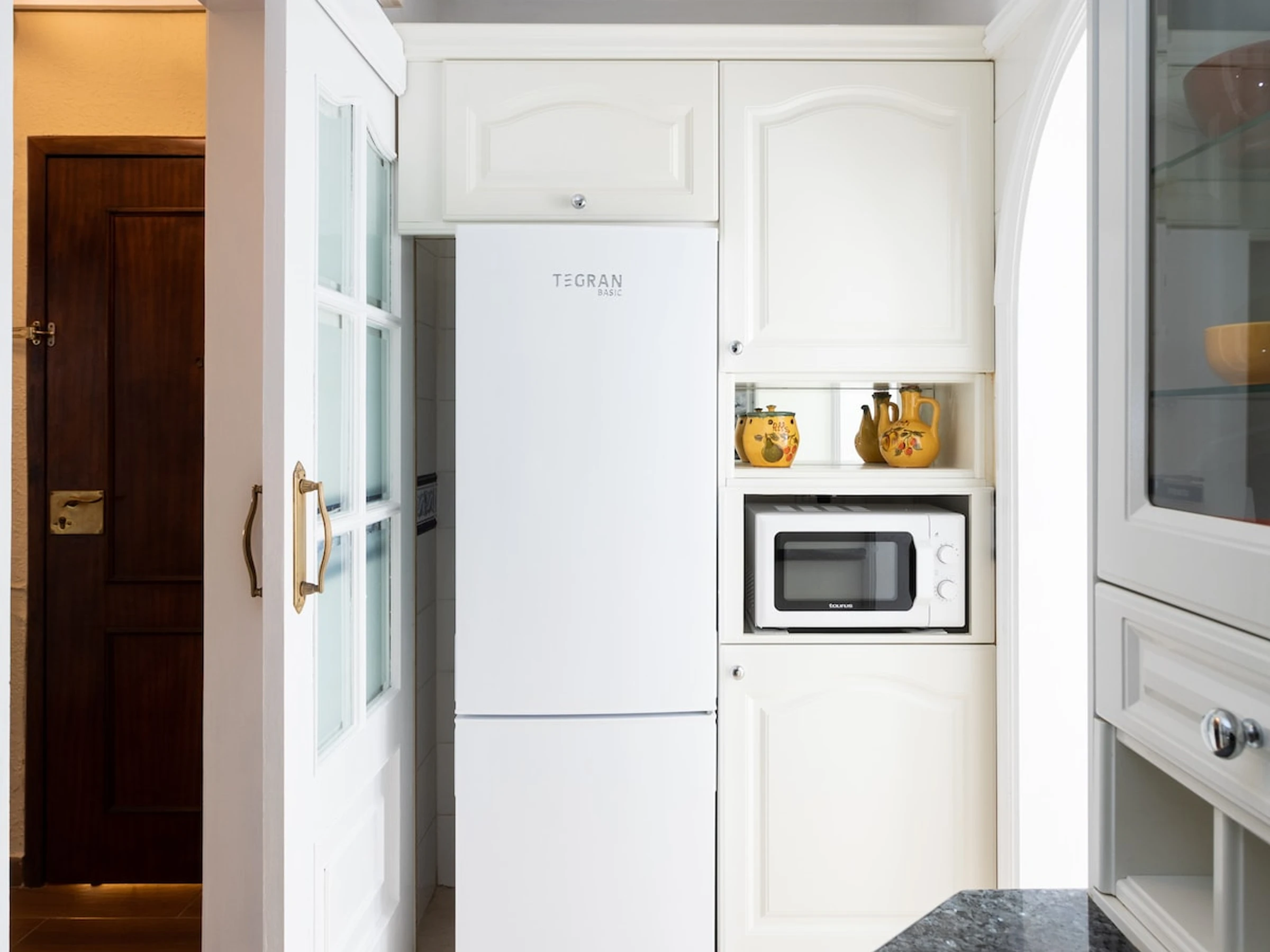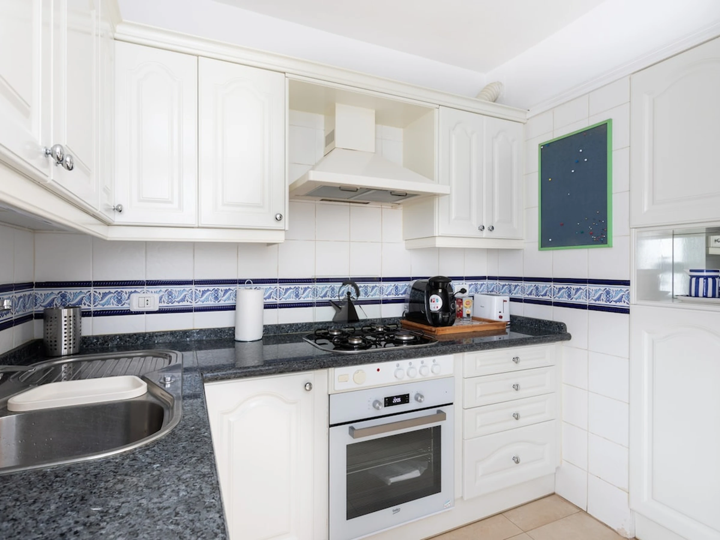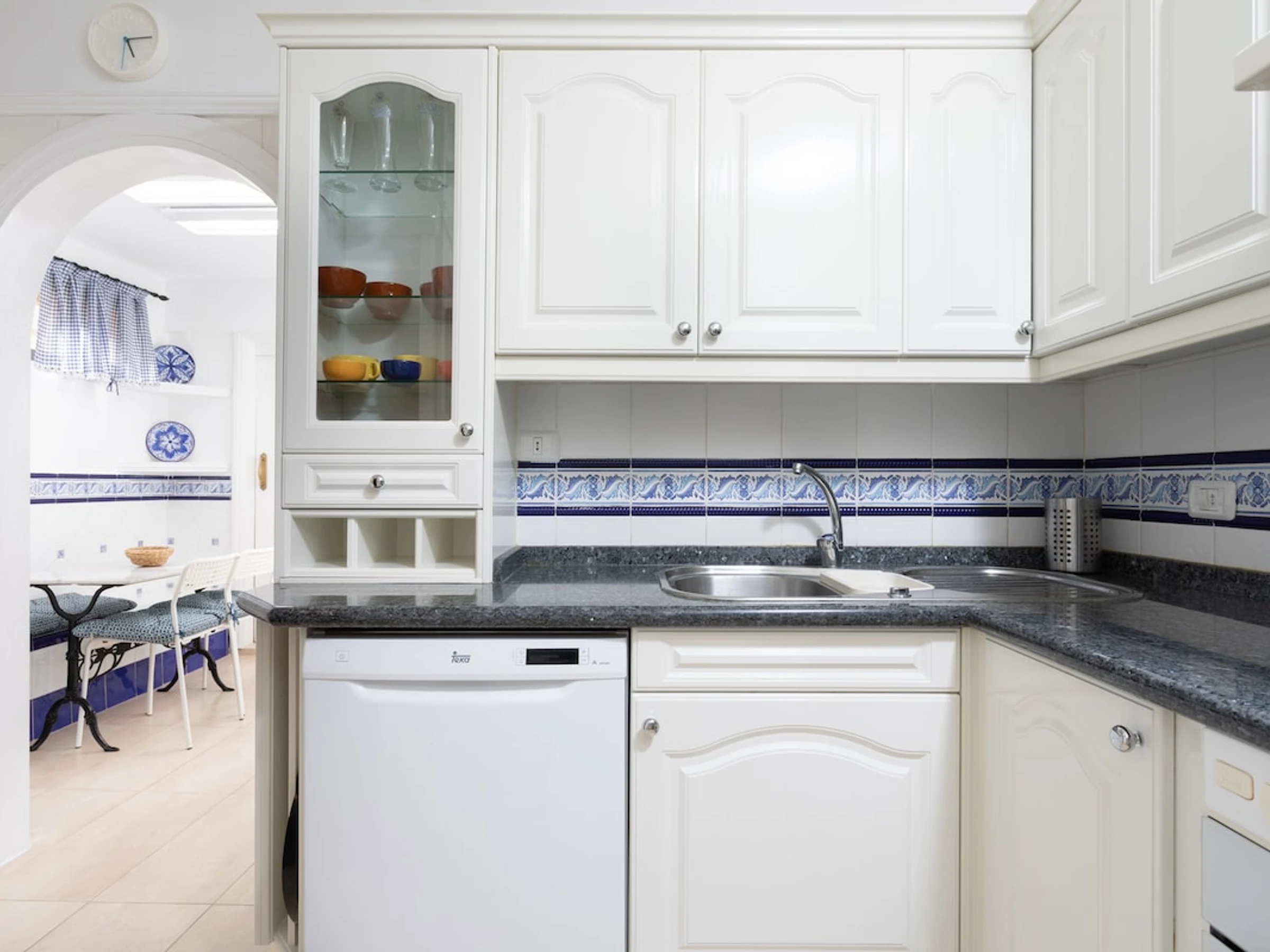 La cuisine, est équipée avec micro-ondes, four, lave-vaisselle, ustensiles/cuisine et cafetière.