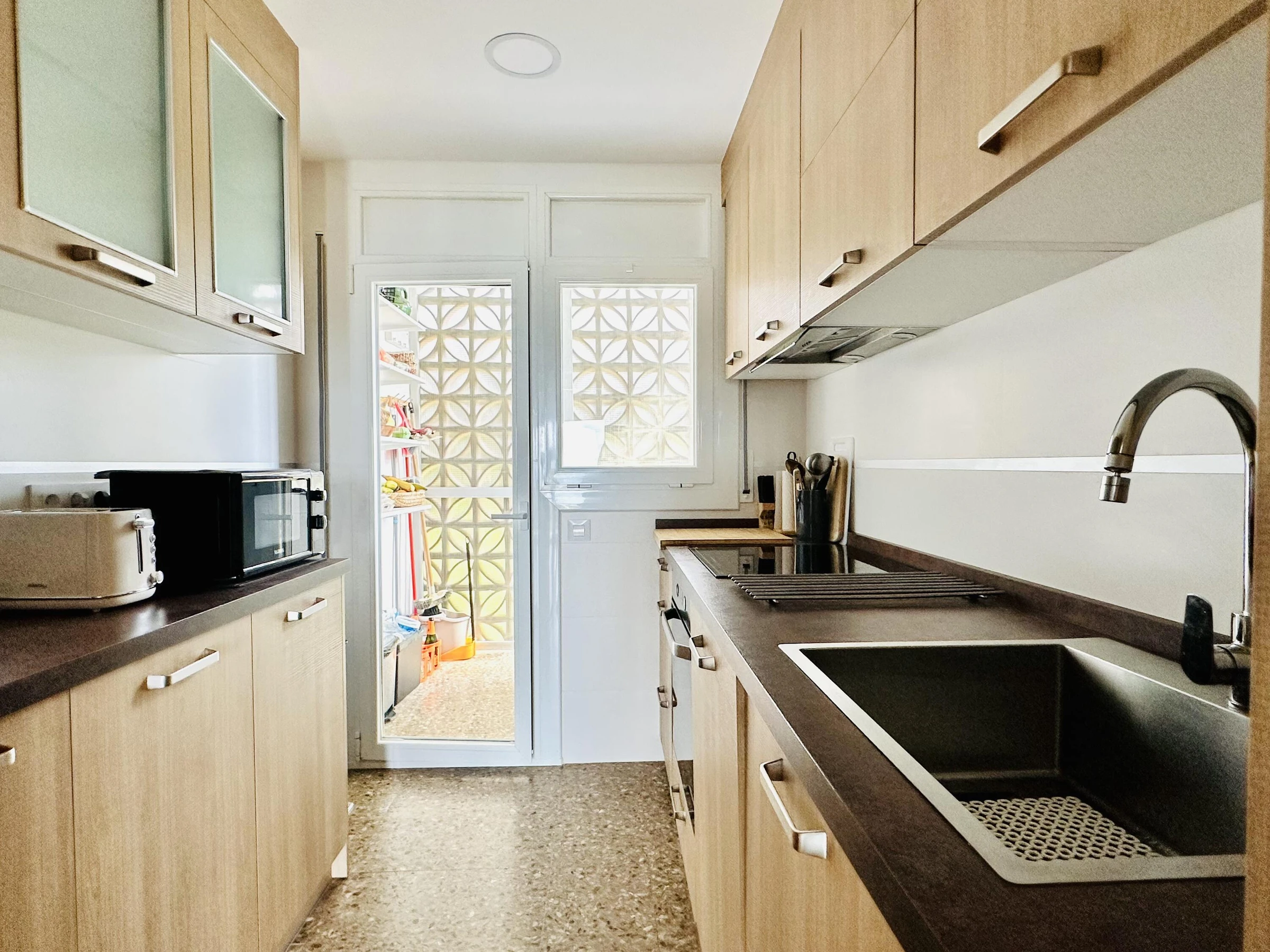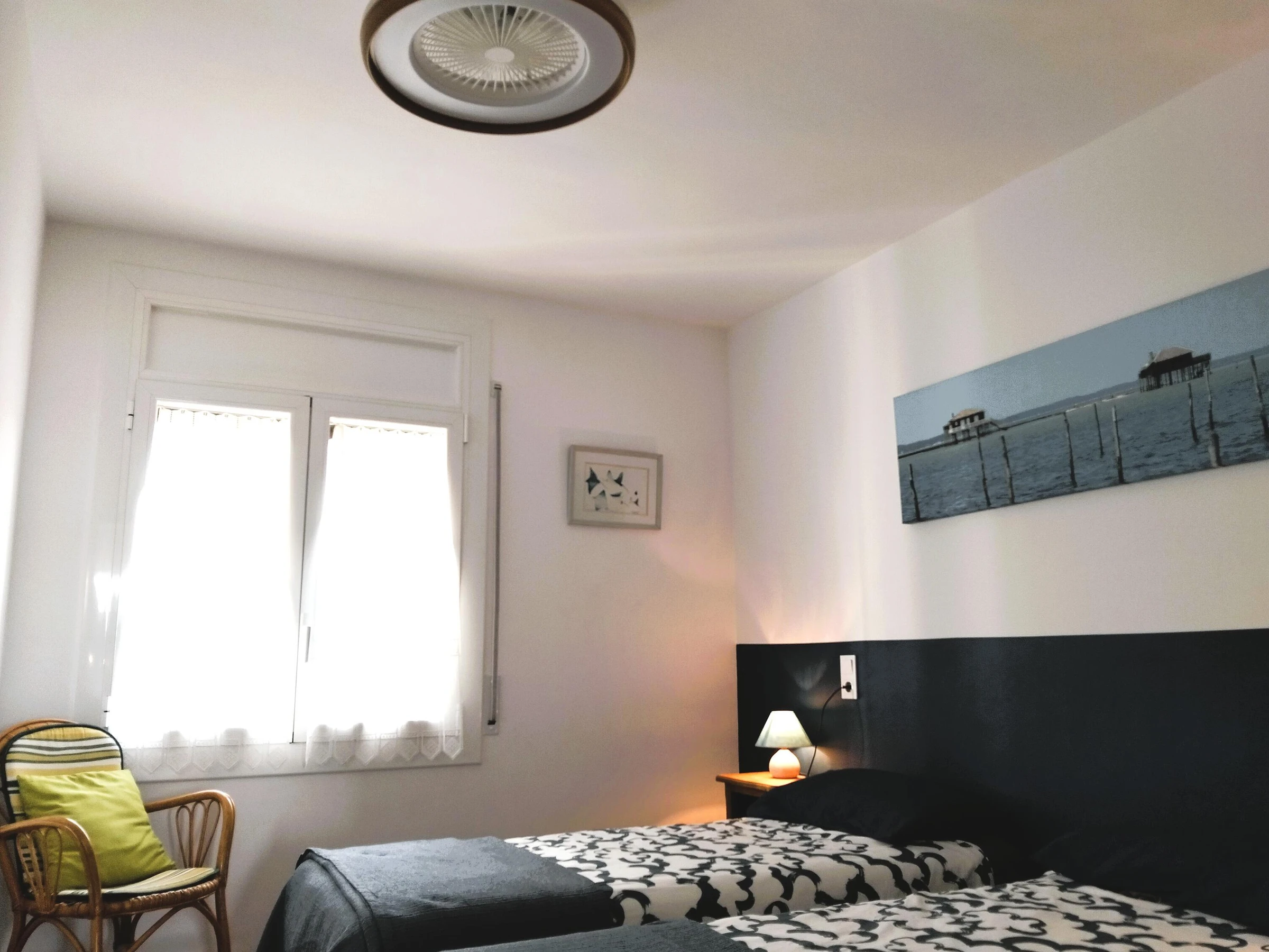 Découvrez une escapade méditerranéenne dans ce spacieux appartement pouvant accueillir jusqu’à 4 personnes, idéalement situé dans le quartier prisé de Roses, directement face à la mer. Soigneusement aménagé pour garantir un séjour inoubliable, il est parfait pour les familles ou les groupes d’amis en quête de confort, d’espace et d’un emplacement privilégié. Caractéristiques du logement : Chambres : deux chambres bien équipées, l’une avec un lit double et l’autre avec deux lits simples, dont l’un avec ventilateur de plafond, permettant d’accueillir confortablement jusqu’à 4 personnes. Salle de bain : une salle de bain complète avec douche, conçue pour offrir détente et confort. Cuisine : entièrement équipée avec four, micro-ondes, cafetière, lave-linge et tout le nécessaire pour cuisiner et profiter à votre rythme. Salon : espace lumineux avec accès à une grande terrasse ou un balcon, idéal pour se détendre en plein air tout en admirant l’environnement maritime. Terrasse : espace extérieur parfait pour les petits-déjeuners au soleil, les dîners au coucher du soleil ou simplement profiter de l’air méditerranéen face à la mer. Emplacement : en front de mer, permettant de profiter du bruit des vagues et de la brise marine ; à deux pas de la plage, des services, des commerces et de la charmante promenade maritime de Roses. État : bien entretenu, fonctionnel et pensé pour que vous vous sentiez comme chez vous dès le premier instant. Règles de la maison : logement non-fumeur, garantissant un environnement frais et agréable pour tous les hôtes. Pourquoi vous allez l’adorer : Cet appartement allie espace, emplacement exceptionnel en bord de mer et confort absolu, ce qui en fait un excellent choix pour ceux qui recherchent des vacances reposantes, avec la liberté de se déplacer, de profiter des environs et de retrouver le calme quand ils le souhaitent. Avec tous les équipements nécessaires et un cadre privilégié, votre séjour à Roses sera une expérience inoubliable. Il est interdit de fumer et les animaux ne sont pas admis dans la propriété.
