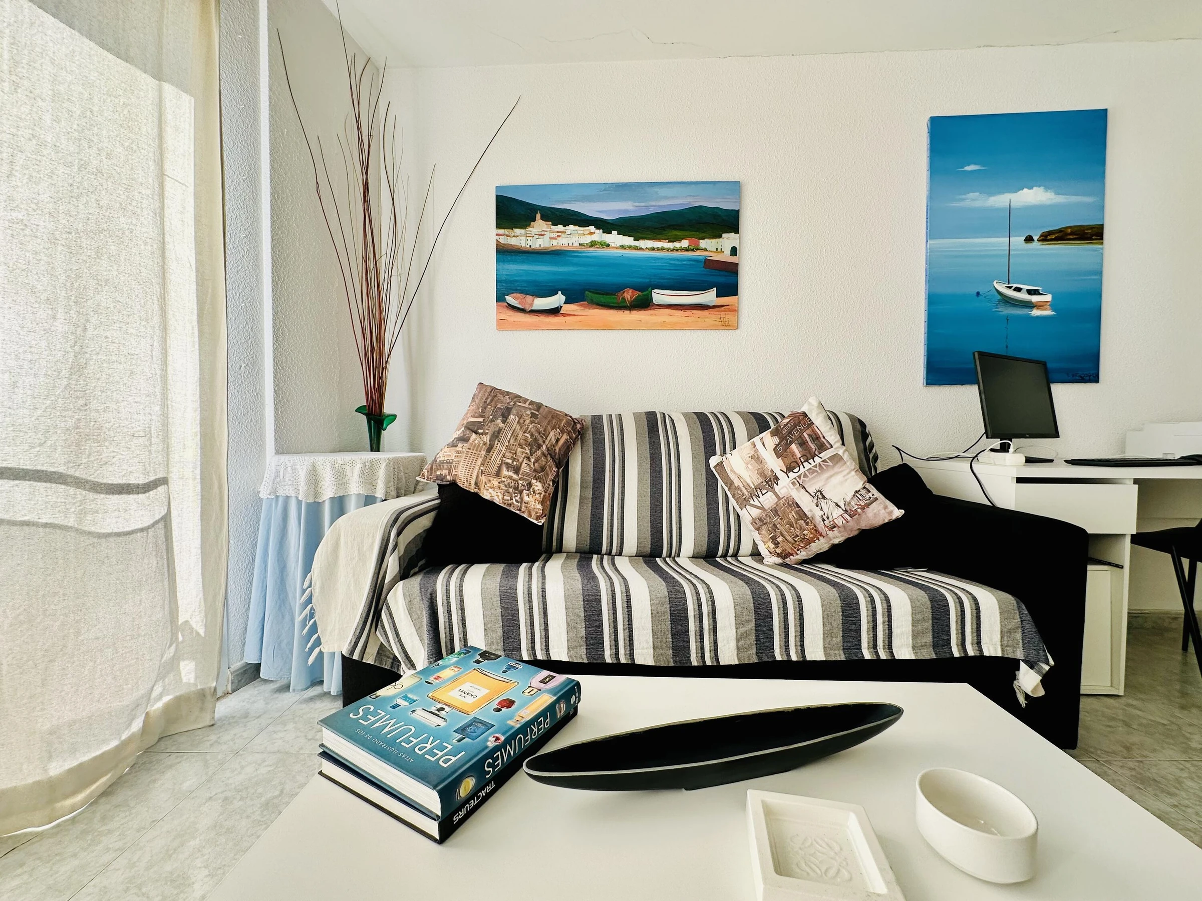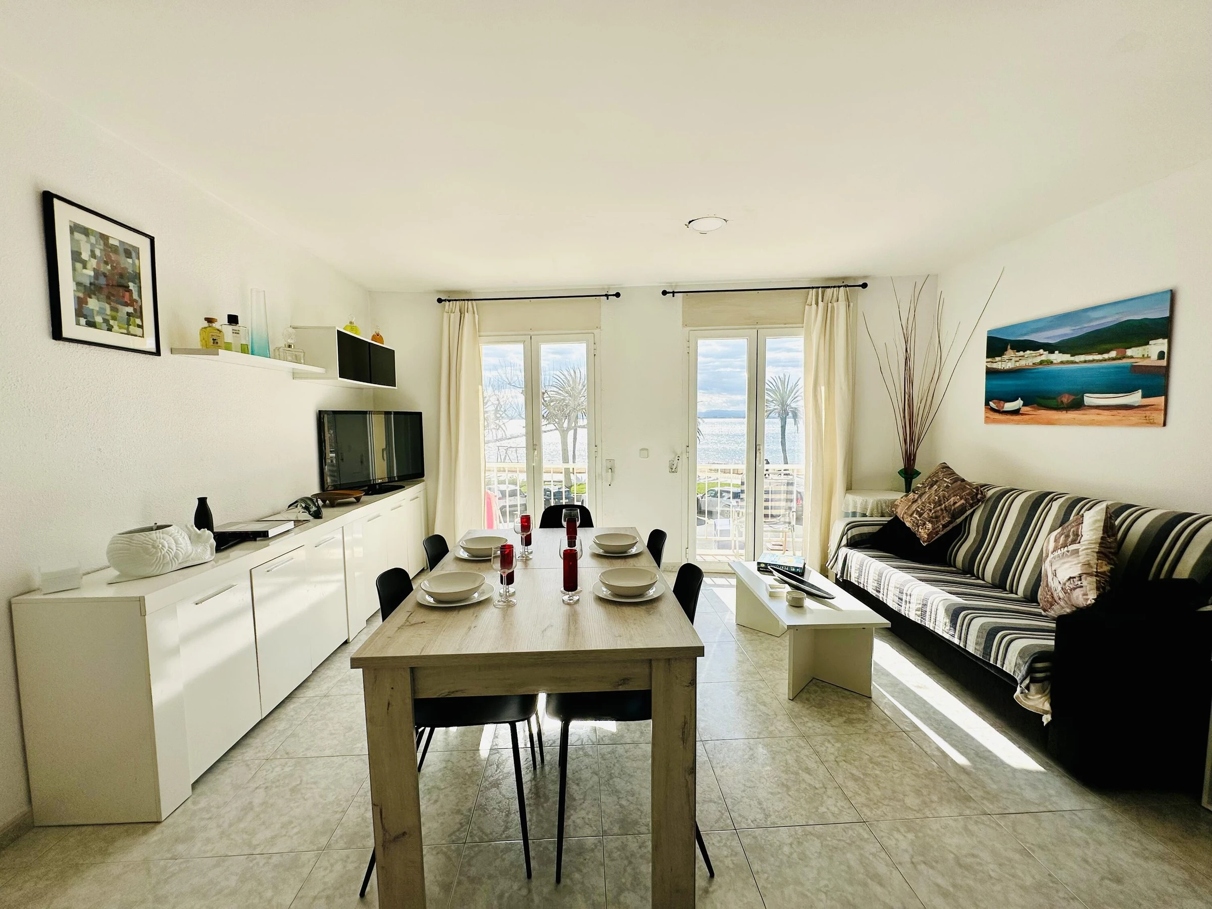 Profitez de vacances inoubliables dans cet agréable appartement en première ligne de mer à Roses, idéal pour jusqu’à 4 personnes. Sa situation privilégiée, à seulement quelques pas de la plage, en fait un choix parfait pour les couples ou les familles à la recherche de confort et d’un séjour au bord de la Méditerranée. Le logement dispose d’espaces lumineux et bien agencés, d’un salon confortable, d’unecuisine entièrement équipée et de chambres pensées pour garantir un repos optimal durant votre séjour. Il comprend également une terrasse privée, idéale pour se détendre au son de la mer, prendre le petit-déjeuner en plein air ou profiter des douces soirées d’été. Situé au centre de Roses, vous bénéficierez de tous les services à proximité : restaurants, commerces, promenade maritime et zones de loisirs. Son excellente localisation permet de laisser la voiture de côté et de profiter pleinement de l’environnement. Pour plus de confort, l’appartement dispose d’un parking, à proximité, un véritable atout, surtout en haute saison. Roses est une destination qui séduit tous les profils, avec ses plages de sable fin, ses criques aux eaux cristallines, ses sports nautiques, ses sentiers de randonnée et sa riche gastronomie locale. Cet appartement est le choix idéal pour des vacances reposantes et confortables face à la mer, et pour créer de merveilleux souvenirs sur la Costa Brava. Draps et serviettes de bain inclus.