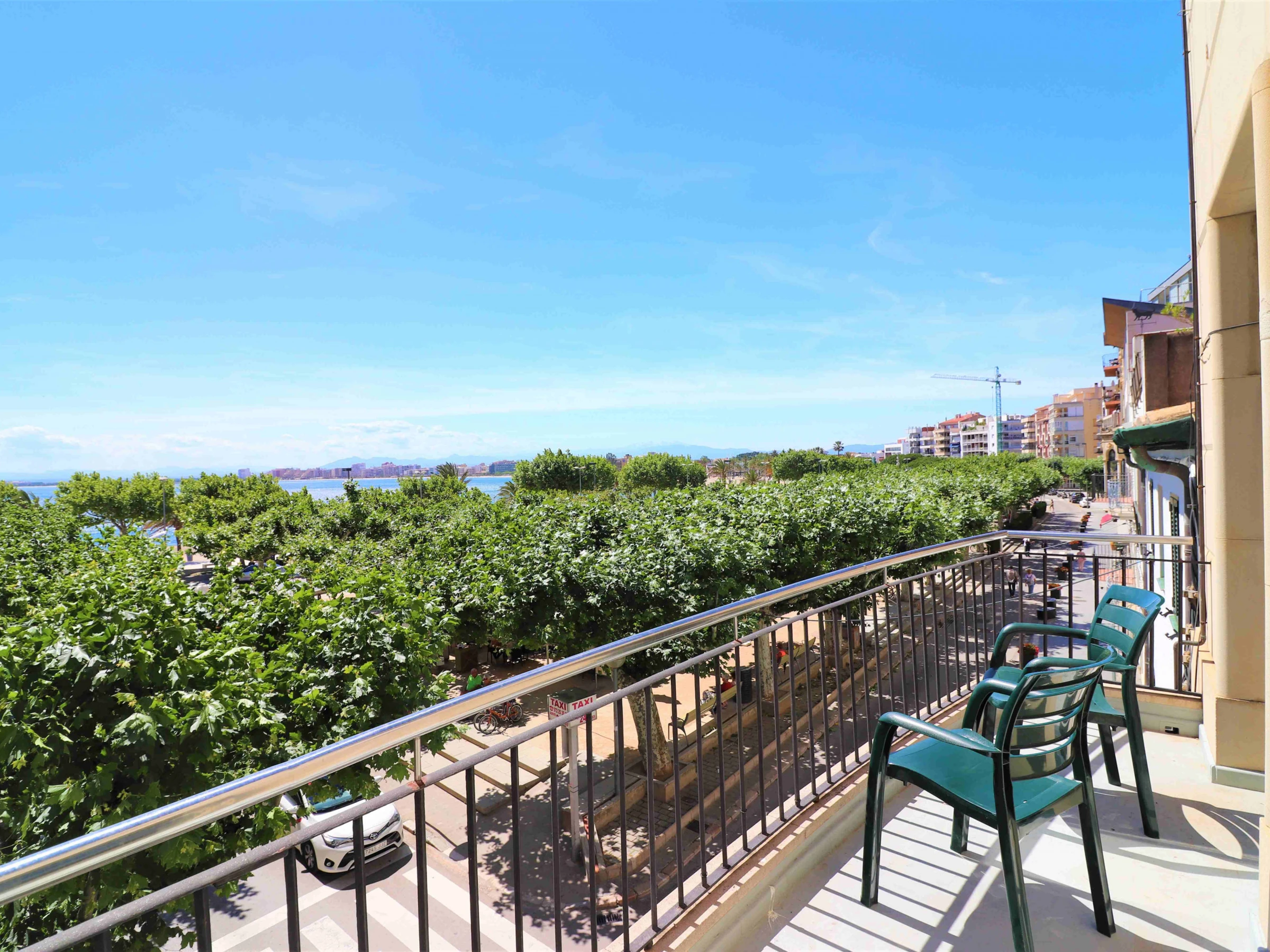Immo Barneda Roses. Magnifique Appartement entièrement rénové situé en première ligne de la plage de Roses. Il dispose de 3 chambres et peut accueillir 8 personnes. Situé au 2ème étage. Complètement rénové et très bien équipé, avec une décoration moderne et soignée. Il a une superficie de 110 m2 + 15 m2 de terrasse-galerie + 7 m2 de terrasse avant. Depuis l'appartement, on peut voir la mer, la plage et la Plaça Catalunya.