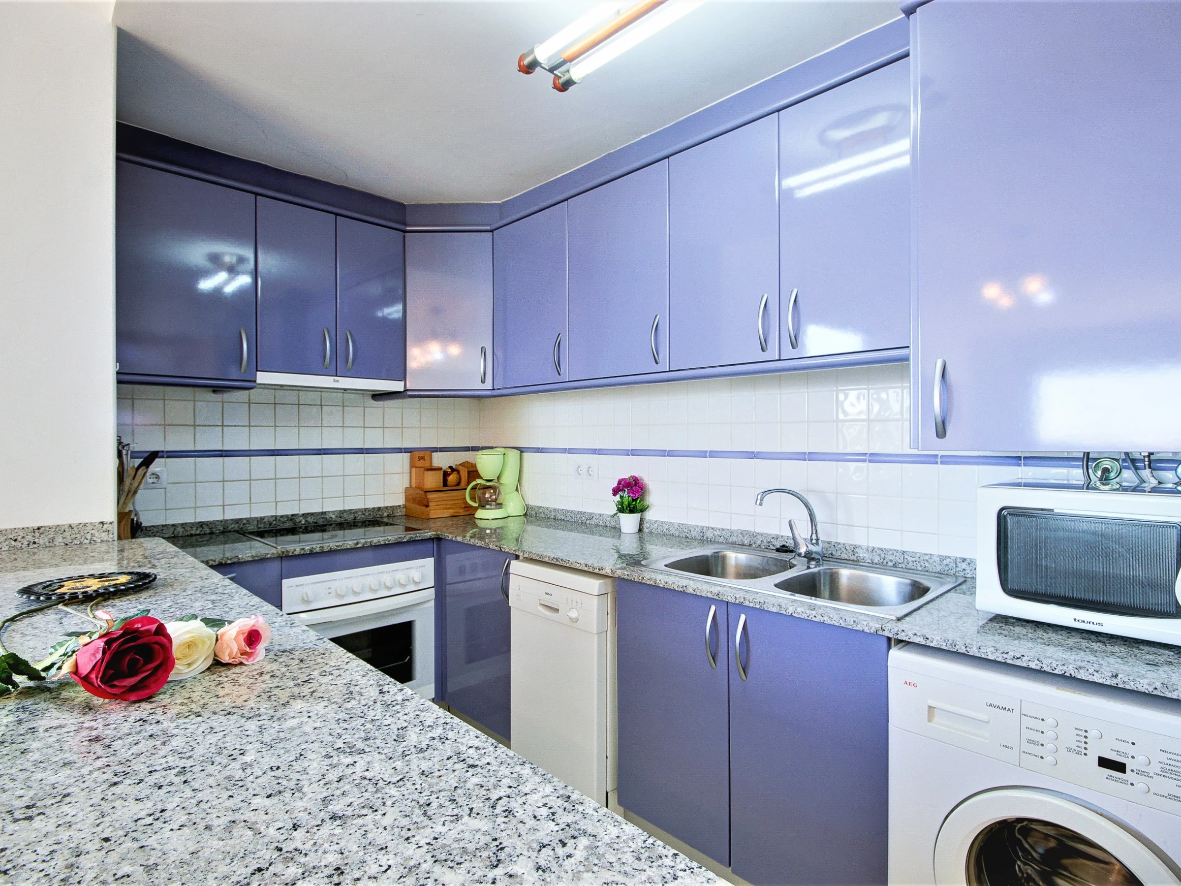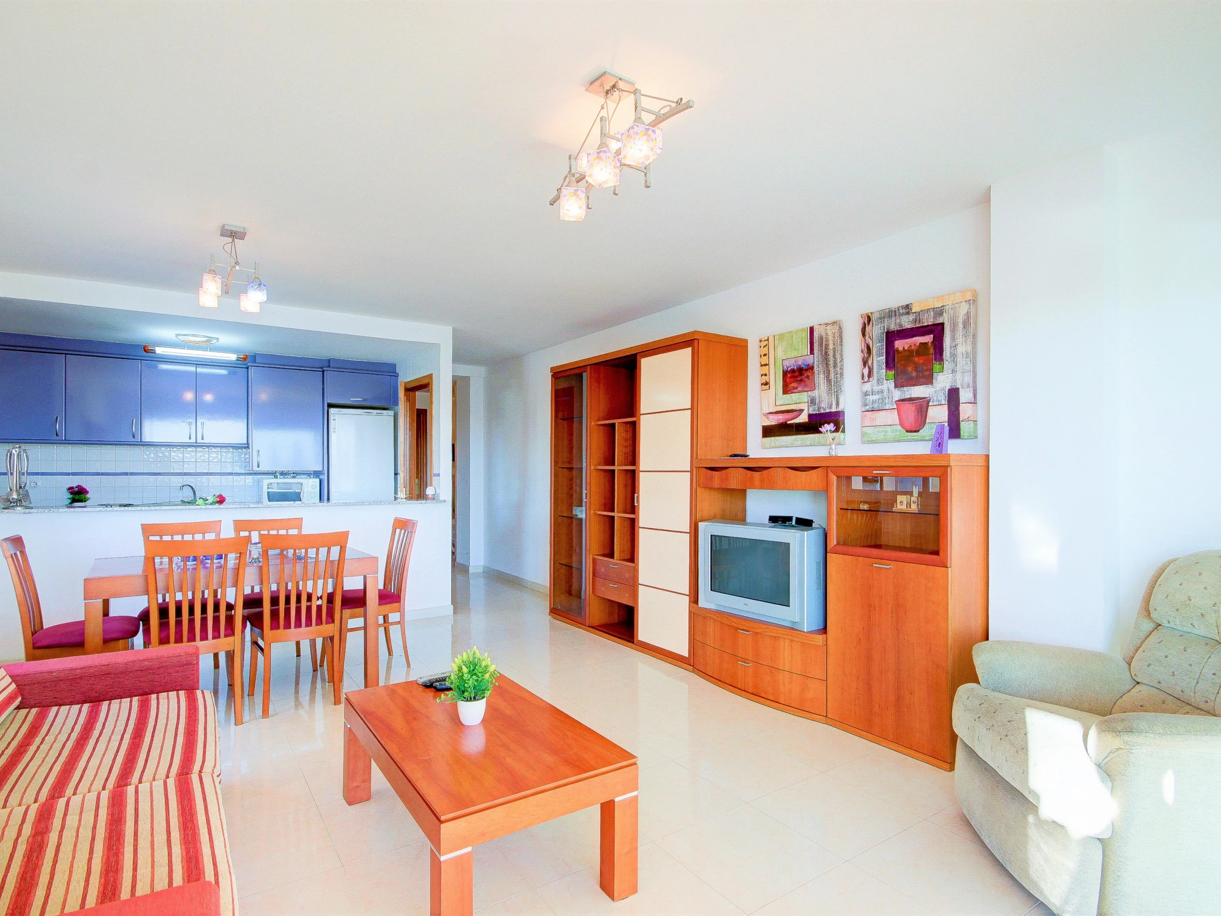 Ce confortable appartement de deux chambres de construction récente peut accueillir 4 personnes et a une superficie de 60 m² +25 m2. Les chambres sont belles et confortables. La première chambre est équipée d'un lit double de 1,50 et la seconde du même lit de 1,50. Le salon-salle à manger confortable et moderne dispose d'un canapé, de meubles de salon, d'une télévision par satellite et d'une table à manger avec des chaises. La cuisine ouverte est équipée d'une plaque vitrocéramique, réfrigérateur, micro-ondes, four, lave-linge, lave-vaisselle, vaisselle, couverts, ustensiles de cuisine, cafetière. Il a également un fer à repasser pour les vêtements. Il y a une salle de bain avec une baignoire. En outre, le logement est équipé des équipements suivants : ascenseur, piscine communautaire, parking couvert même bâtiment.