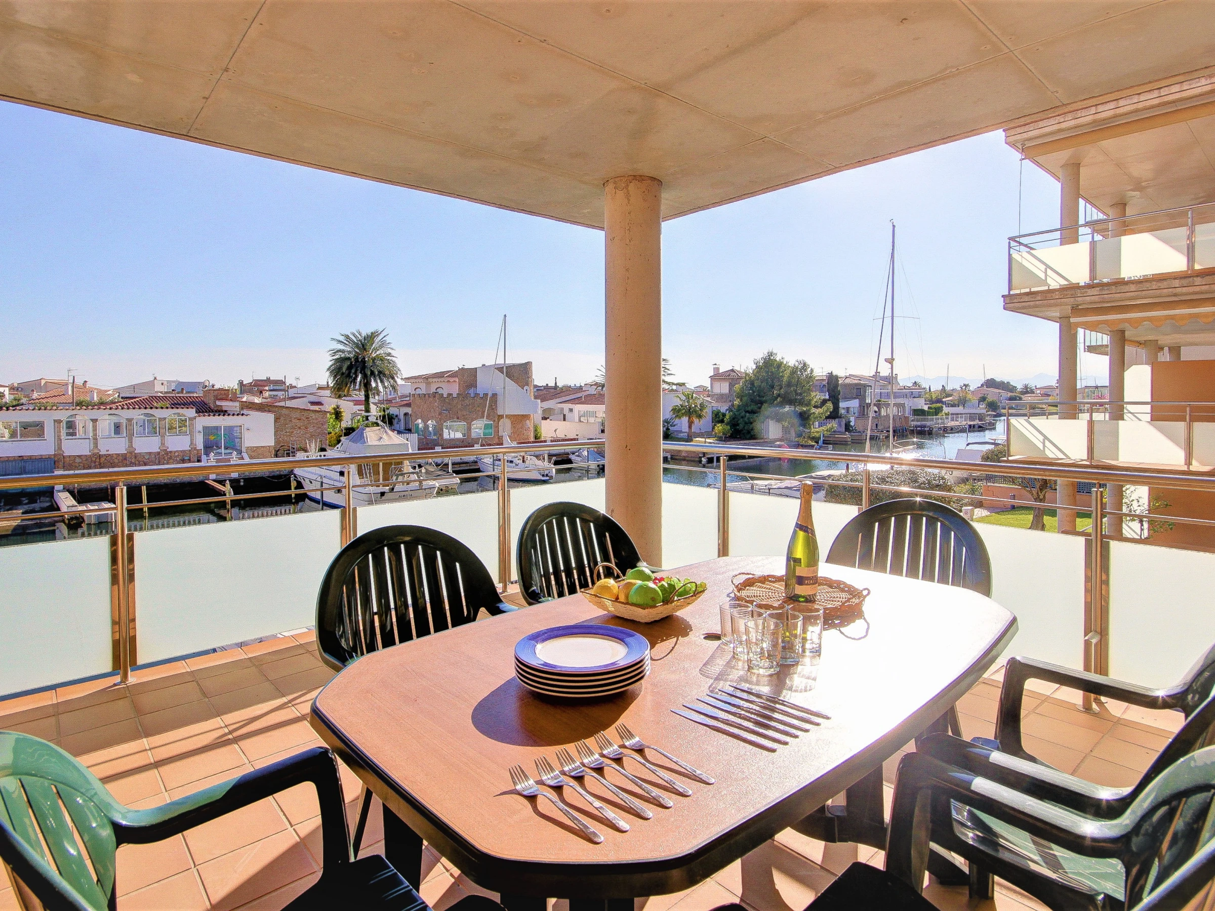 Immo Barneda Roses . Ce bel appartement avec vue sur la piscine et les canaux est situé à Rosas / Roses, Costa Brava, dans la province de Gérone, en Catalogne. Roses est située sur la côte nord du golfe de Roses, au sud du Cap de Creus.