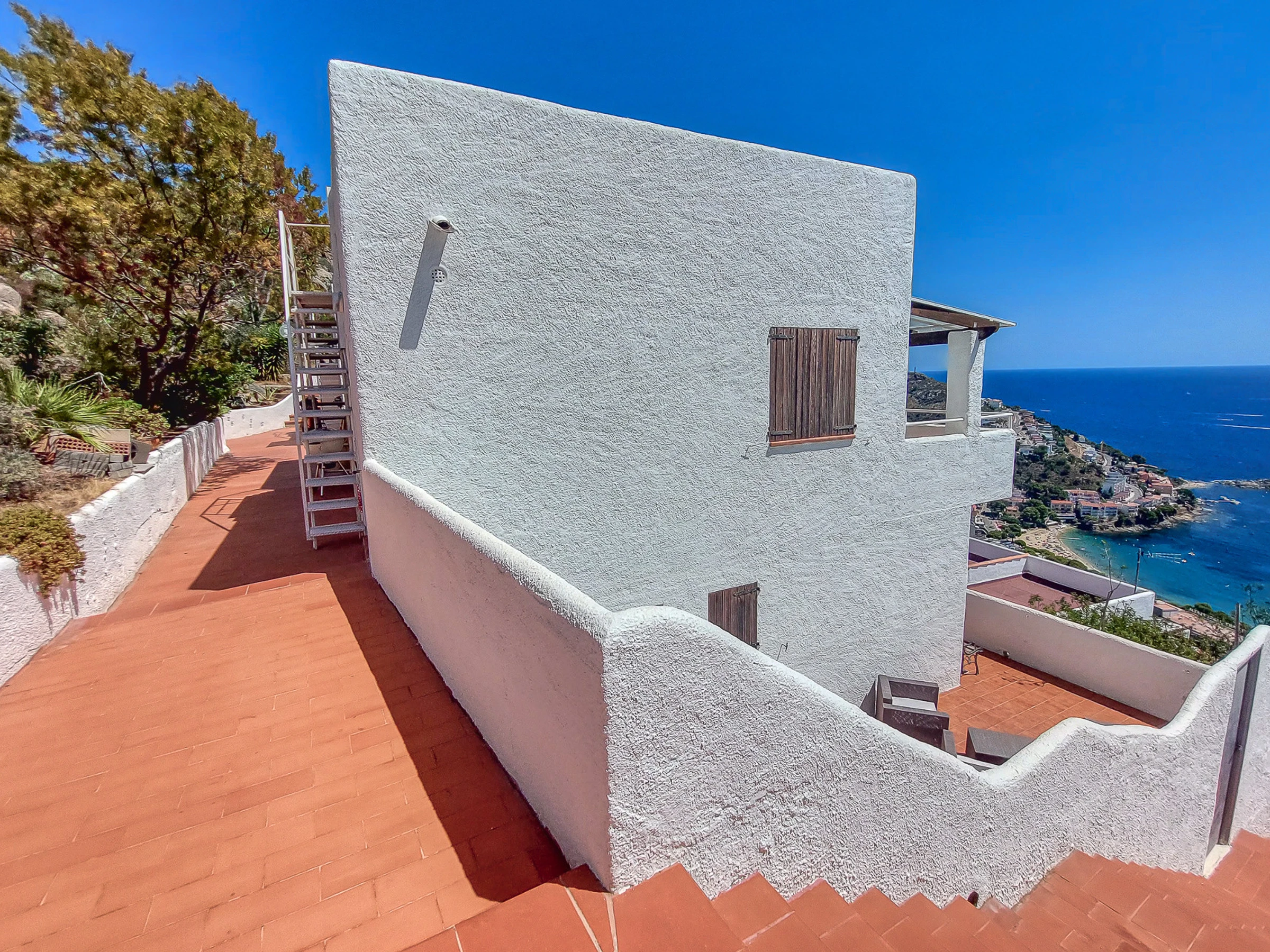 En entrant dans le logement, vous serez accueillis par deux terrasses, une au premier étage et une autre au deuxième étage, où vous pourrez profiter de l'environnement extérieur. Les deux terrasses sont équipées de mobilier de terrasse, vous permettant de vous détendre et de profiter de la vue panoramique. De plus, vous trouverez un barbecue extérieur intégré juste à l'entrée de la maison, parfait pour préparer de délicieux repas en plein air.