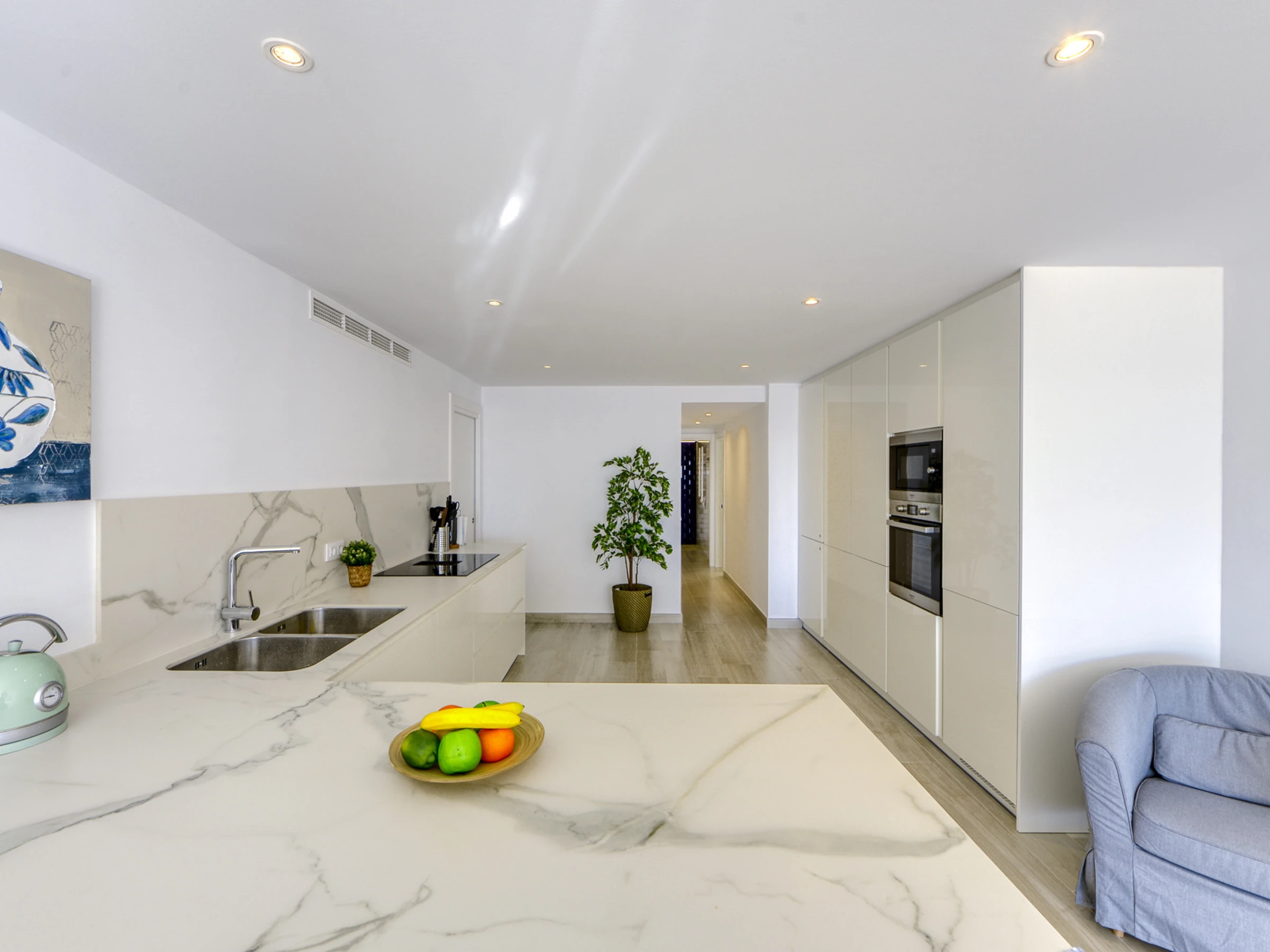 La cuisine indépendante et bien équipée dispose d'appareils électroménagers modernes, tels que réfrigérateur, micro-ondes, four, congélateur, lave-vaisselle, cafetière, grille-pain et bouilloire, facilitant la préparation de délicieux repas pendant votre séjour.