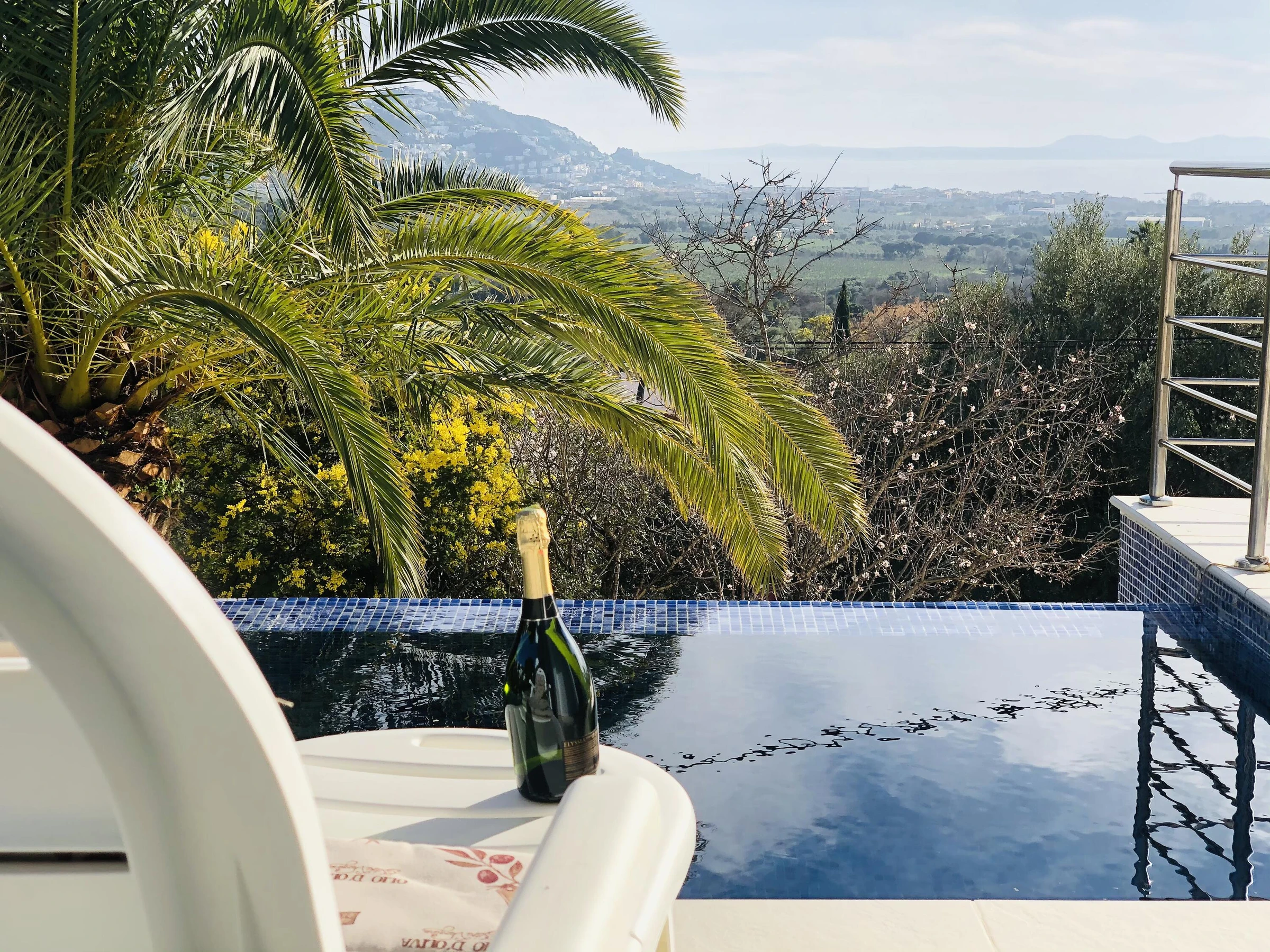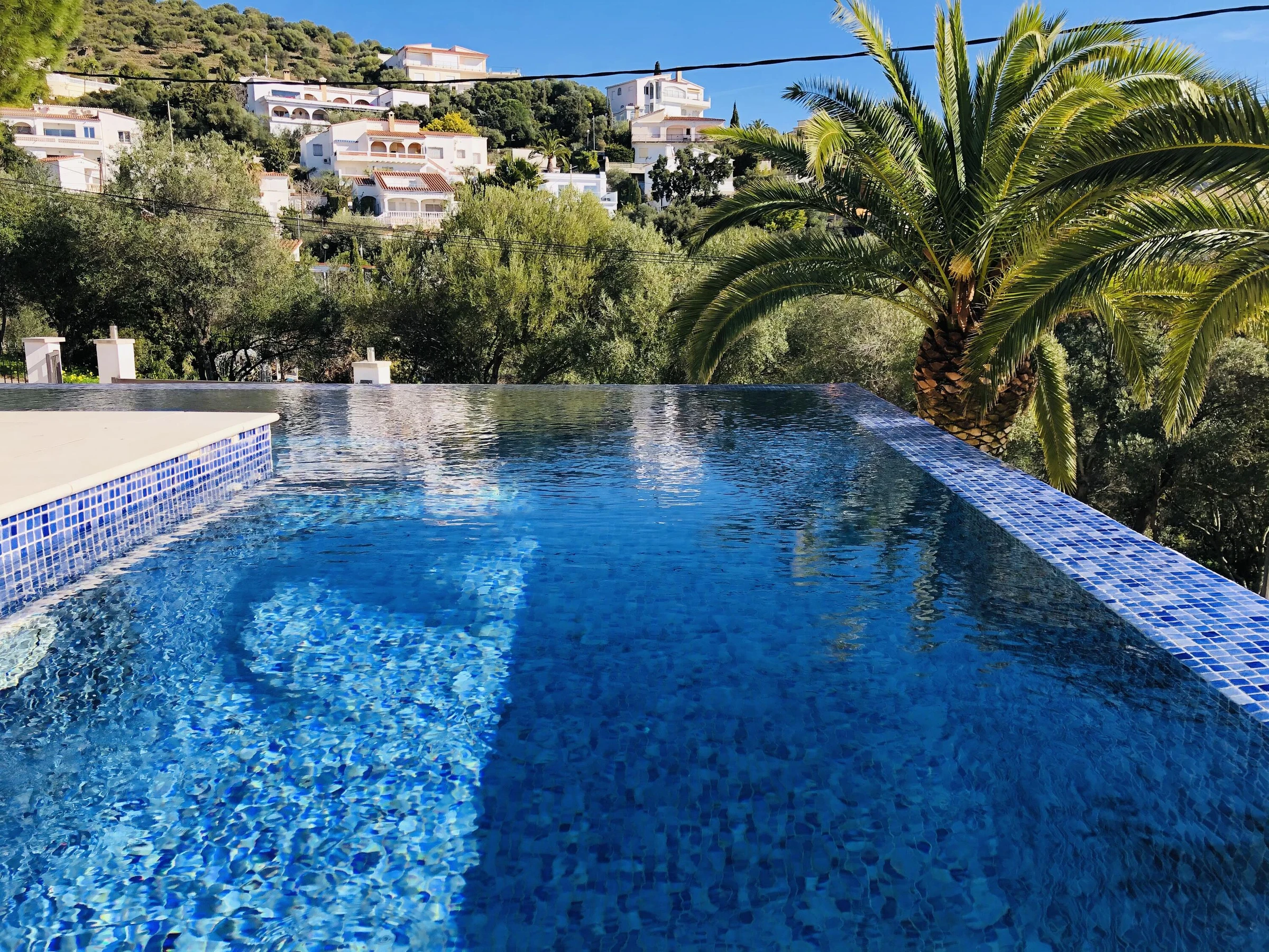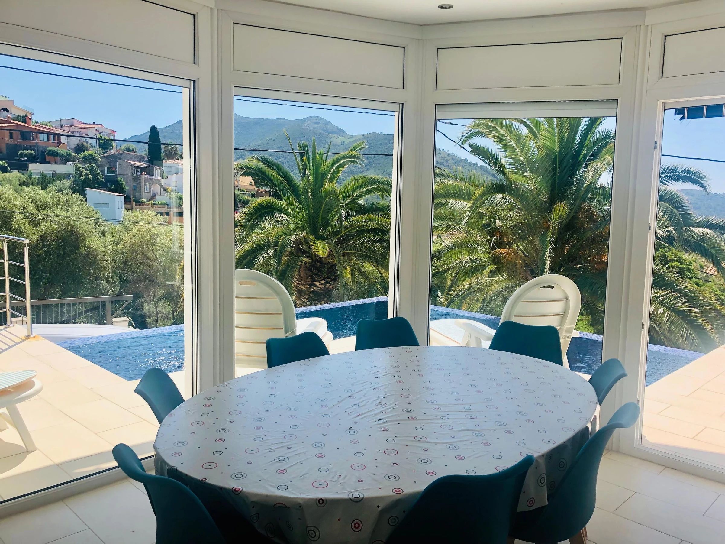 Idéale pour 2 familles. Avec piscine à débordement, vues panoramiques et WIFI gratuit. * Située à Mas Fumats, à 2 km de Roses, plages et supermarchés * Piscine en L avec vue sur mer et terrasses avec espaces détente * 5 chambres et 4 salles de bain (y compris salle de bain privée et douche extérieure) * 2 lits doubles 180x190, 4 lits simples * Cuisine entièrement équipée avec lave-vaisselle, four, cafetière, etc. * Deuxième salon avec Smart TV et cuisine au niveau inférieur * Climatisation dans toutes les chambres * Parking privé pour 3 voitures et stationnement dans la rue calme en face Quartier très calme avec accès rapide à Roses et environnement relaxant avec vues magnifiques