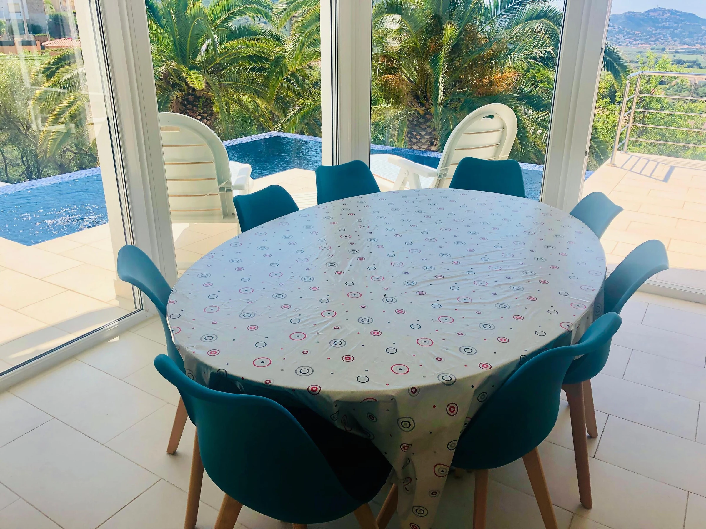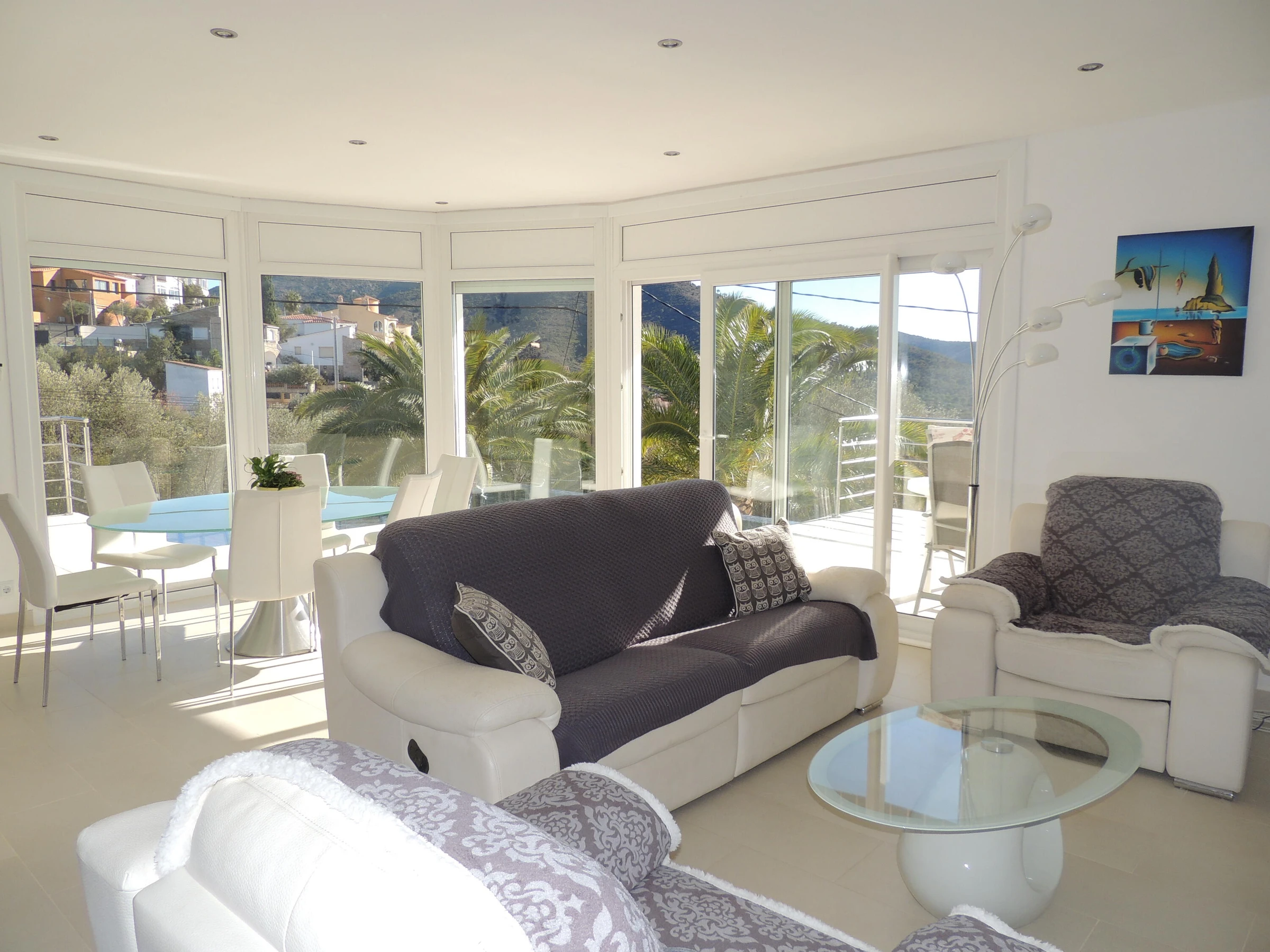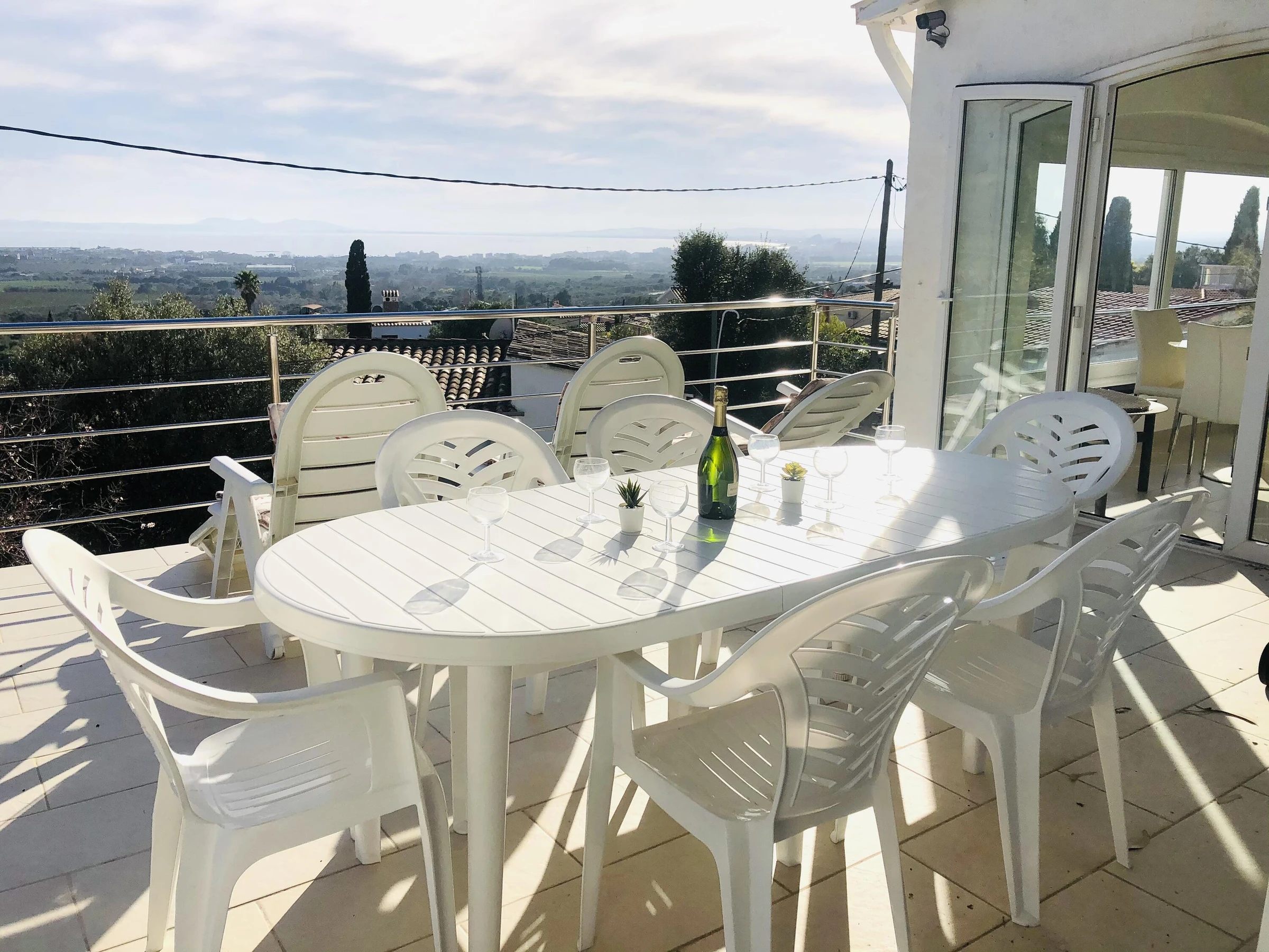 Idéale pour 2 familles. Avec piscine à débordement, vues panoramiques et WIFI gratuit. * Située à Mas Fumats, à 2 km de Roses, plages et supermarchés * Piscine en L avec vue sur mer et terrasses avec espaces détente * 5 chambres et 4 salles de bain (y compris salle de bain privée et douche extérieure) * 2 lits doubles 180x190, 4 lits simples * Cuisine entièrement équipée avec lave-vaisselle, four, cafetière, etc. * Deuxième salon avec Smart TV et cuisine au niveau inférieur * Climatisation dans toutes les chambres * Parking privé pour 3 voitures et stationnement dans la rue calme en face Quartier très calme avec accès rapide à Roses et environnement relaxant avec vues magnifiques