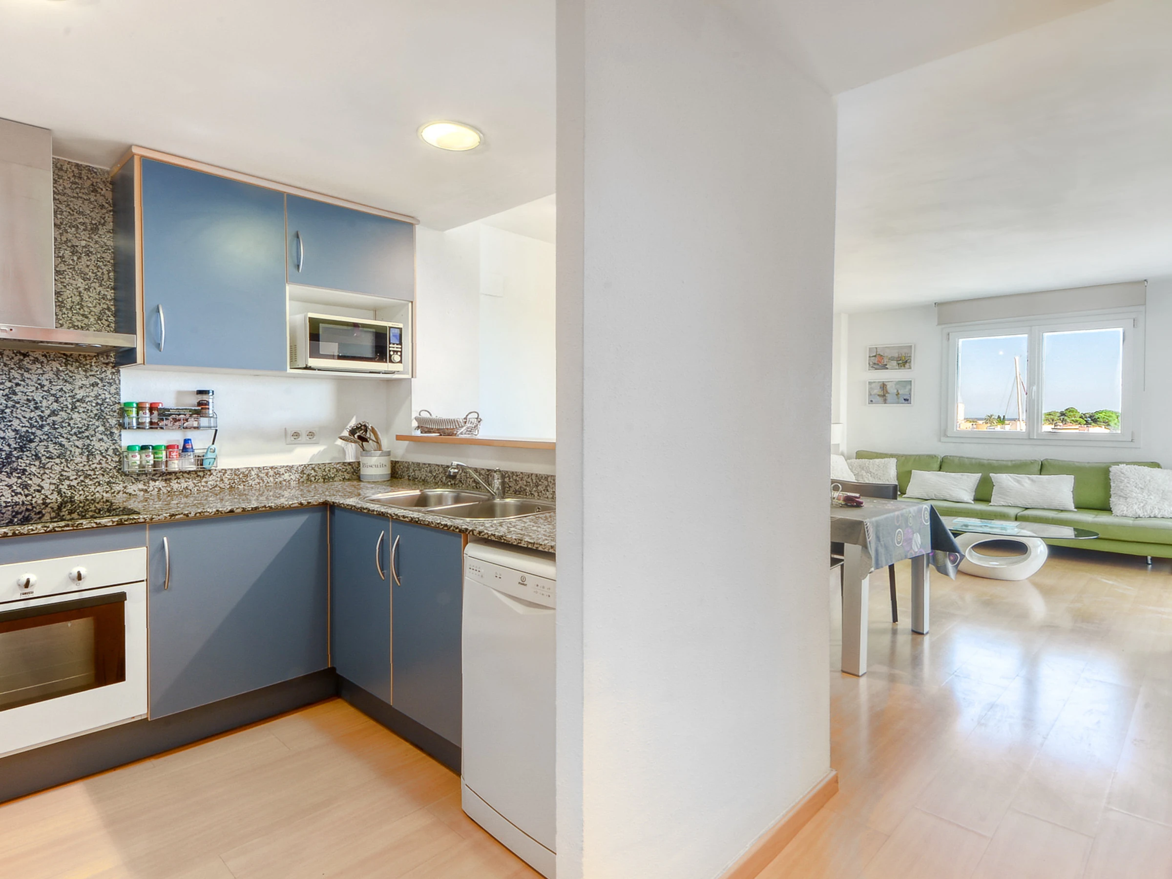 La cuisine indépendante, équipée d'une plaque vitrocéramique, d'un réfrigérateur, d'un micro-ondes, d'un four, d'un congélateur, d'un lave-vaisselle, d'une cafetière et d'un grille-pain, garantit le confort et la possibilité de préparer de délicieux repas dans un espace fonctionnel et moderne. Elle dispose également d'un lave-linge pour faire vos lessive.
