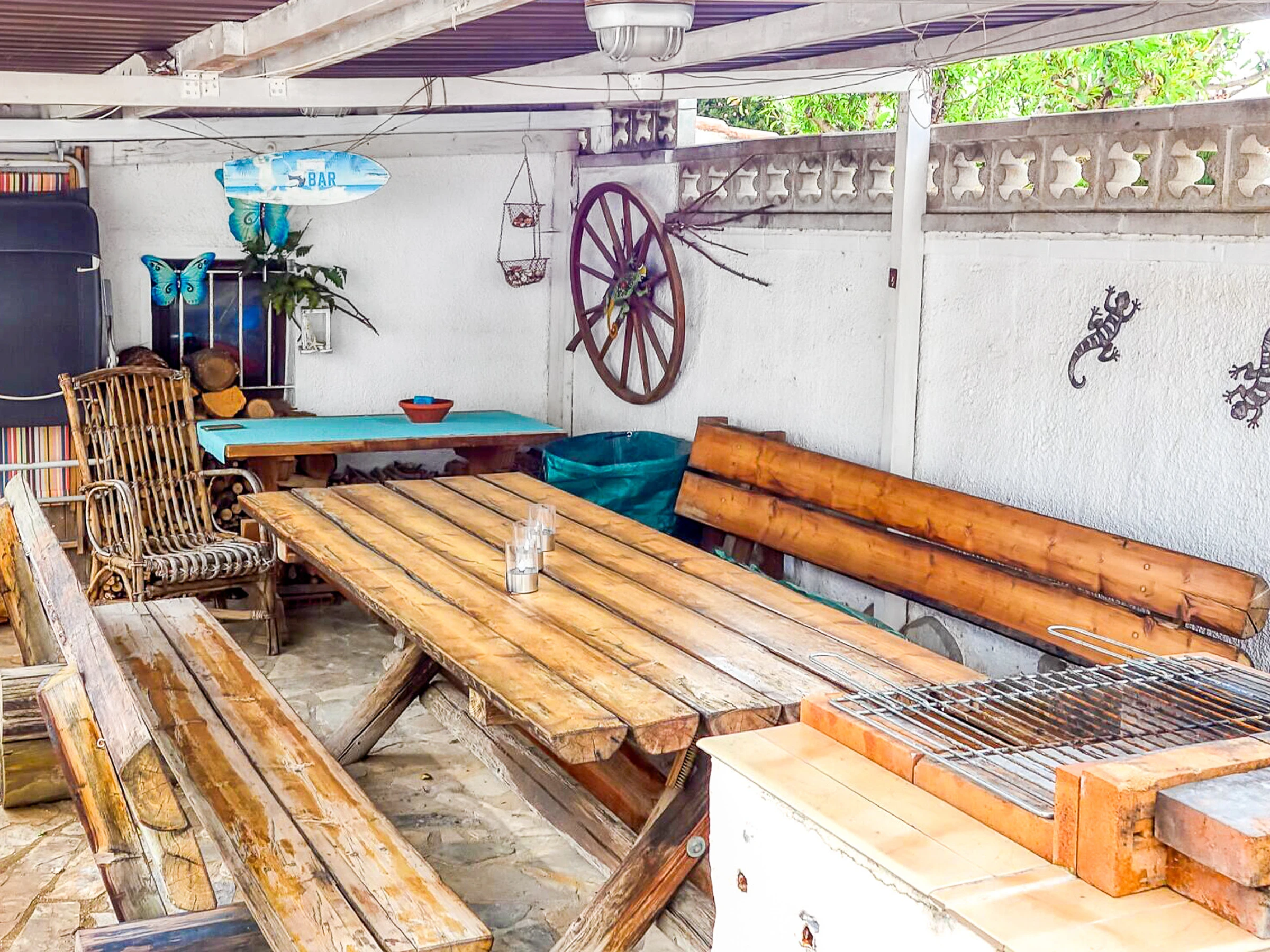 À l'extérieur, une large terrasse vous invite à profiter de repas en plein air, tandis que la piscine privée est parfaite pour se rafraîchir et se détendre sous le soleil.