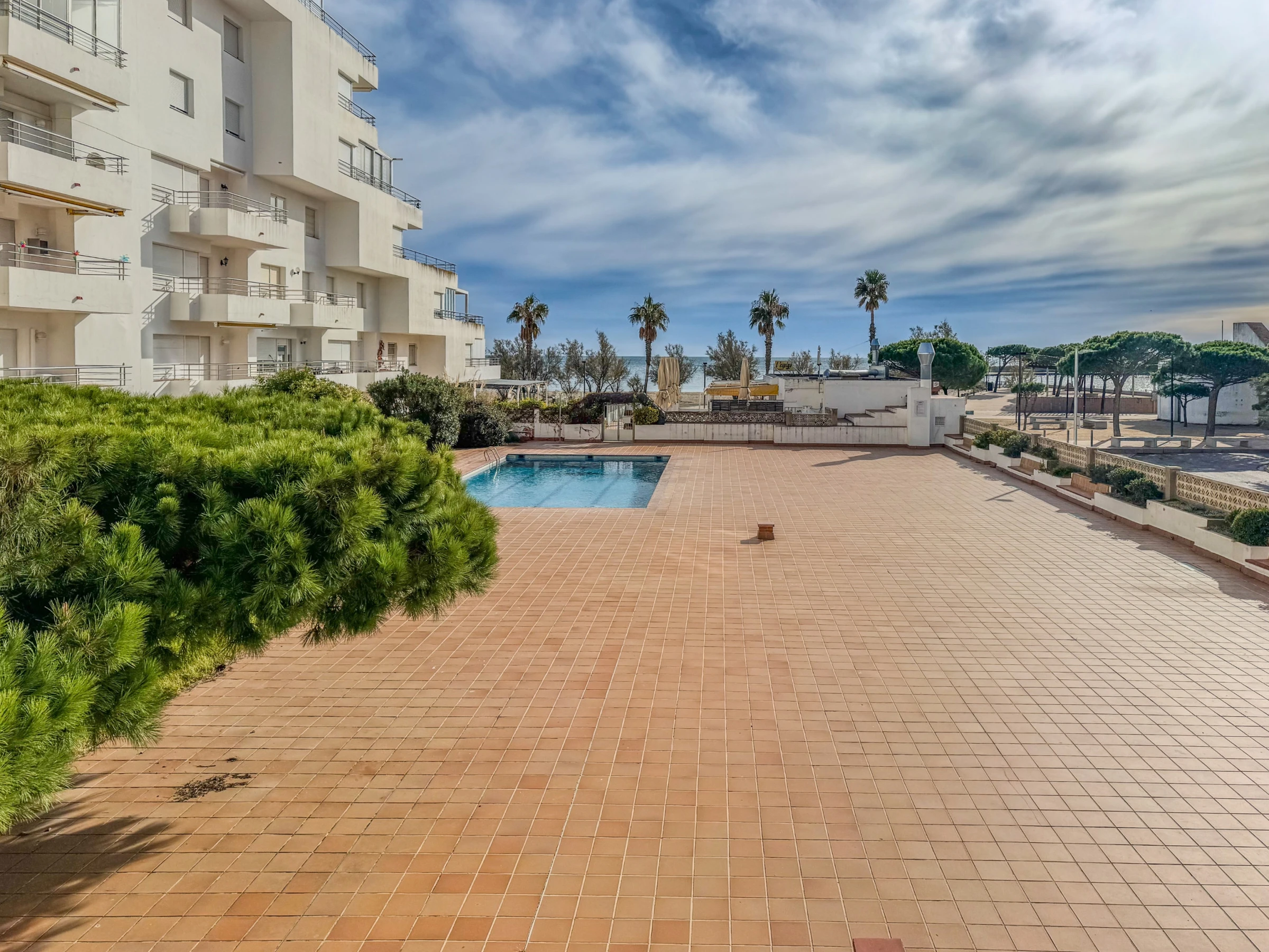 L’appartement se distingue par sa superbe terrasse de 18 m² exposée plein sud, idéale pour se détendre tout en profitant de vues sur la piscine collective et la mer.