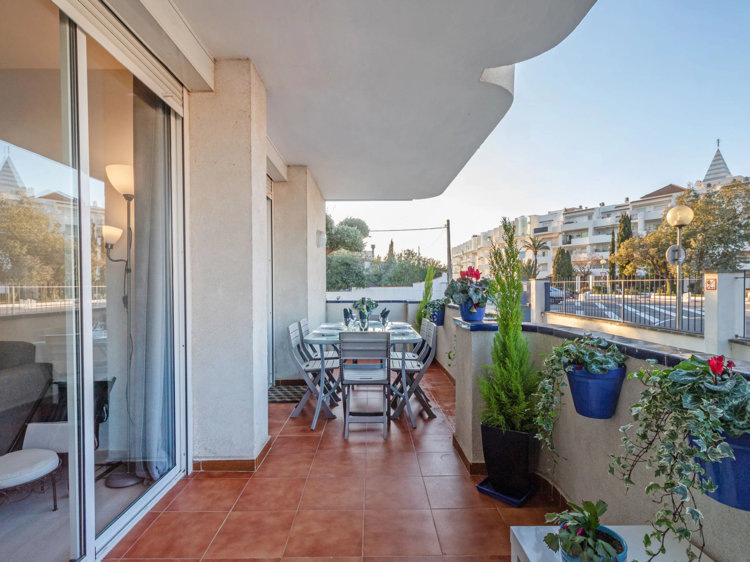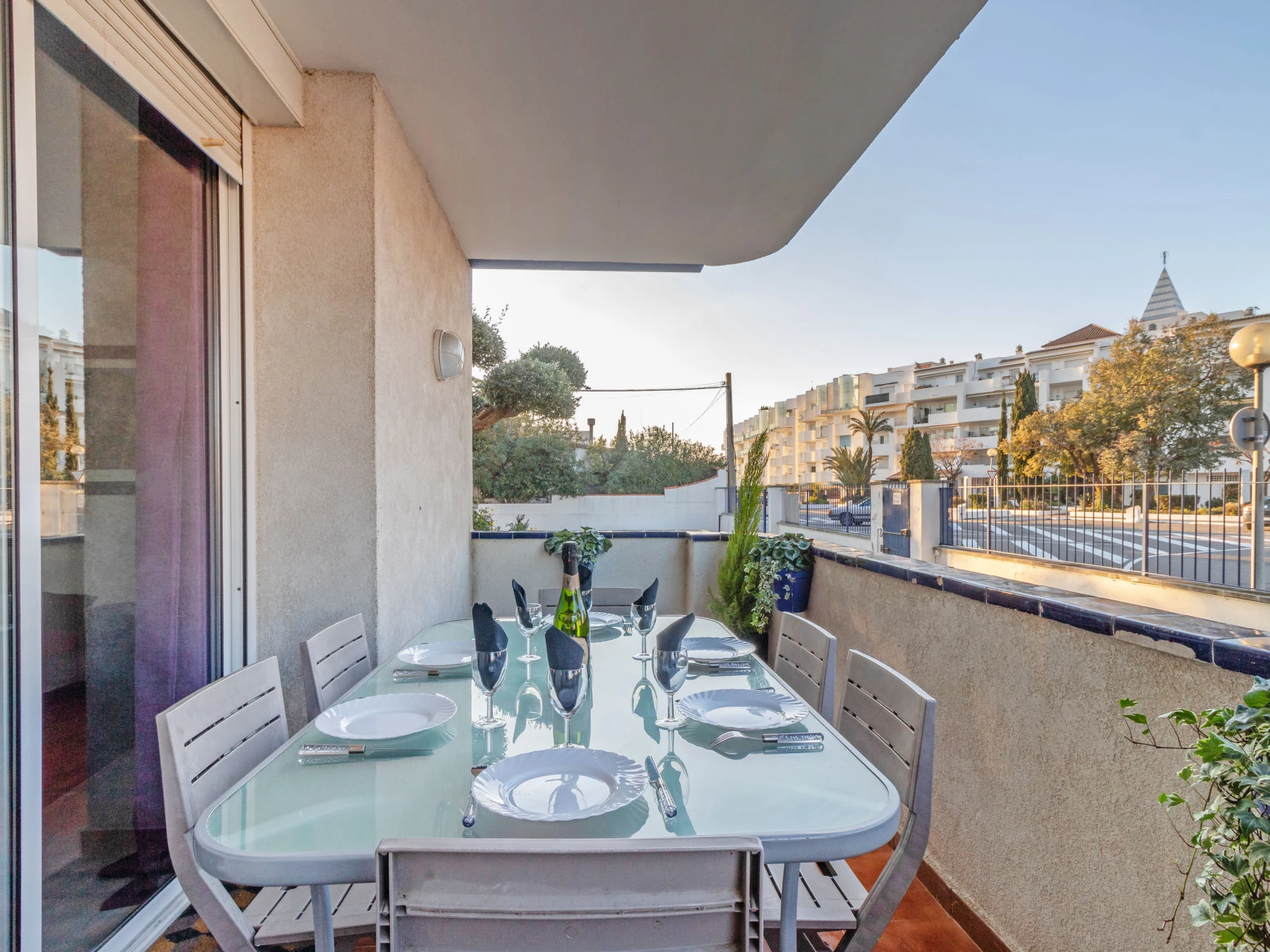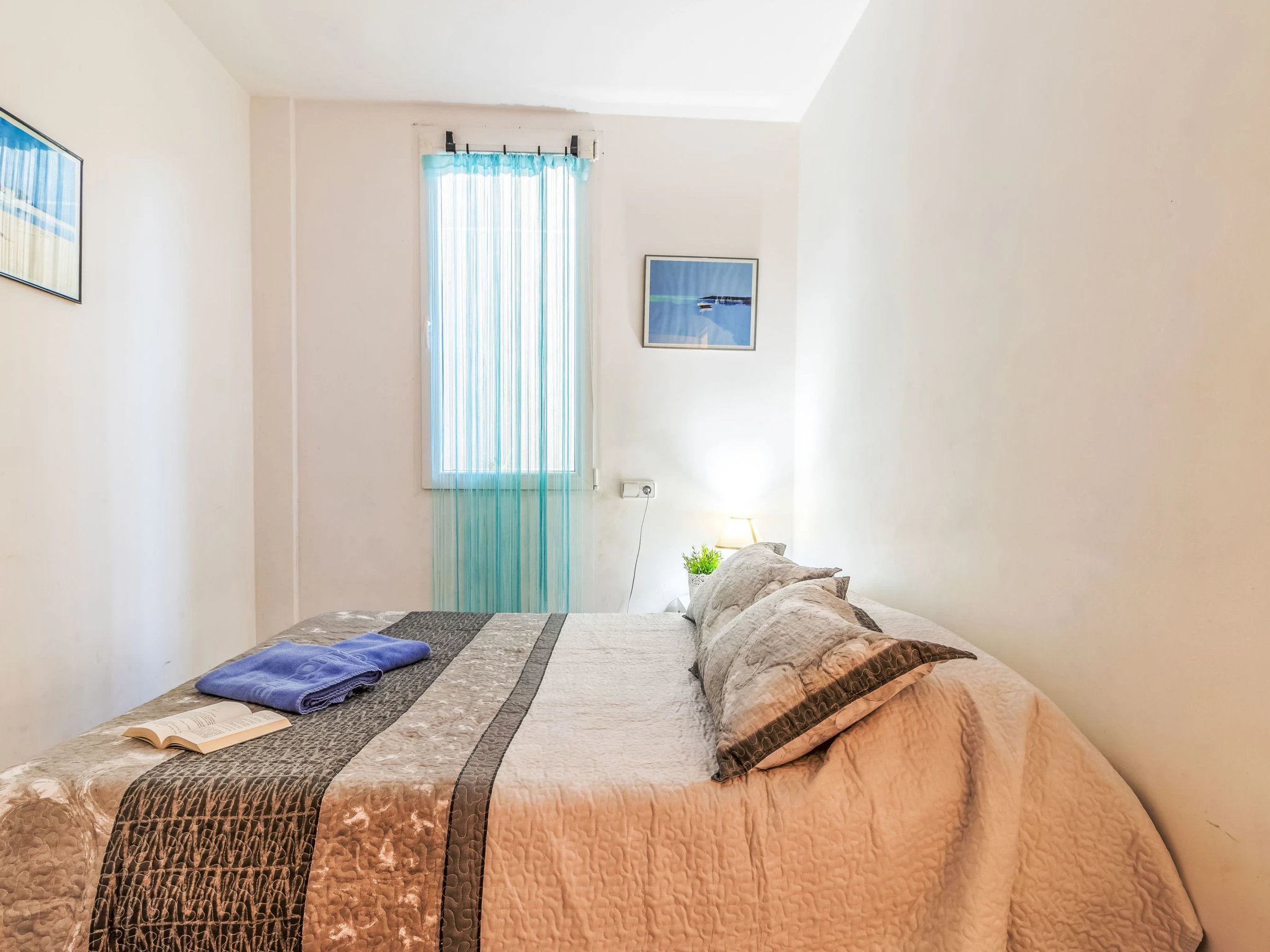 Apt 3 pièces 60 m2, au rez-de-chaussée. Aménagement fonctionnel: séjour/salle à manger 22 m2 avec Télévision numérique, air-conditionné et chauffage à air chaud. Sortie sur la terrasse. 1 petite chambre 9 m2 avec 1 grand-lit (140 cm, longueur 190 cm). 1 chambre 10 m2 avec 1 grand-lit (140 cm, longueur 190 cm). Cuisine/séjour (four, lave-vaisselle, 3 plaques vitrocéramiques, grille-pain, bouilloire électrique, micro-ondes, cafetière électrique) avec bar. Douche/WC. Terrasse 12 m2. A disposition: lave-linge, fer à repasser, sèche-cheveux. Internet (Connexion WIFI, gratuit). Veuillez noter: TV seulement ES. [hidden] // Reg. Nr.: ESFCTU00001701900015141400000000000000[hidden]-442