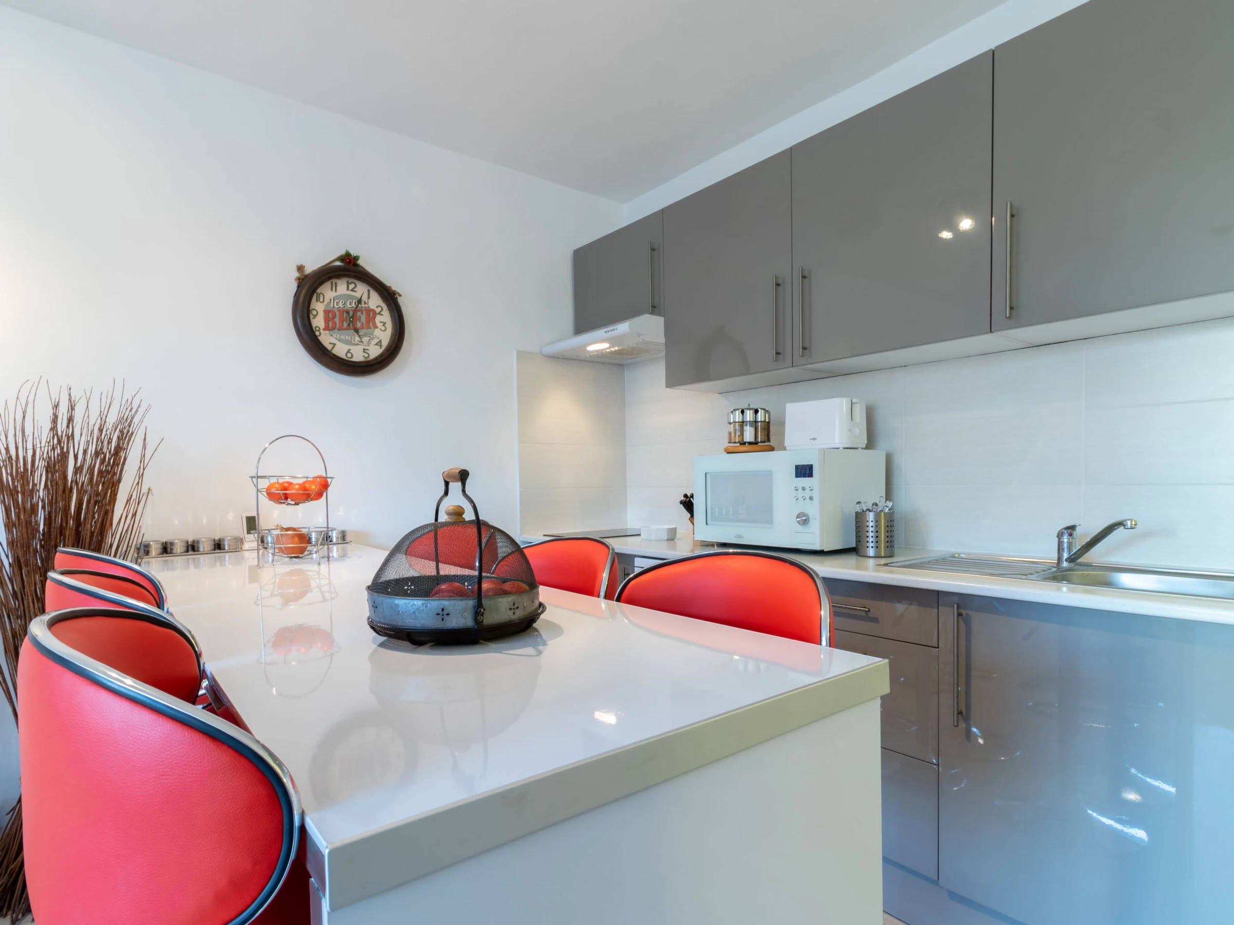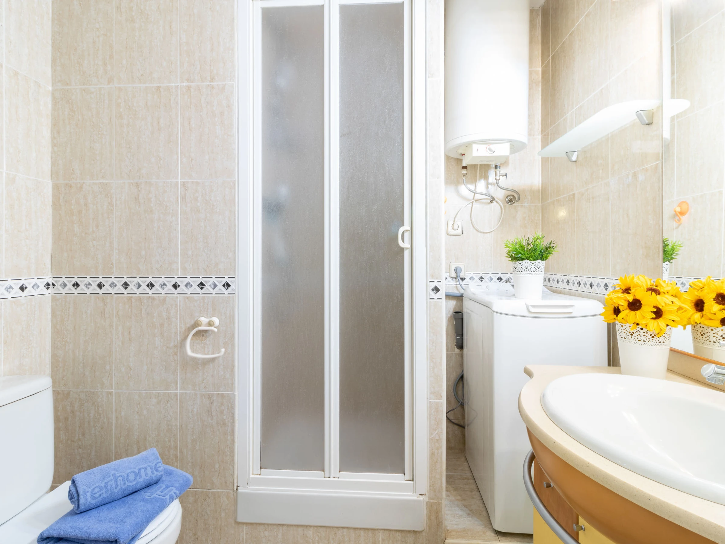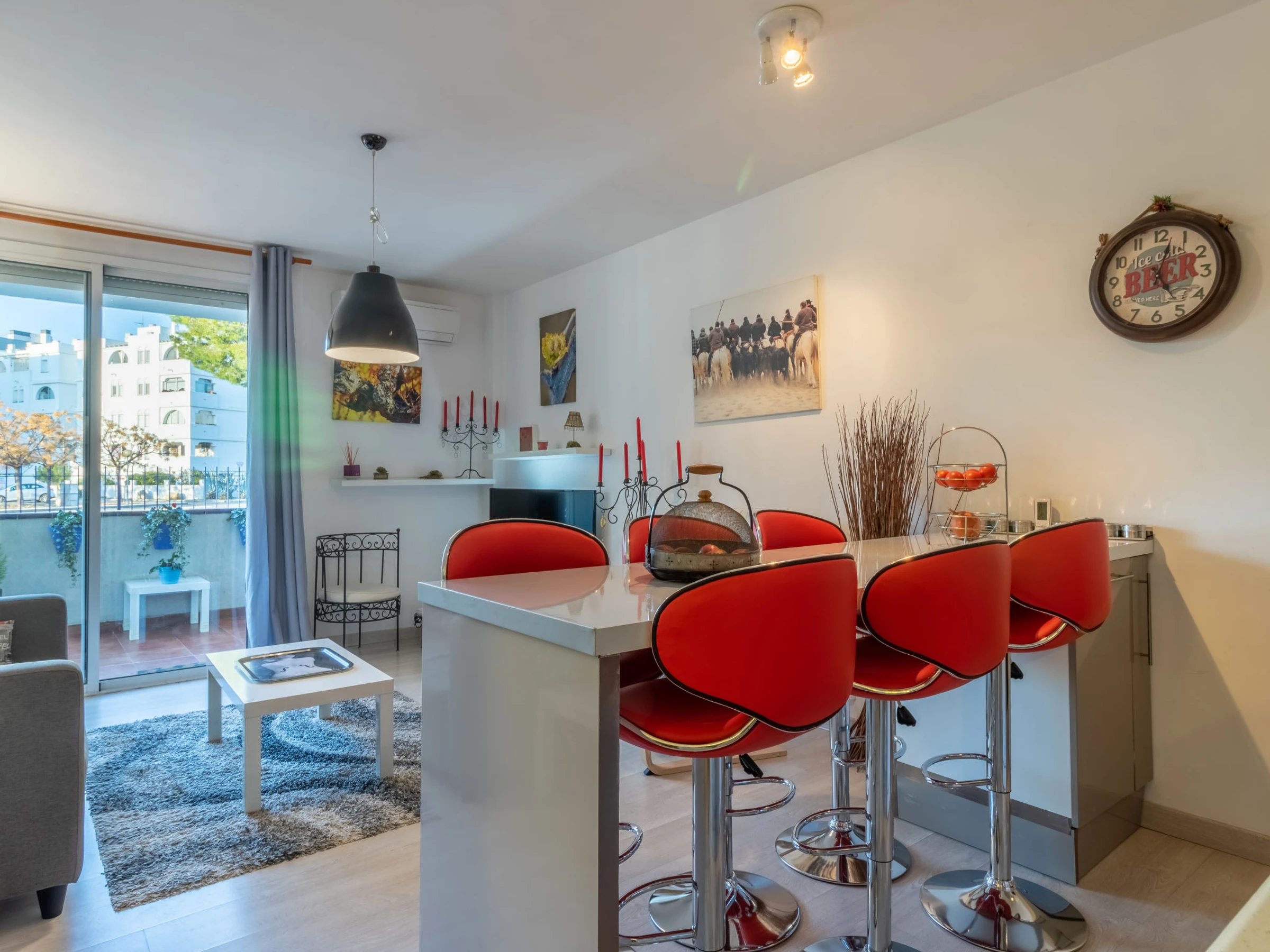 Apt 3 pièces 60 m2, au rez-de-chaussée. Aménagement fonctionnel: séjour/salle à manger 22 m2 avec Télévision numérique, air-conditionné et chauffage à air chaud. Sortie sur la terrasse. 1 petite chambre 9 m2 avec 1 grand-lit (140 cm, longueur 190 cm). 1 chambre 10 m2 avec 1 grand-lit (140 cm, longueur 190 cm). Cuisine/séjour (four, lave-vaisselle, 3 plaques vitrocéramiques, grille-pain, bouilloire électrique, micro-ondes, cafetière électrique) avec bar. Douche/WC. Terrasse 12 m2. A disposition: lave-linge, fer à repasser, sèche-cheveux. Internet (Connexion WIFI, gratuit). Veuillez noter: TV seulement ES. [hidden] // Reg. Nr.: ESFCTU00001701900015141400000000000000[hidden]-442