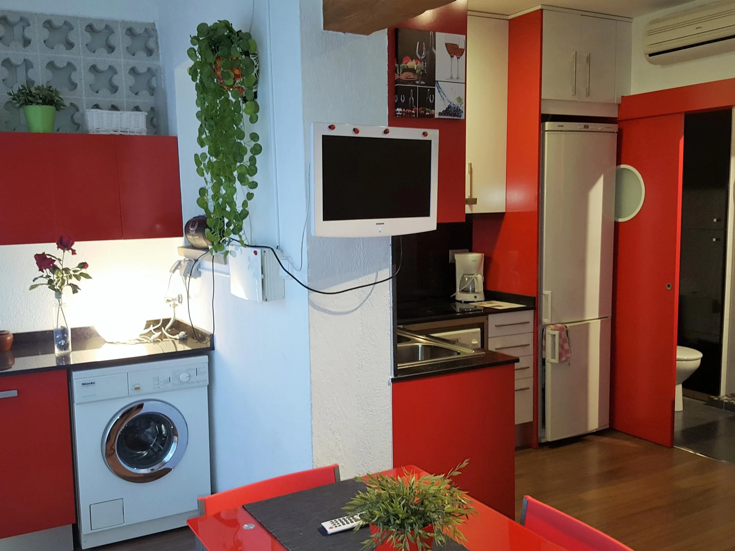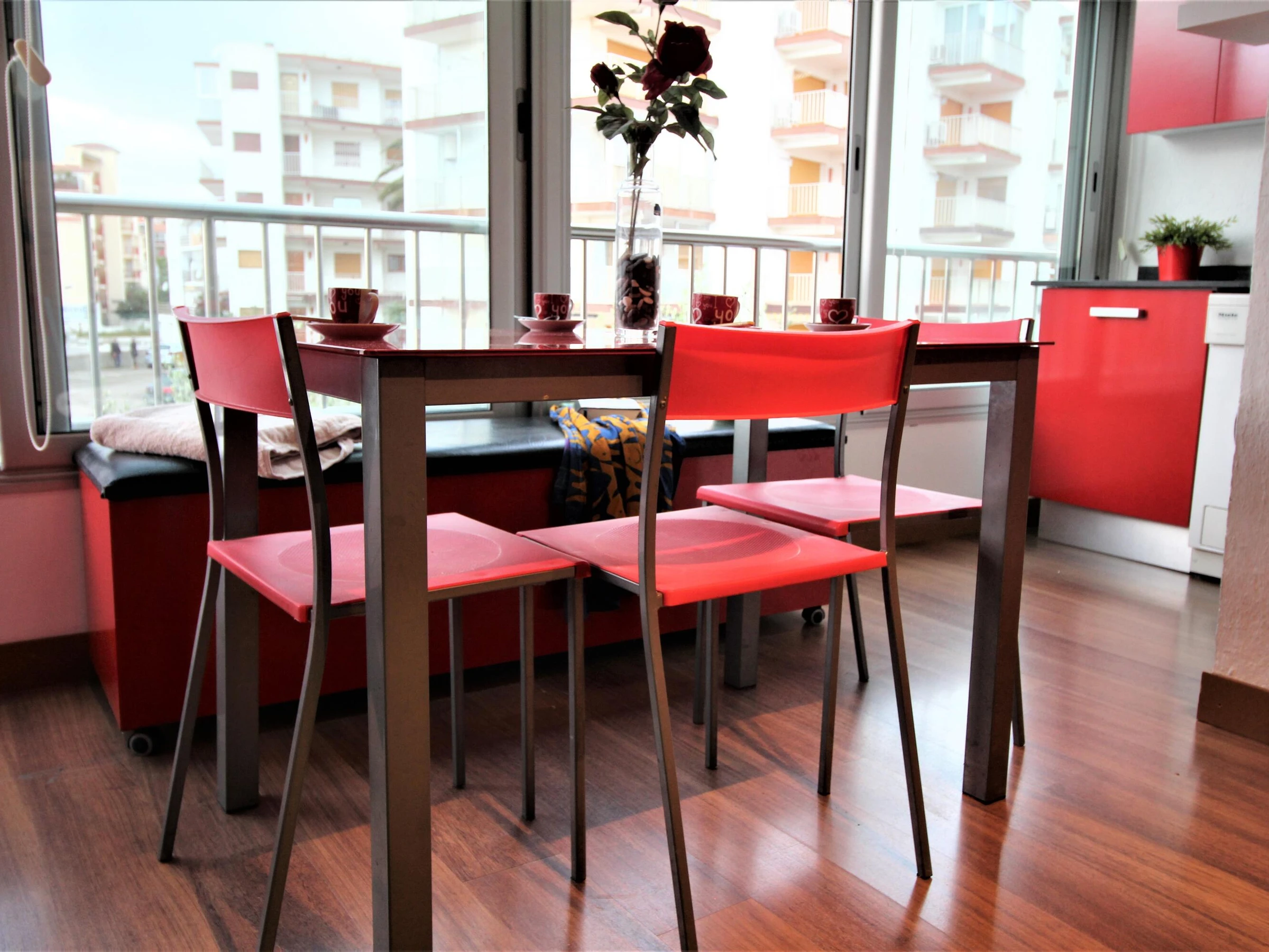 Studio confortable et spacieux de 30 m² entièrement rénové et très bien équipé, idéal pour 2 personnes, situé à seulement 30 mètres de la mer à Roses. Il dispose d'un canapé-lit de 1,40 m et d'un lit supplémentaire, de la climatisation, d'une cuisine complète avec micro-ondes, cafetière, lave-linge et ustensiles de cuisine, ainsi que d'une salle de bain avec douche. La terrasse a été fermée avec des menuiseries en aluminium et intégrée à l'espace intérieur, ce qui ajoute de l'espace et de la luminosité. Elle comprend une place de parking extérieure privée, idéale pour oublier la voiture pendant les vacances. Draps et serviettes non inclus (disponibles en supplément).