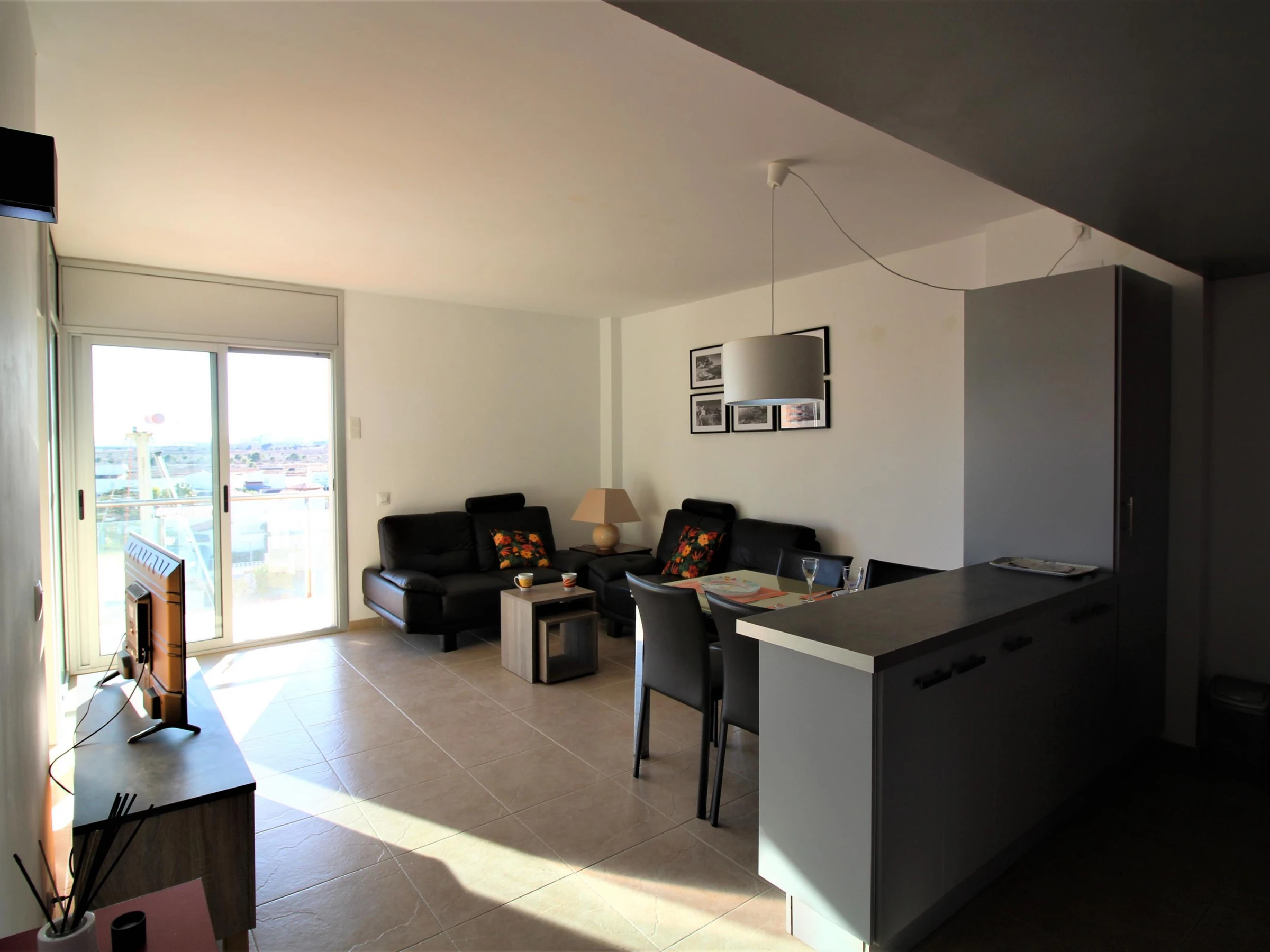 Votre refuge idéal à Roses vous attend ! Profitez de ce magnifique et lumineux appartement, situé dans une résidence calme entourée de nature, à quelques pas des emblématiques canaux. Détendez-vous sur sa grande terrasse de 12 m² offrant une vue fantastique sur la mer et le parc naturel des Aiguamolls. L’appartement dispose de tout le confort nécessaire : piscine et grand jardin communautaires, climatisation réversible dans toutes les pièces, et un équipement complet pour que vous n’ayez plus qu’à profiter. 55 m2 pour 4 personnes : 1 lit x 1.60 + 2 lits x 90. Draps et serviettes pas inclus