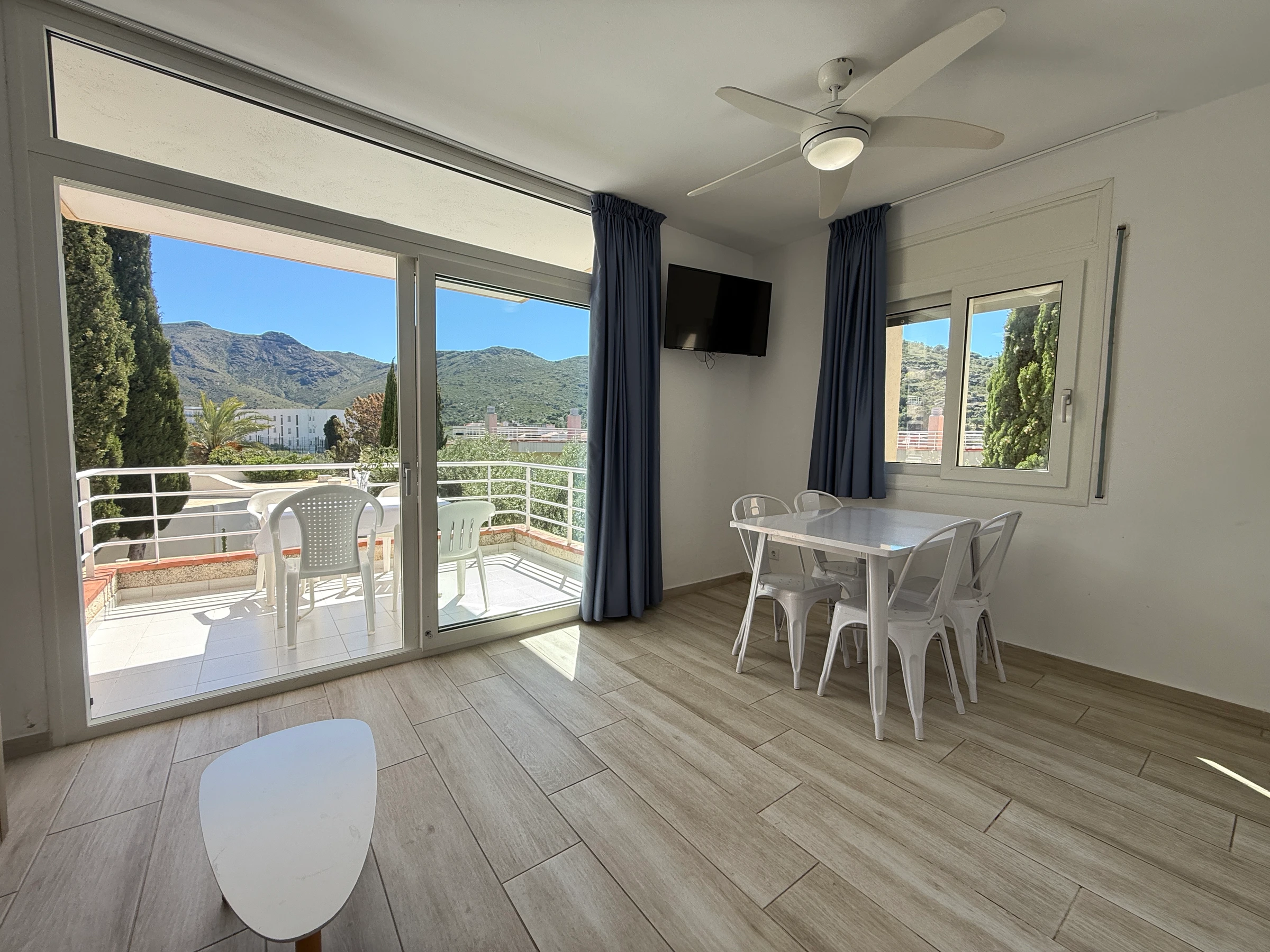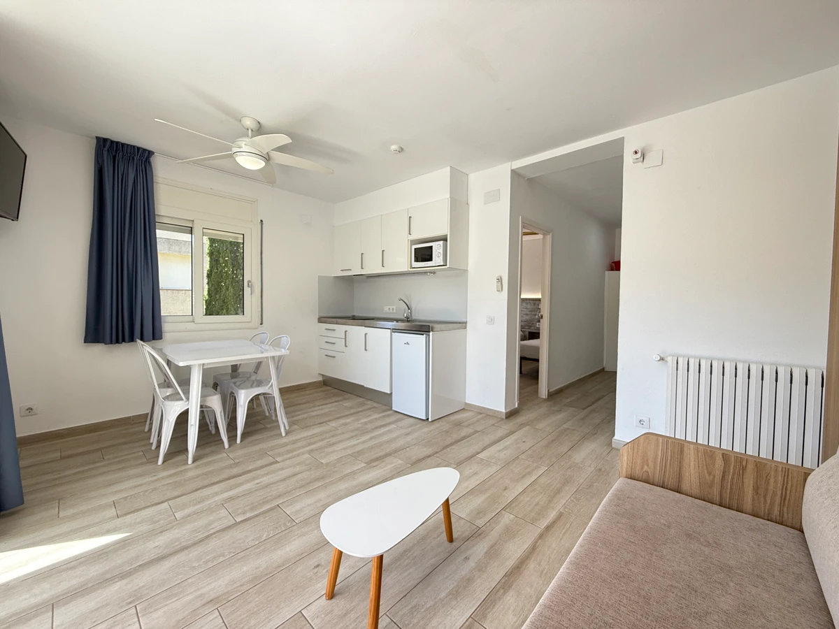 Charmant appartement pour 4 personnes situé dans l'urbanisation Mas Oliva de Roses, entouré de montagnes et de nature. L'appartement, décoré dans un style chaleureux et fonctionnel, est parfait pour les couples ou les familles qui souhaitent profiter d'un séjour confortable dans un environnement naturel.