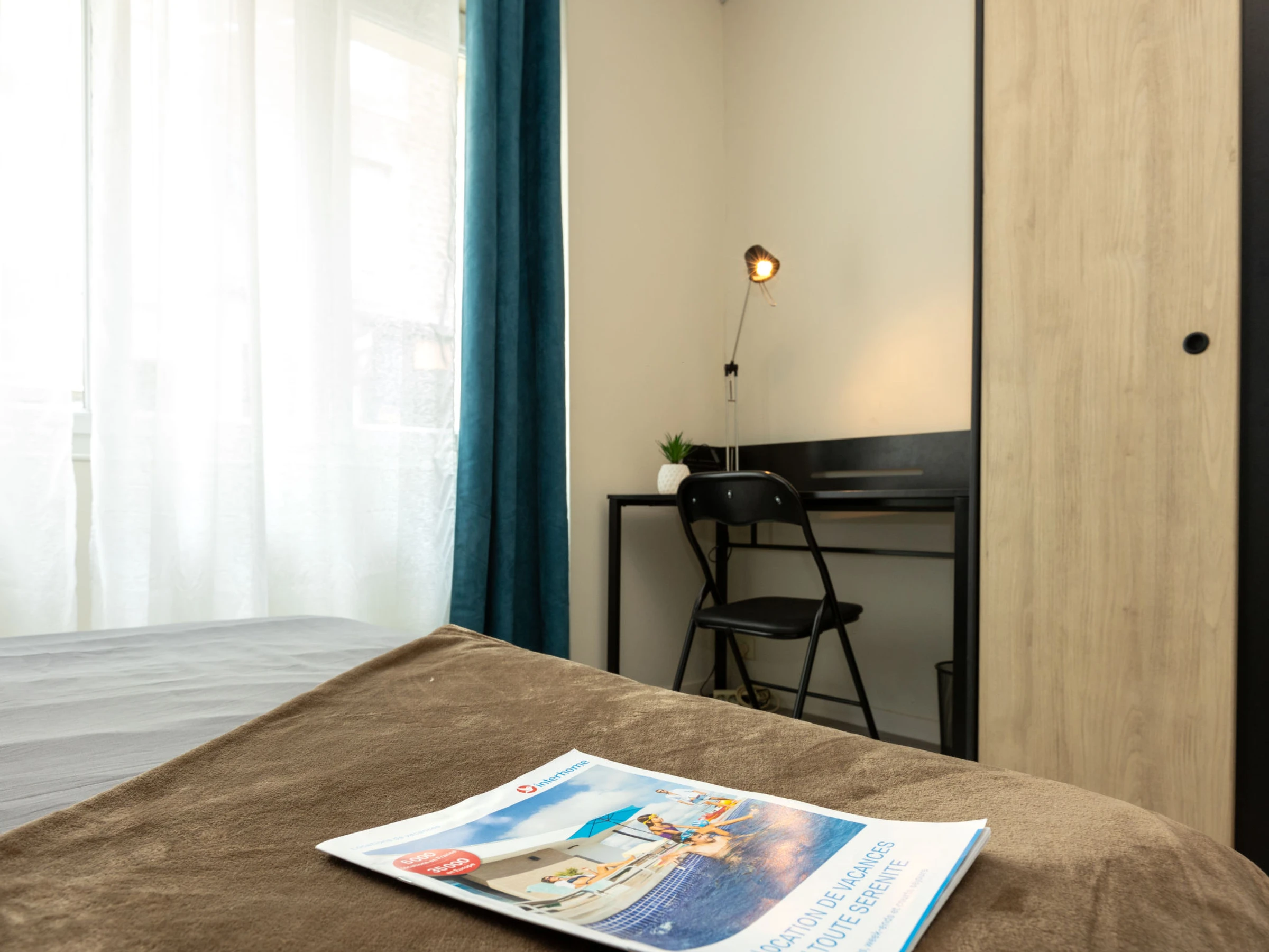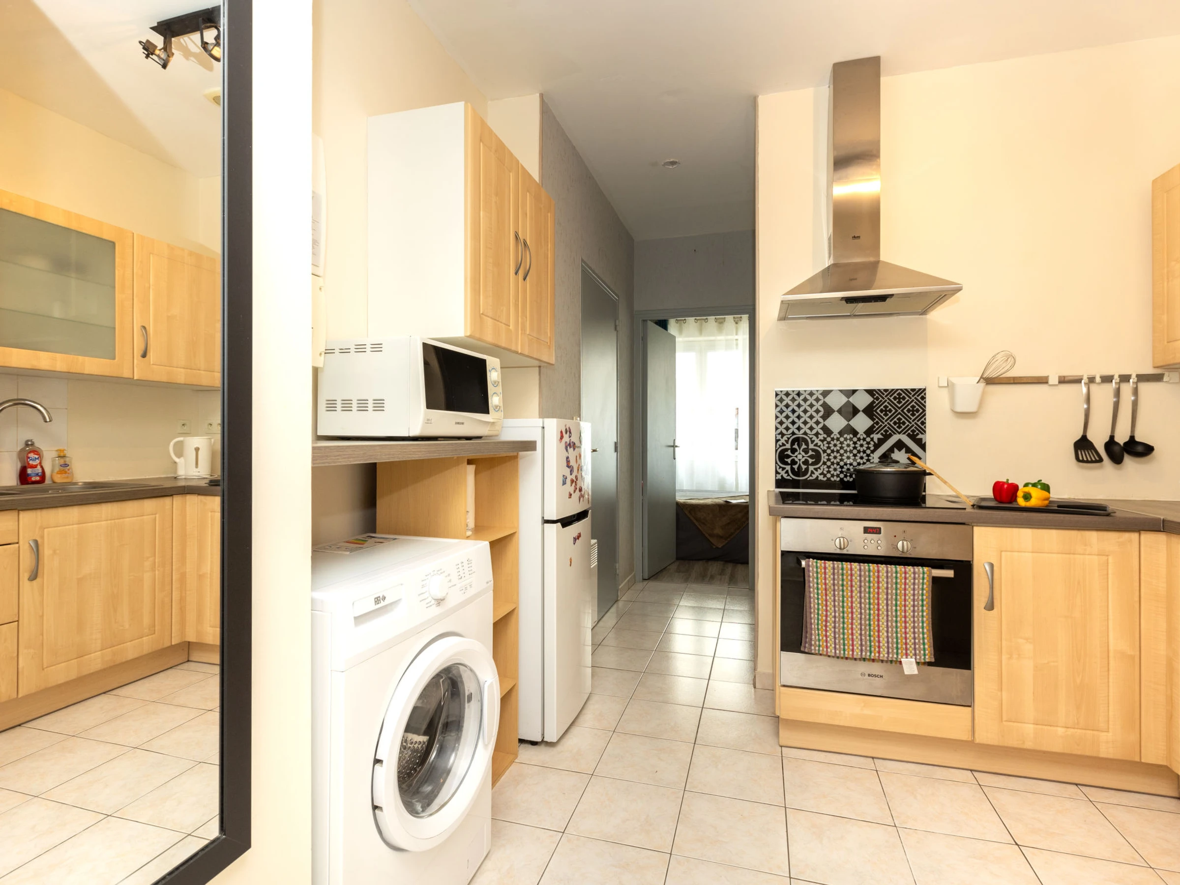 "Ange", apt 2 pièces 43 m2, au rez-de-chaussée. Aménagement confortable et de bon goût: séjour/salle à manger avec TV (écran plat). 1 chambre avec 1 grand-lit (1 x 140 cm, longueur 190 cm). Cuisine ouverte (four, 3 plaques à induction, grille-pain, bouilloire électrique, micro-ondes, congélateur, cafetière électrique). Salle de bains, WC séparé. Chauffage électrique. Possibilité de chauffage uniquement du 15.10. au 15.04. Petite terrasse 4 m2. Meubles de terrasse. A disposition: lave-linge. Internet (Connexion WIFI, gratuit). Veuillez noter: logement côté cour. Détecteur de fumée. Annonce d'un particulier (art 155, IV du CGI). [hidden]