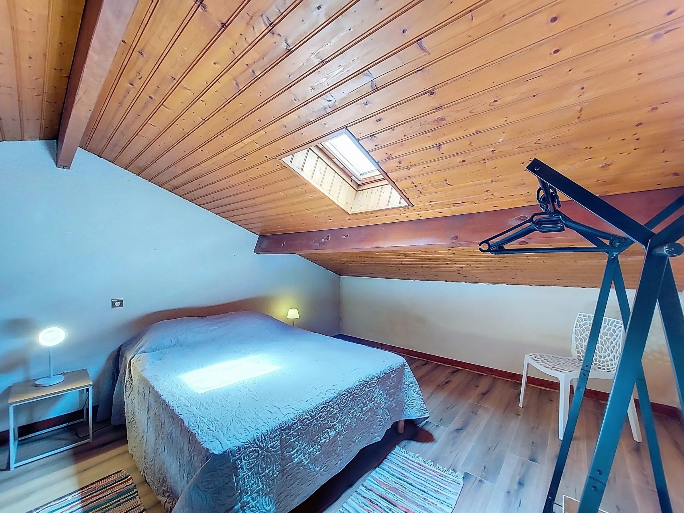 Appartement sur 2 niveaux studio 25 m2 au 1er étage, situation nord. Séjour avec 1 divan-lit (140 cm, longueur 190 cm), TV (écran plat). Sortie sur le balcon. Coin cuisine (2 plaques de cuisson, four, lave-vaisselle, grille-pain, bouilloire électrique, cafetière électrique). Salle de bains, WC séparé. Chauffage électrique. À l'étage supérieur: galerie mansardée avec fenêtre sous le toit avec 1 grand-lit (140 cm, longueur 190 cm). Balcon 5 m2, situation nord. Mobilier de balcon. A disposition: lave-linge. Internet (Connexion WIFI, en sus). Place de parking. Veuillez noter: 1 animal/ chien de petite taille autorisé. Détecteur de fumée. Annonce d'un particulier (art 155, IV du CGI).